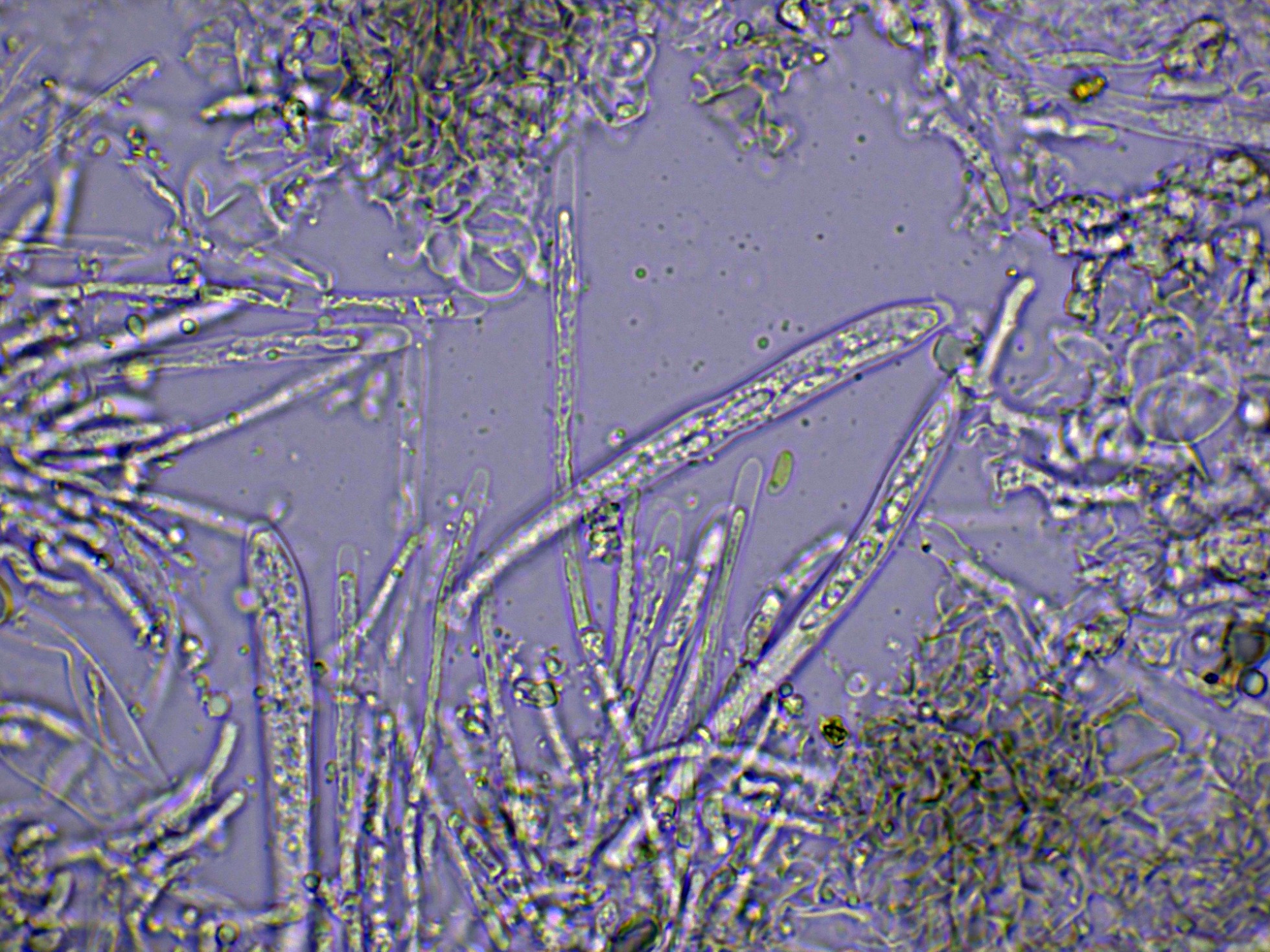Las hifas del excípulo pigmentadas en agua: