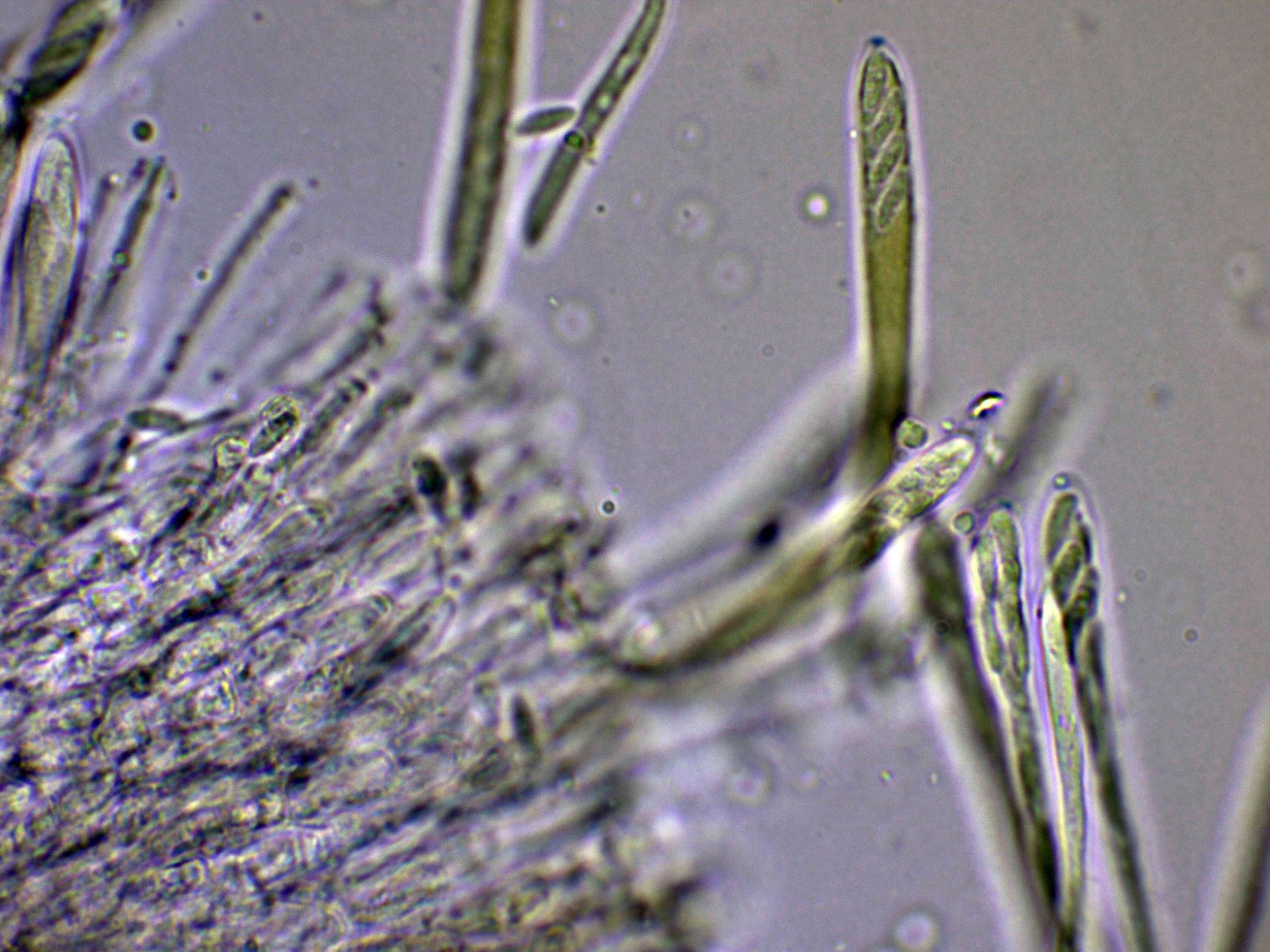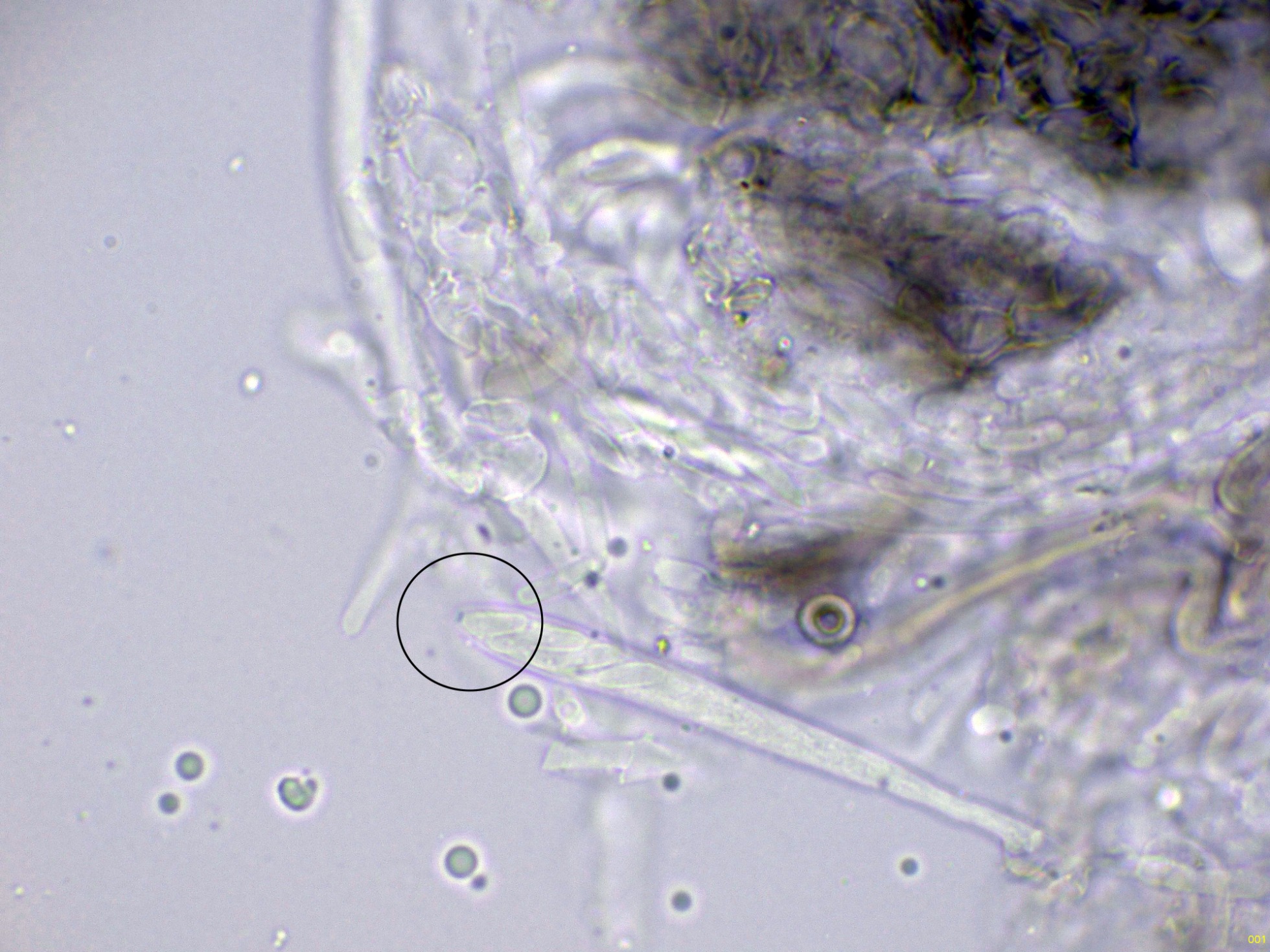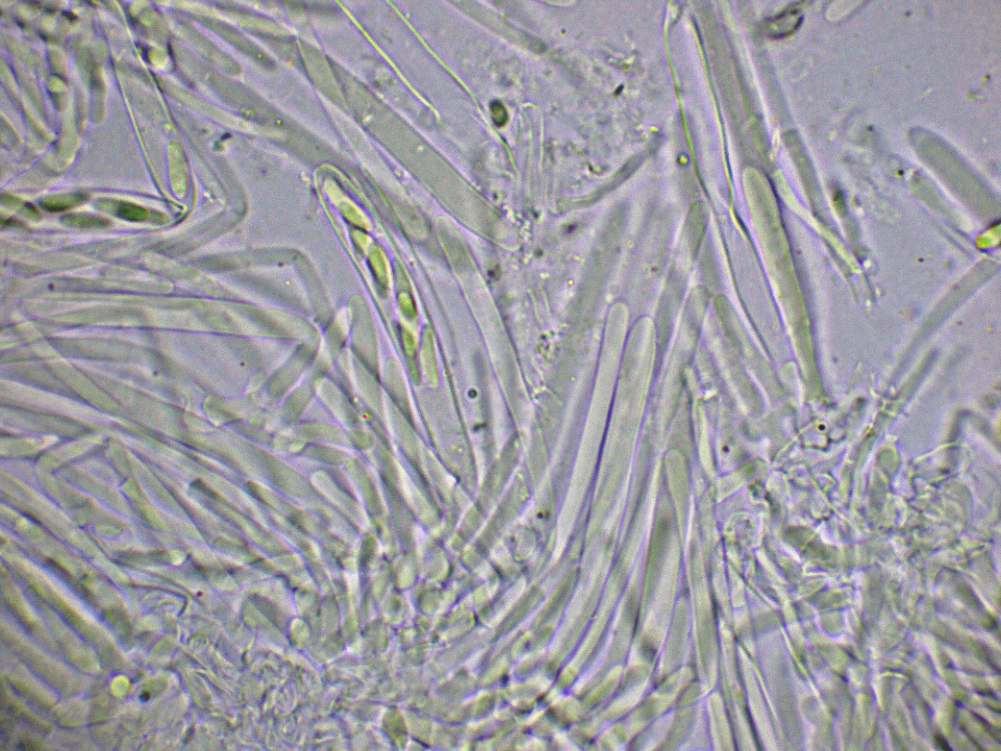 Aquí mi especie la JTP2644/25, se alinea perfectamente con lo que se puede considerar como Mollisia oblonga.