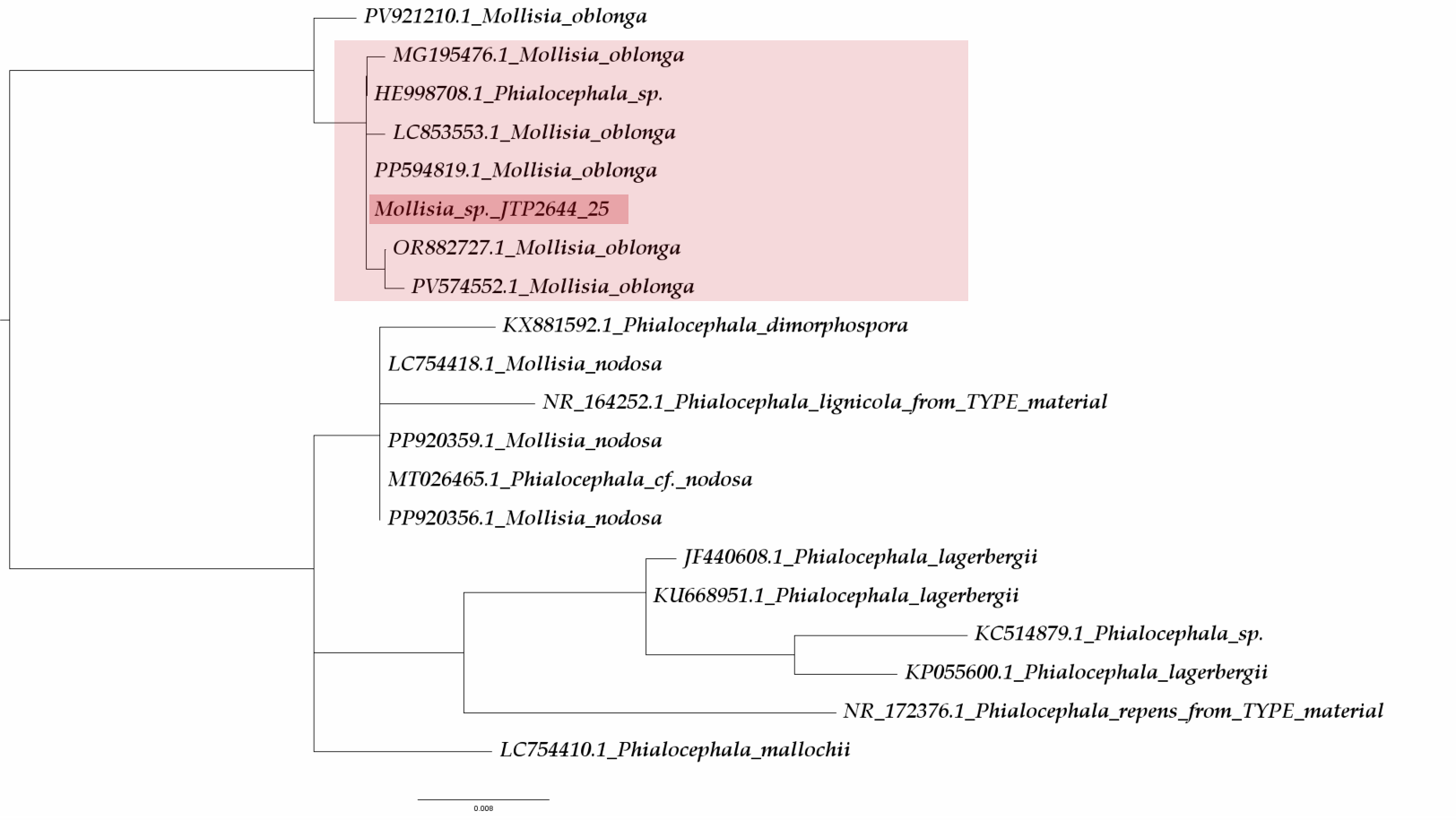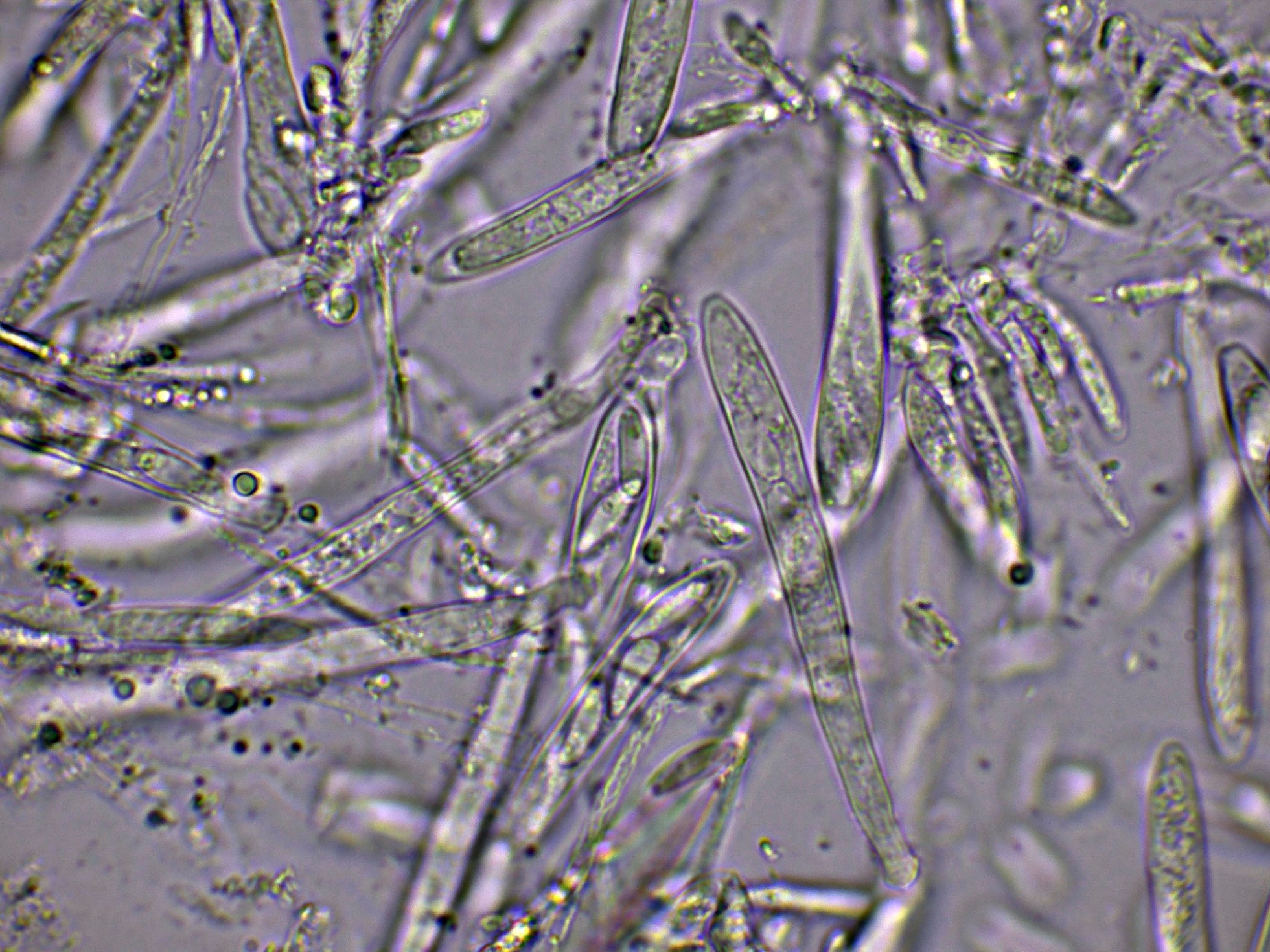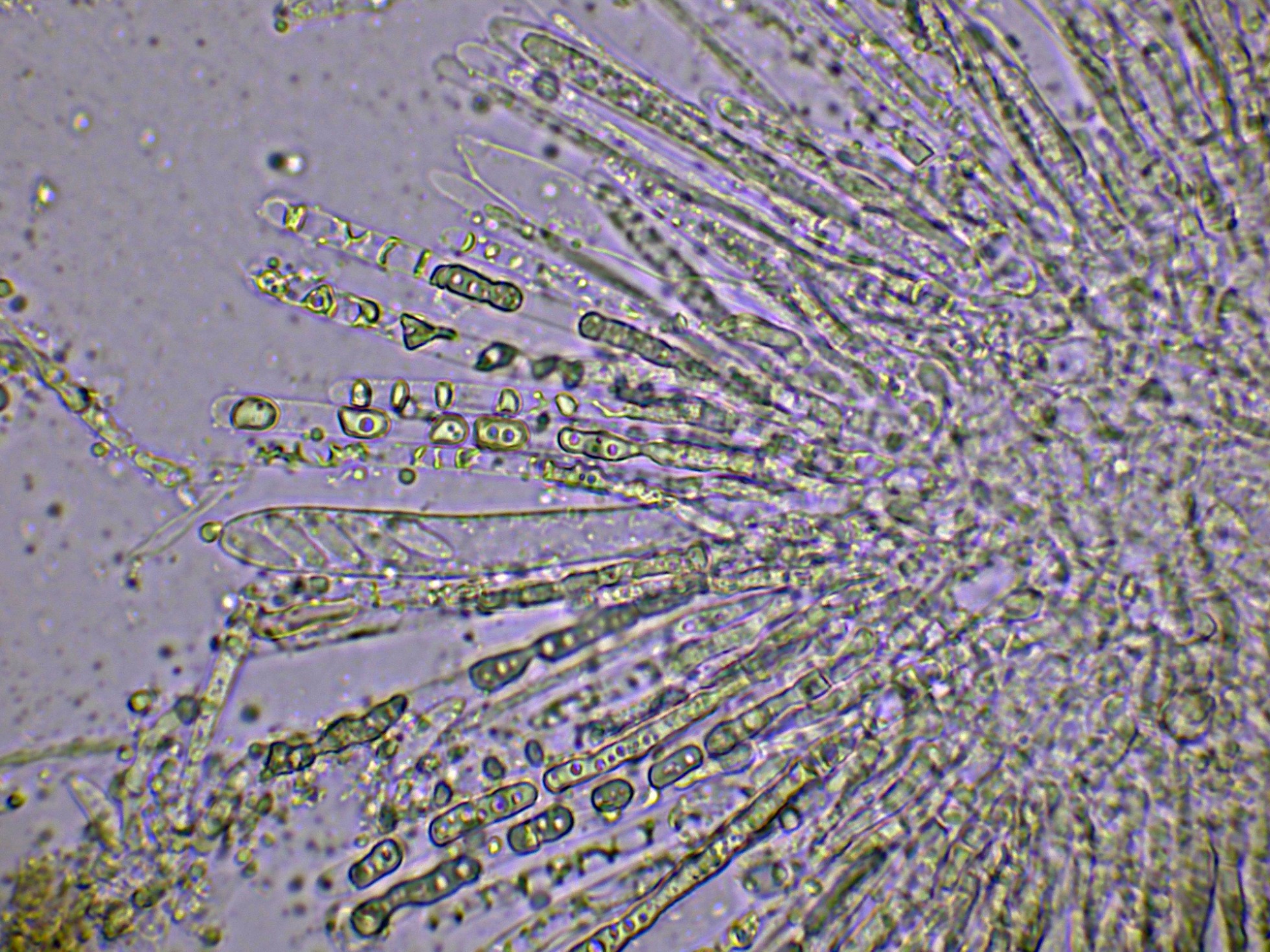 Aquí mi especie la JTP2644/25, se alinea perfectamente con lo que se puede considerar como Mollisia oblonga.