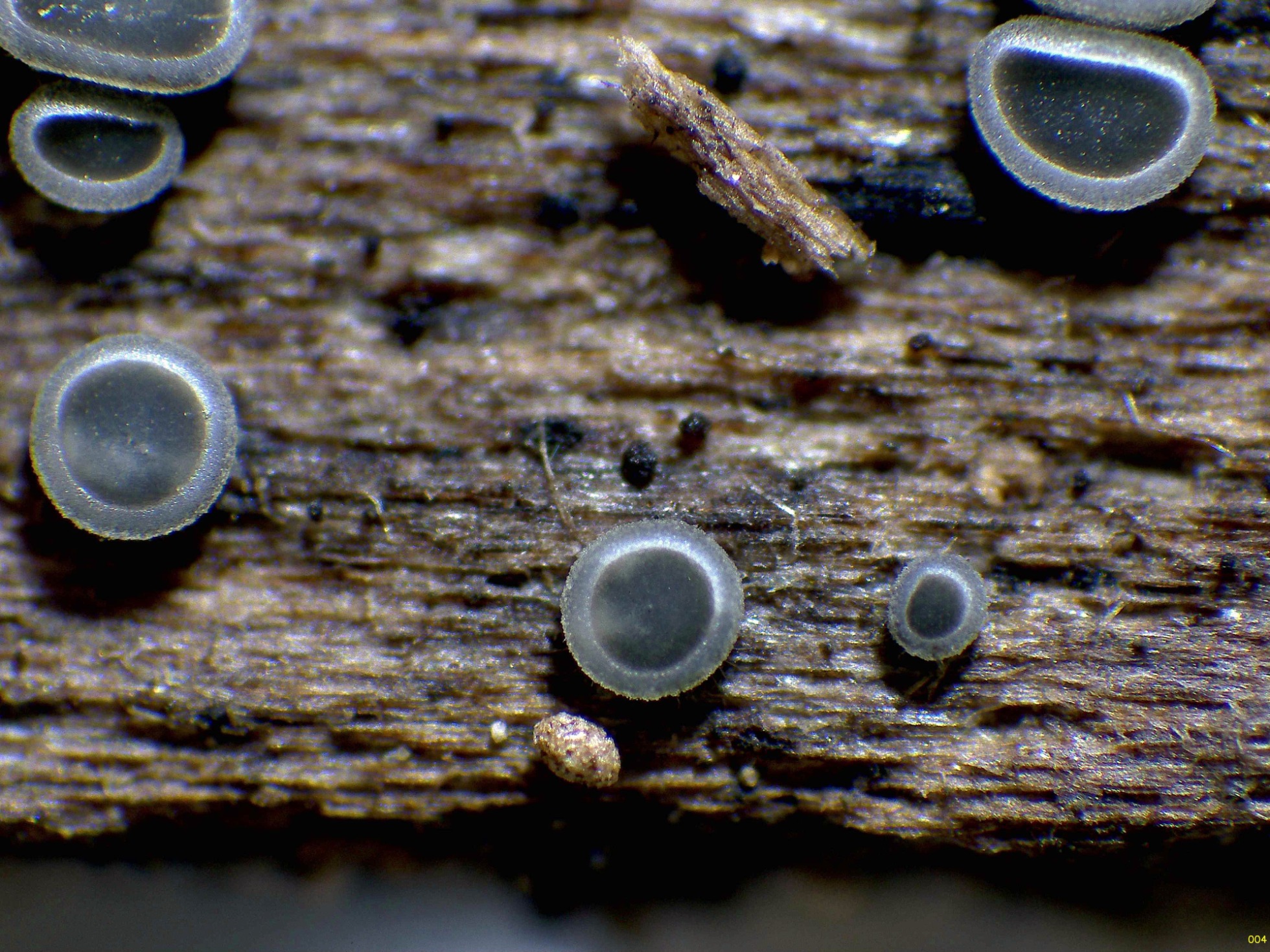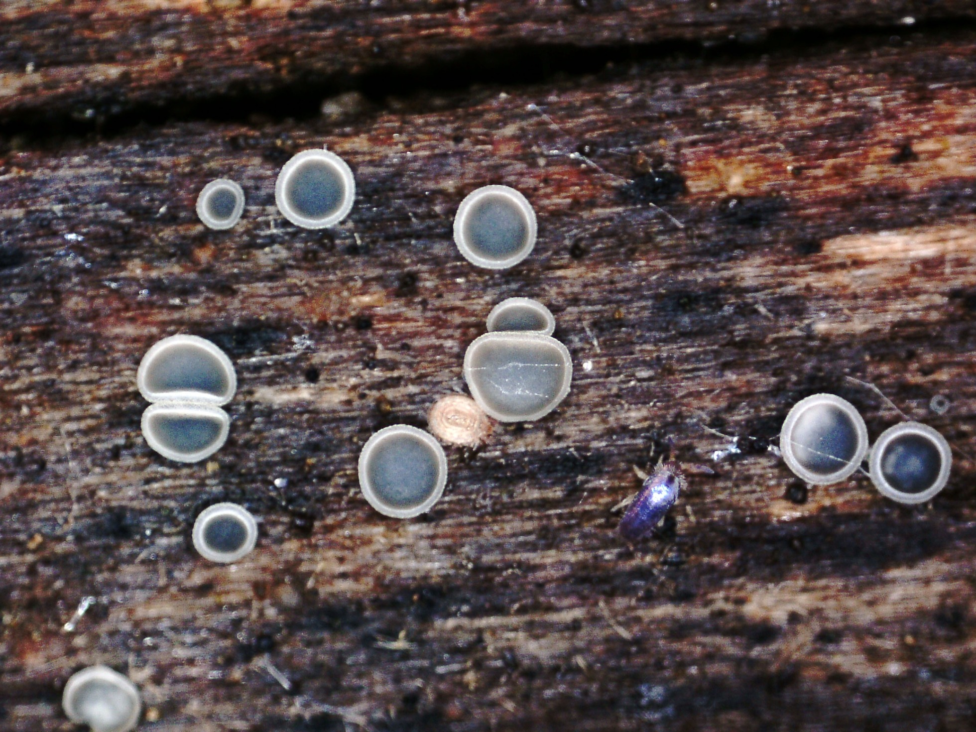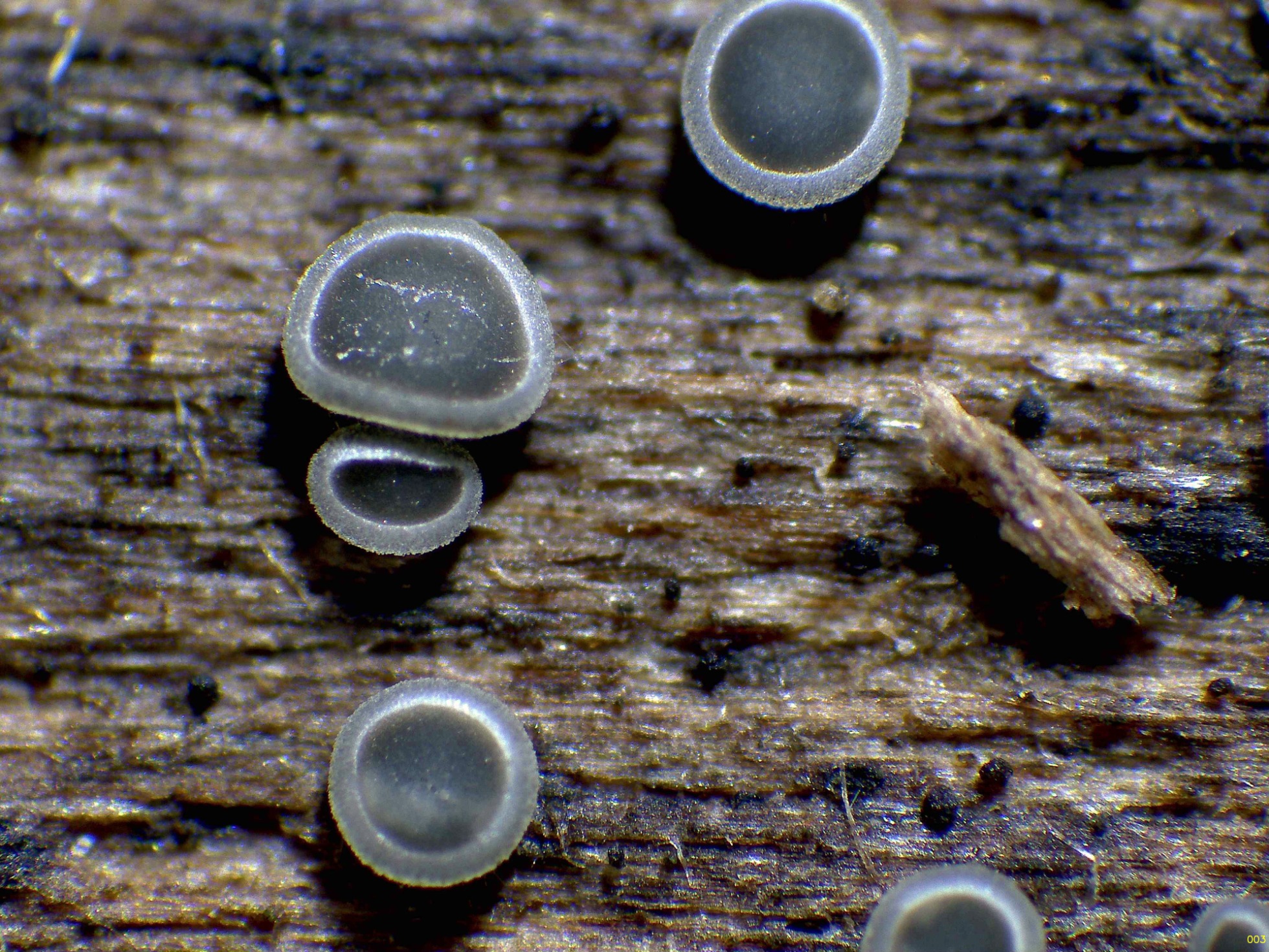 Llevo ya muchos años estudiando el género Mollisia, y de las que aparecen sobre madera en 9 de cada 10 ocasiones, siguiendo el criterio de las Claves que todos conocemos y que no puedo nombrar, atendiendo al sustrato, con reacción de los ascos "bb", con las hifas del excípulo pigmentadas , con esporas con unas medidas de 6-13 x 2,5-3,3 µm, y contenido de aceite 0, siempre me conducían a la Mollisia lividofusca, actualmente Tapesia lividofusca, he podido comprobar en mis archivos que dispongo de 12 estudios de la misma, llegado a este punto me resultaba muy difícil el admitir que siempre se trataba de la misma, por lo que decidí mandar unas muestras a por el análisis molecular, la secuenciación del gen ITS determinó que se trataba con una coincidencia del 100% de: