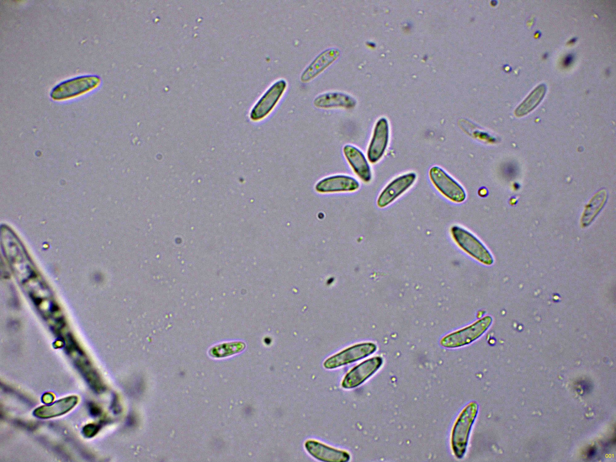 Curiosamente el 7 de noviembre, en una salida por Cerler, a 29 Km. en línea recta de la anterior, me encuentro de nuevo con una Mollisia sobre madera con una microscopía prácticamente idéntica, la que honestamente sin el análisis molecular la debo archivar como Mollisia cf. oblonga.