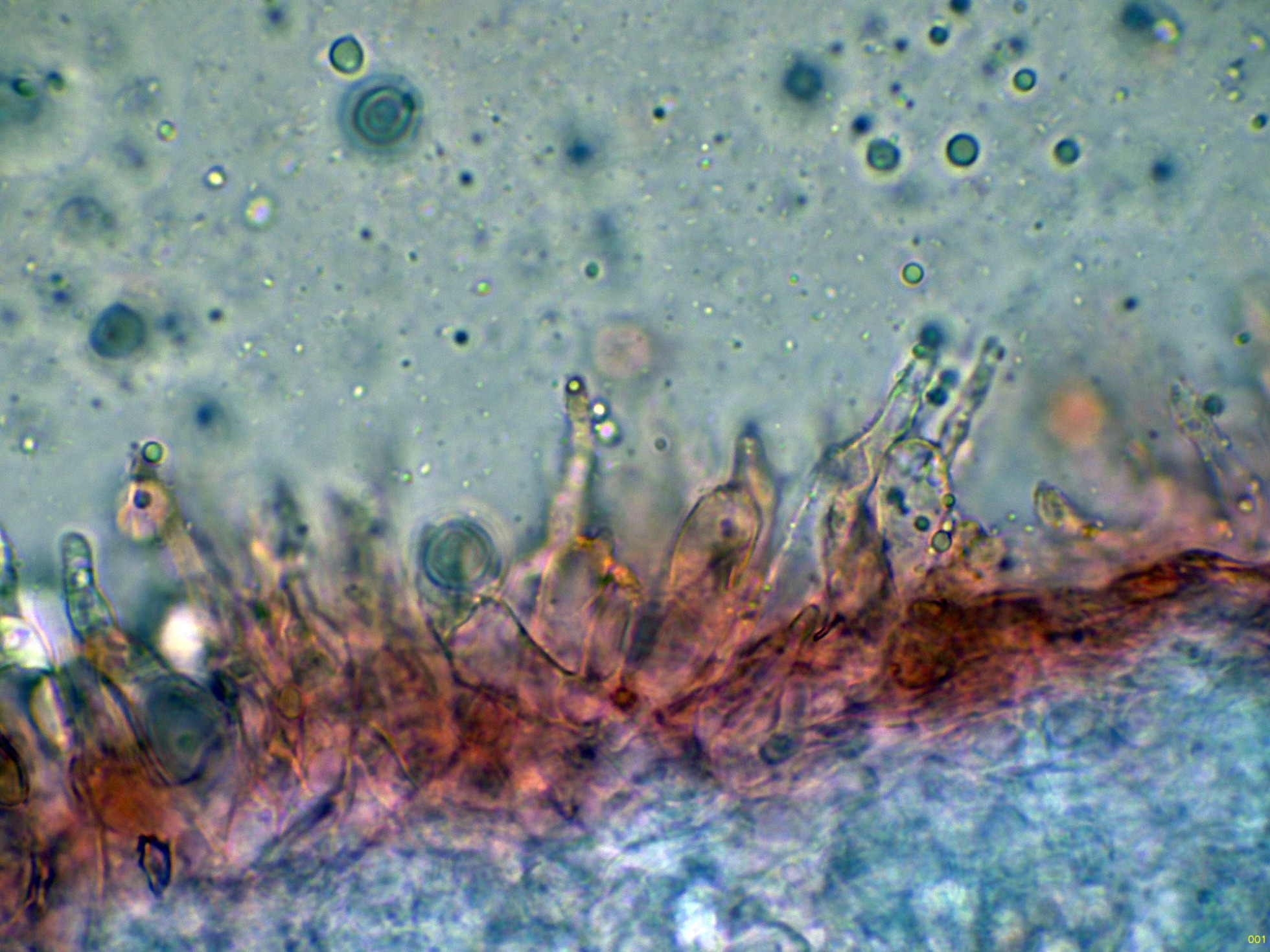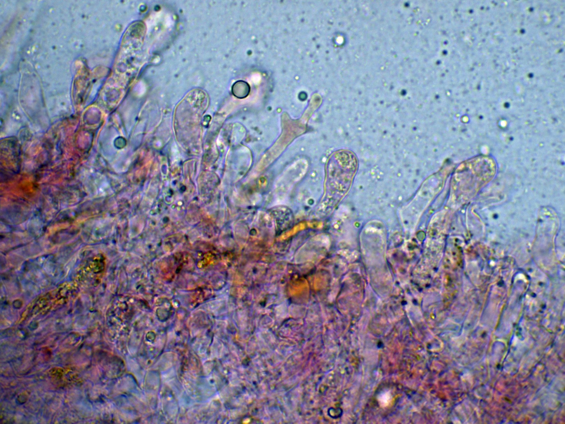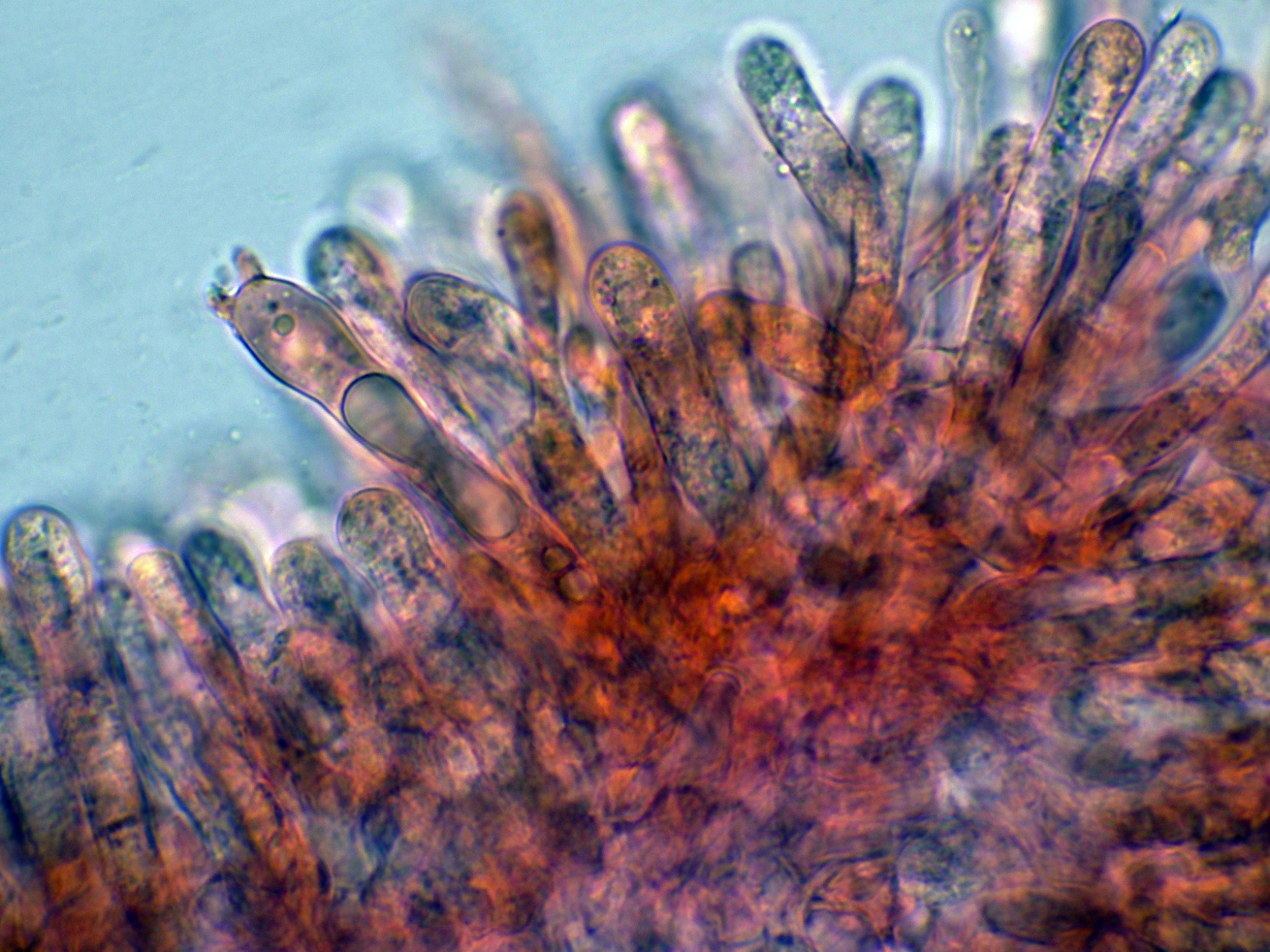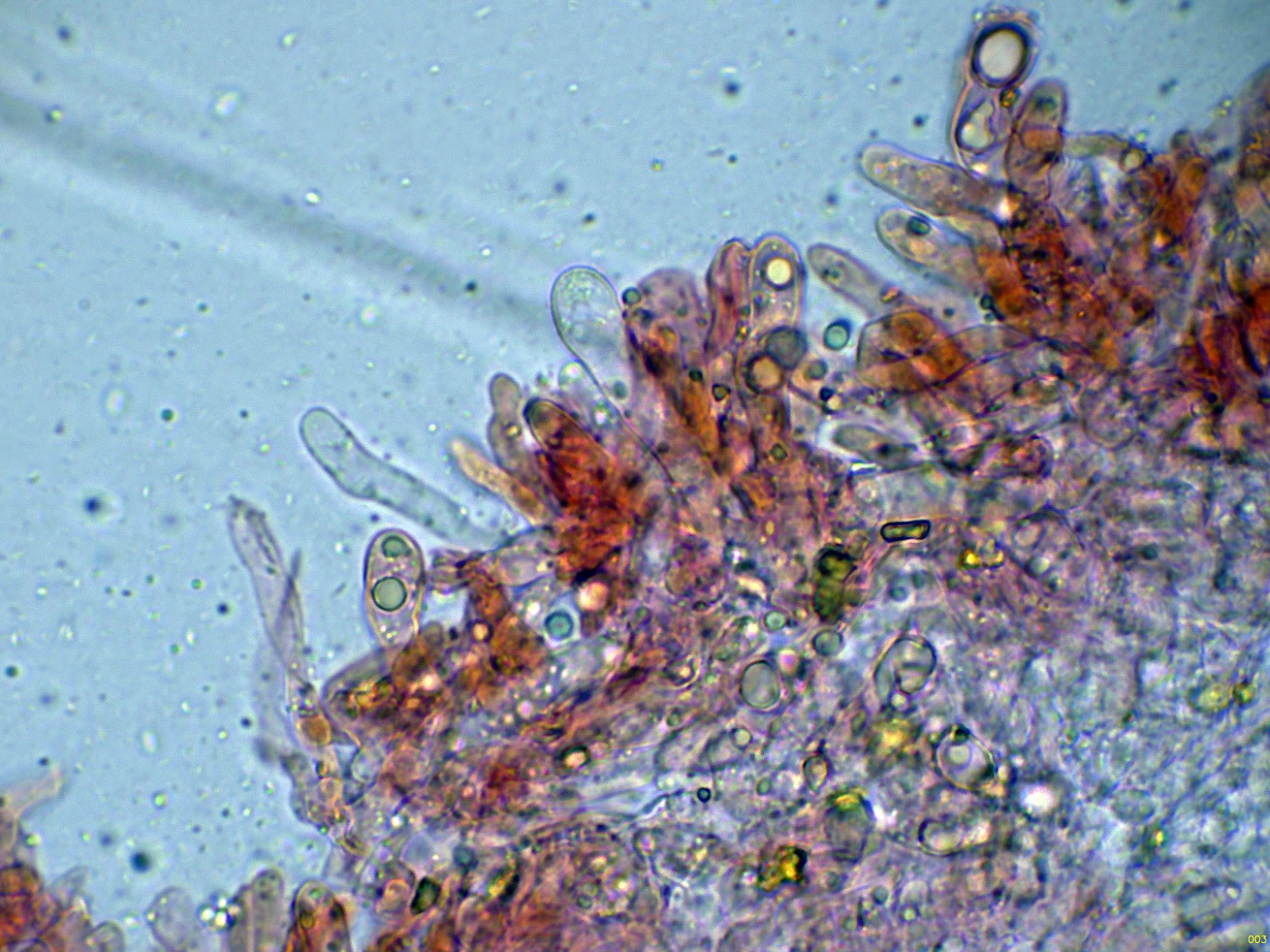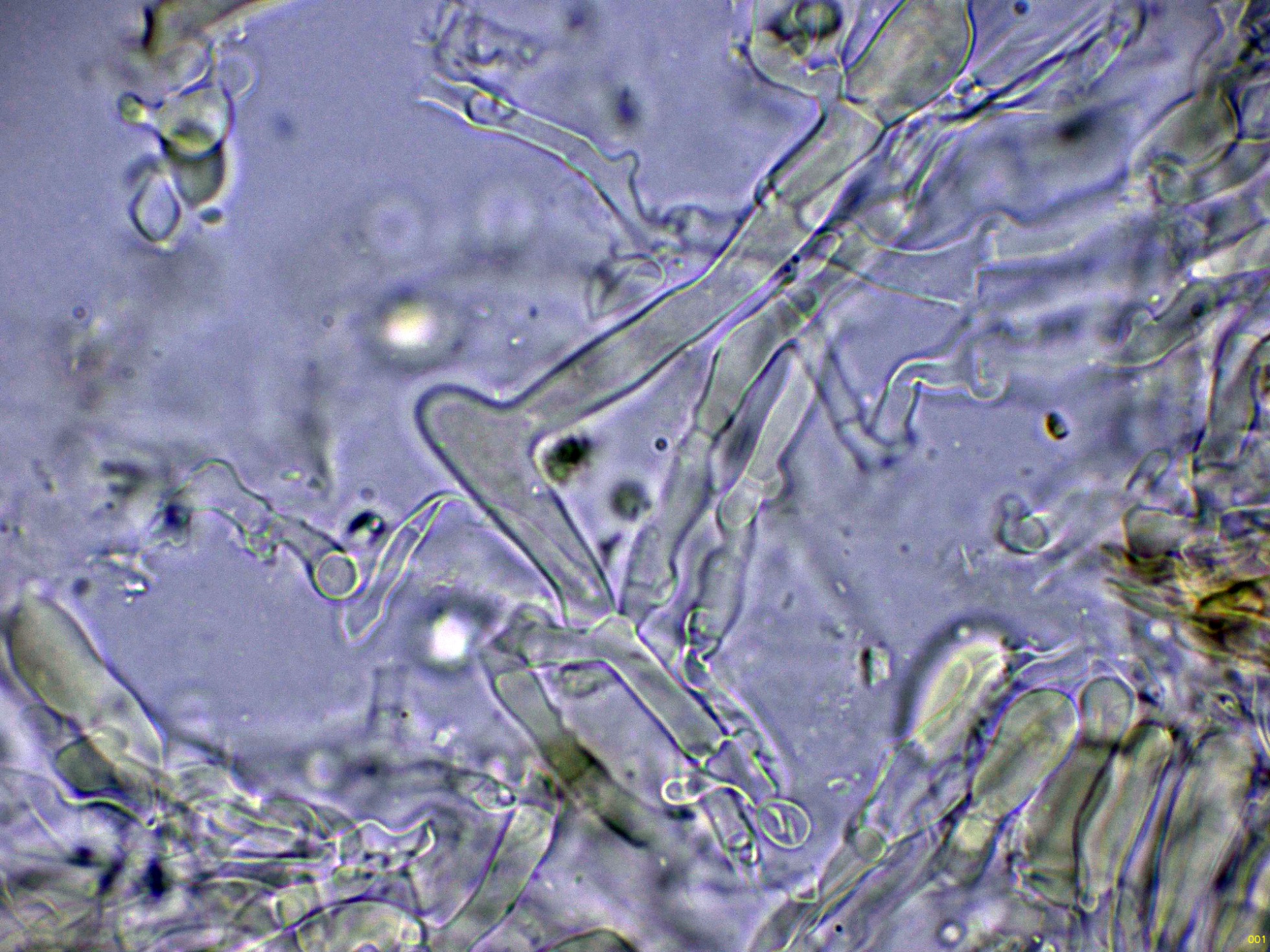 Seguimos con un Corticial, con abundantes gloeocistidios, el Gloeocistidiellum luridum: