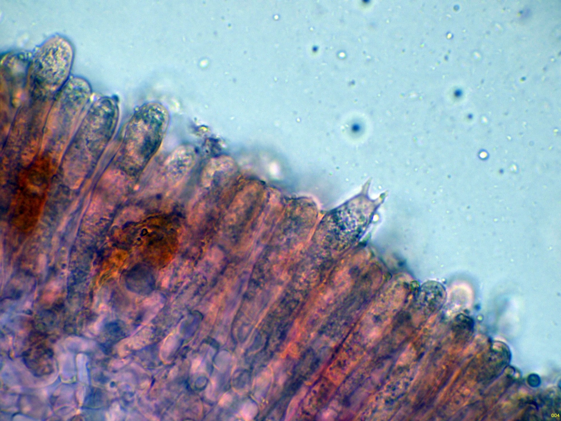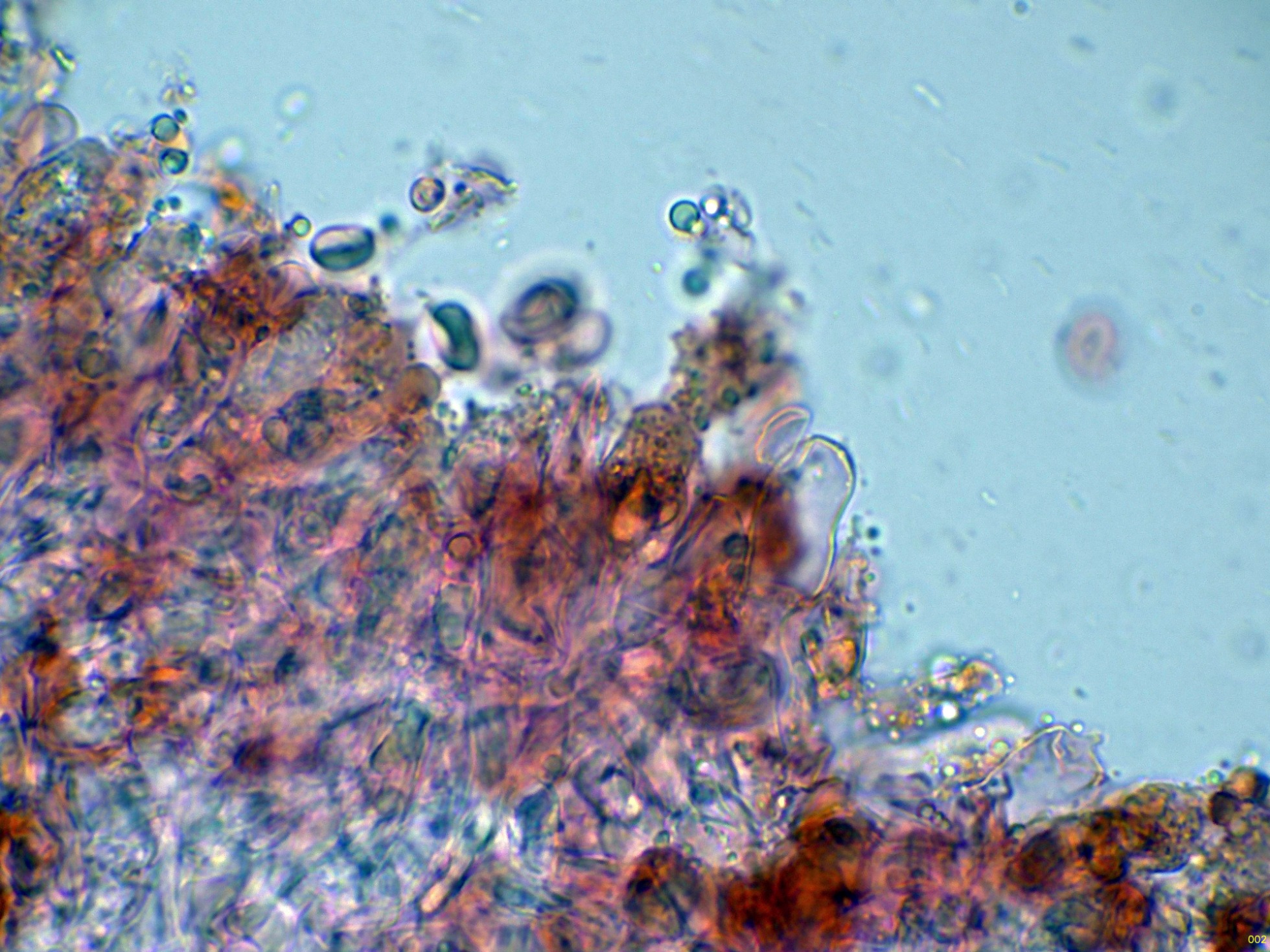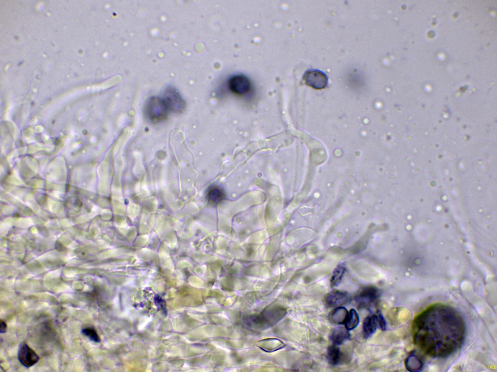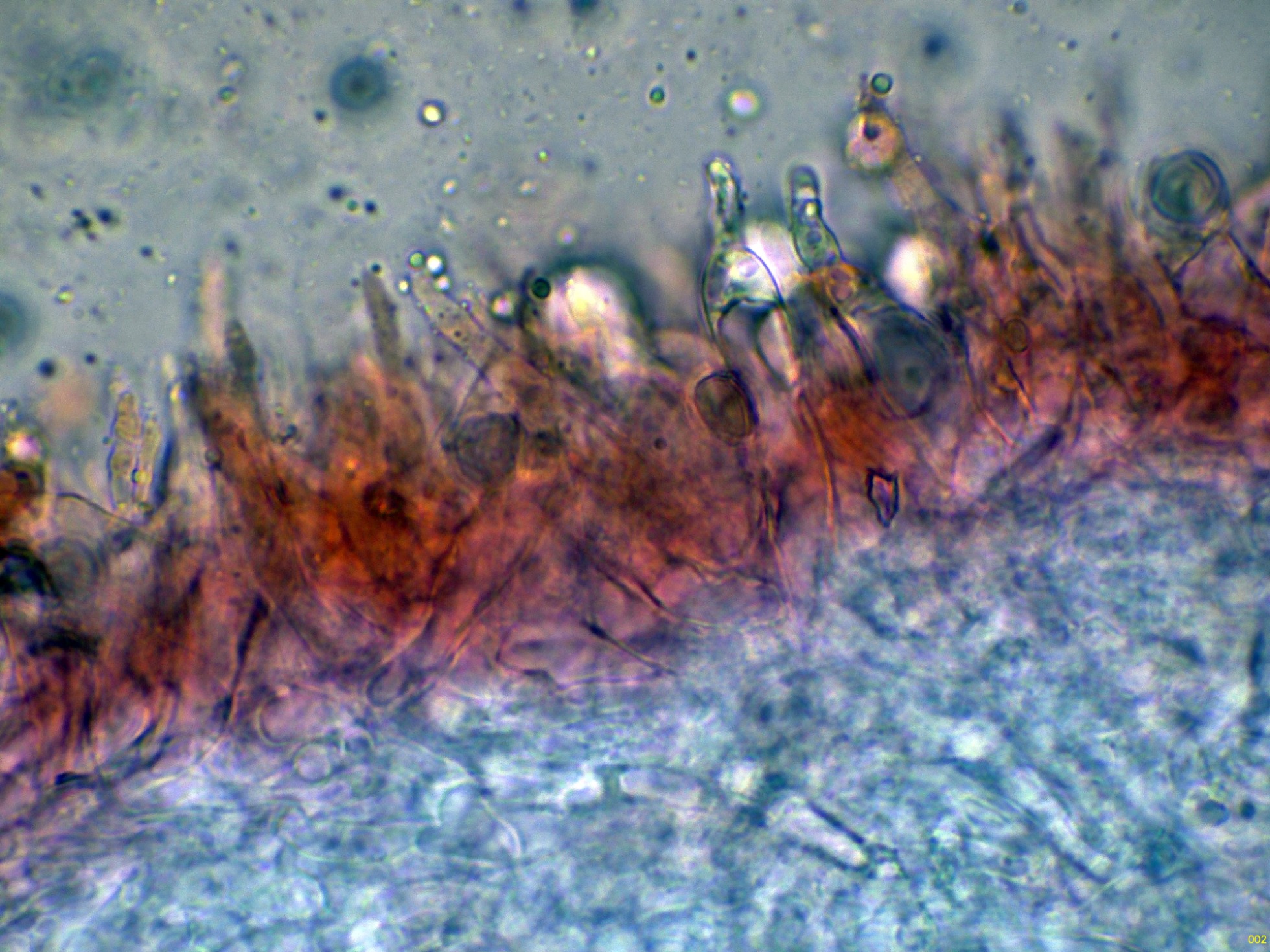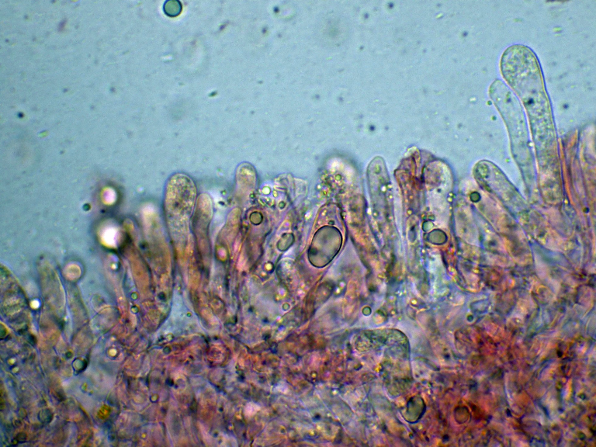 Seguimos con un Corticial, con abundantes gloeocistidios, el Gloeocistidiellum luridum: