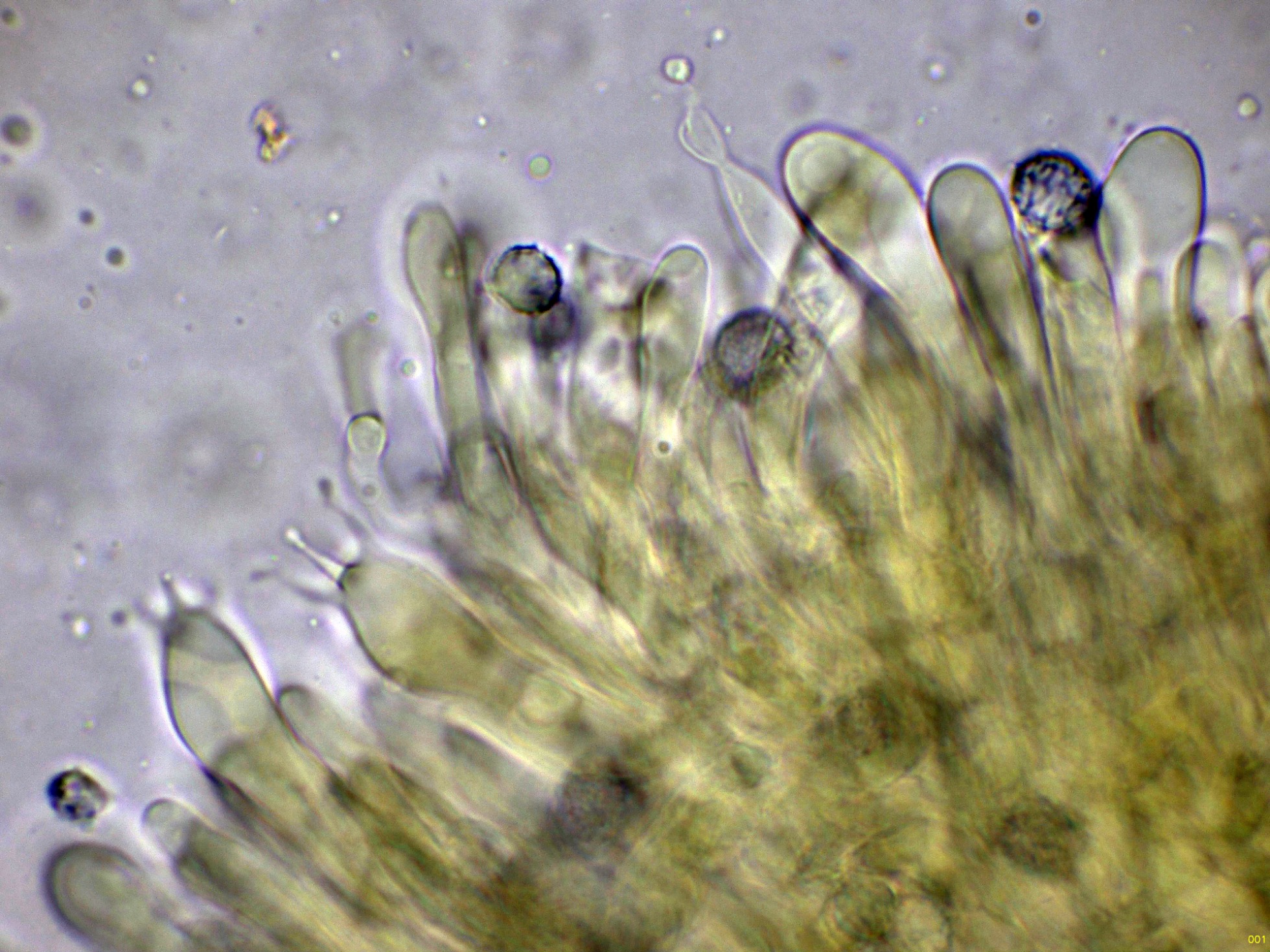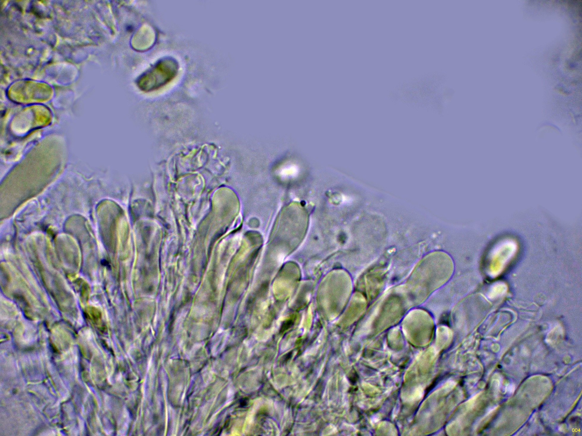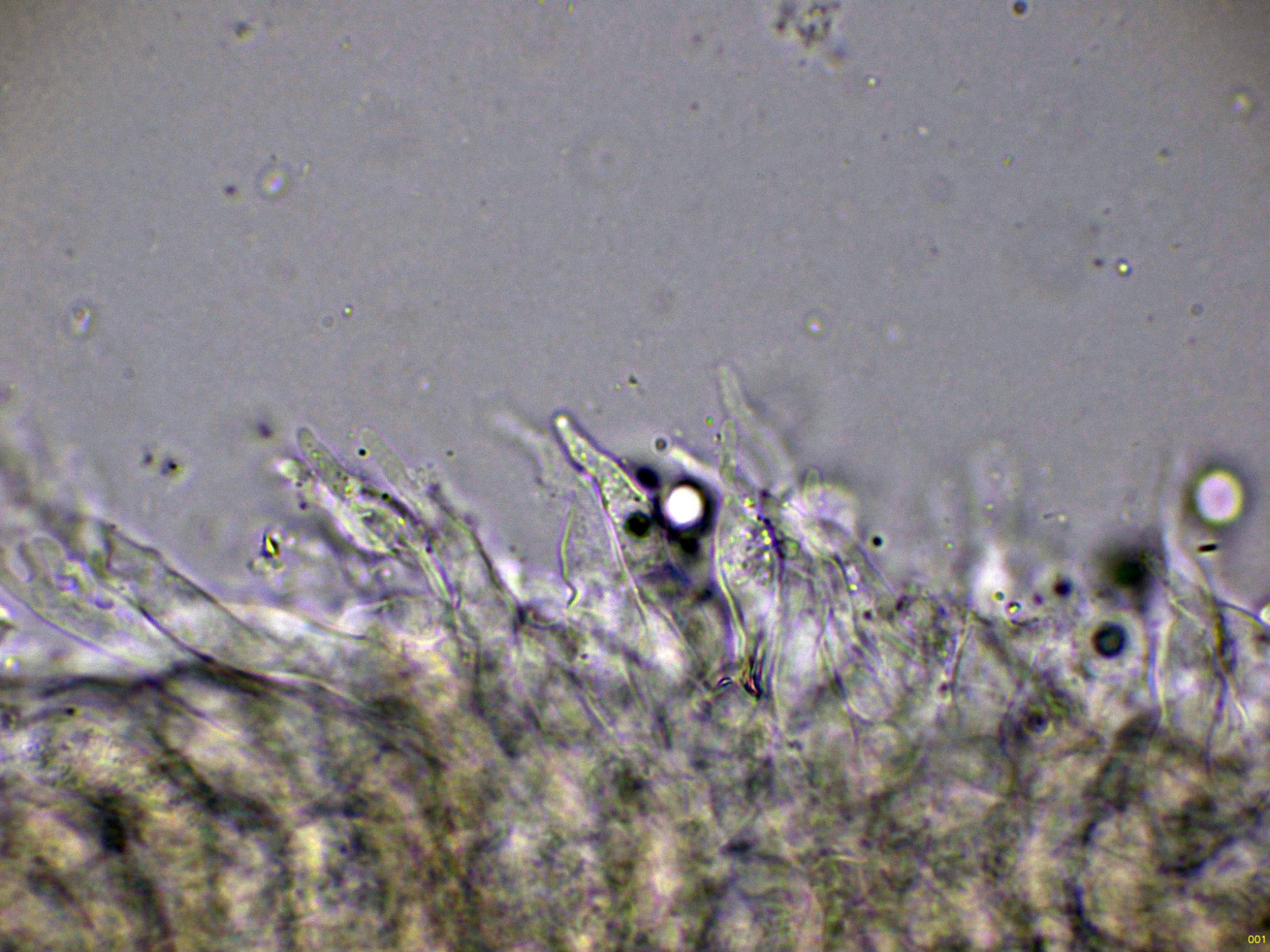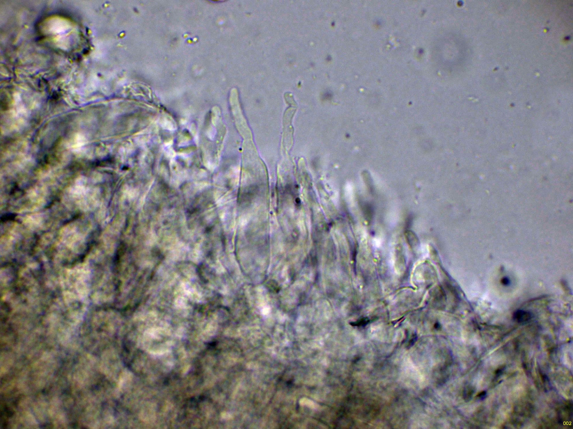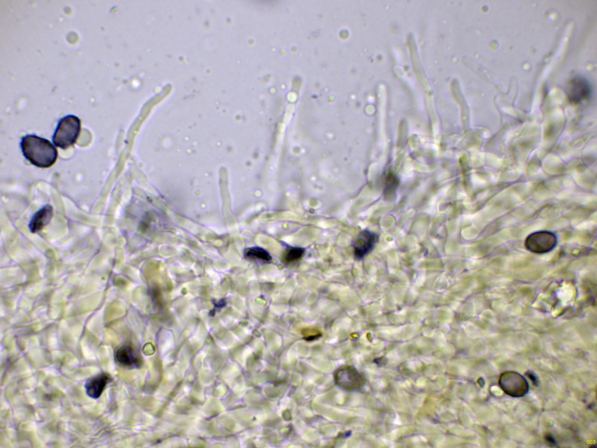 Seguimos con un Corticial, con abundantes gloeocistidios, el Gloeocistidiellum luridum:
