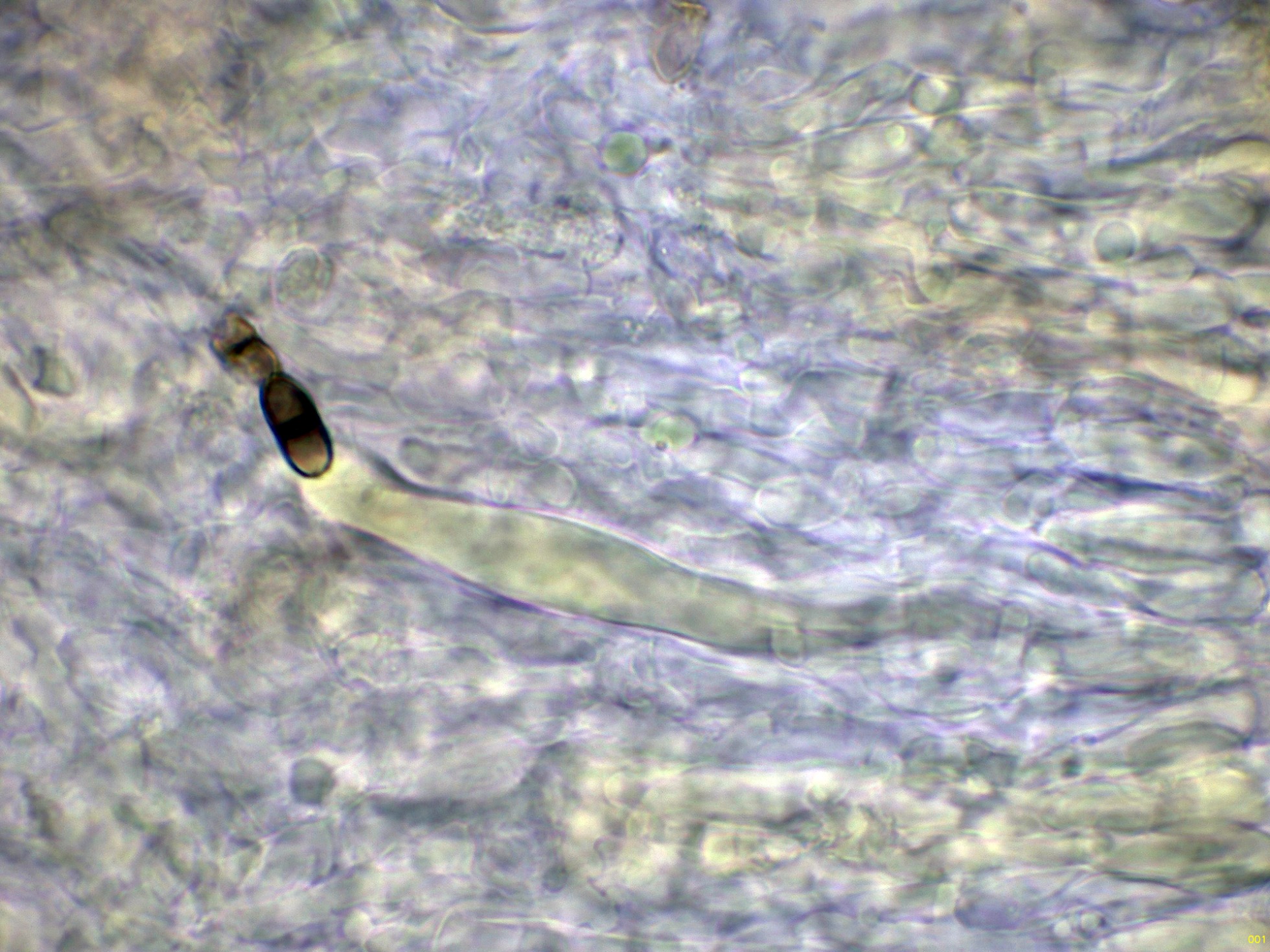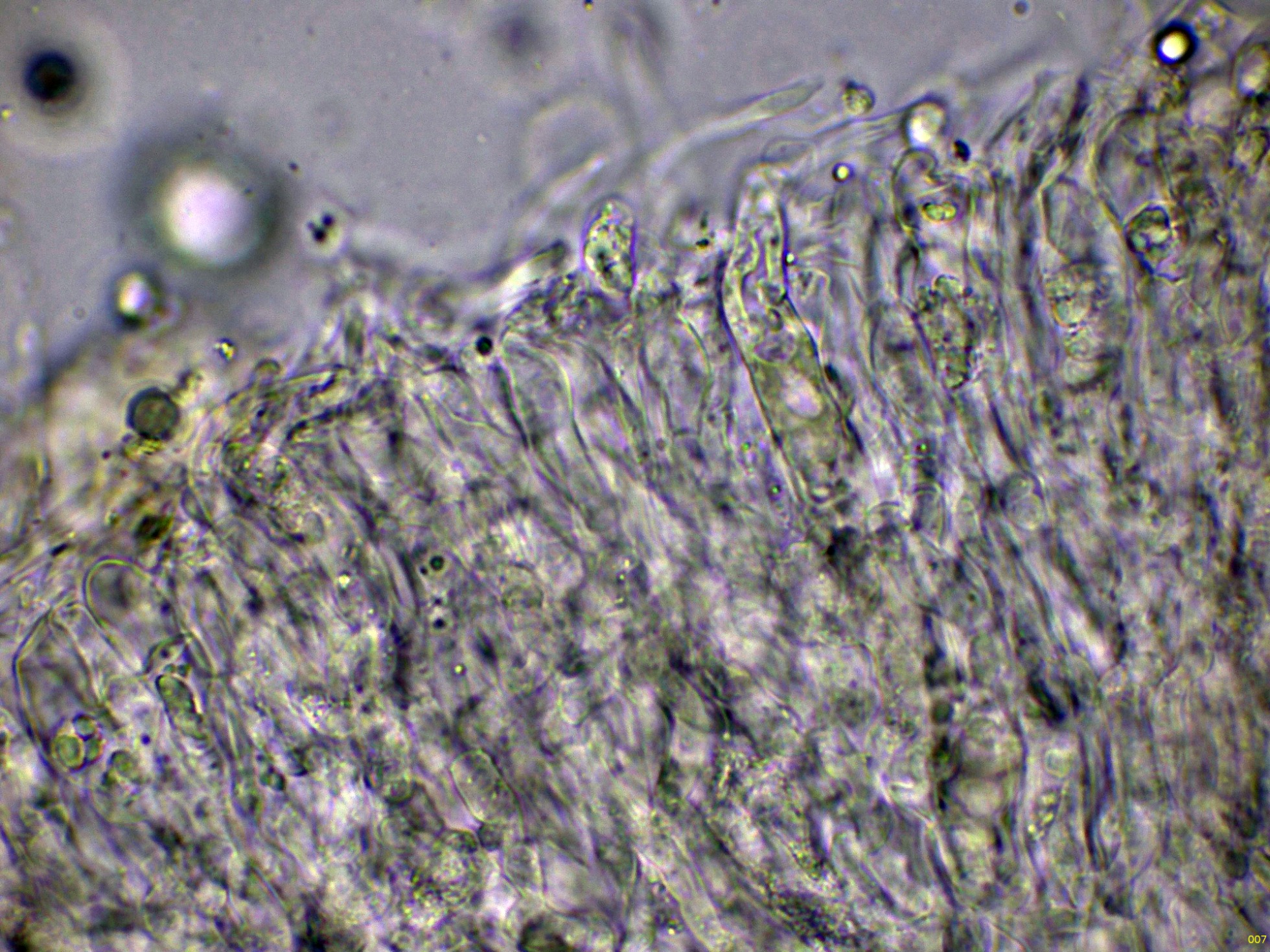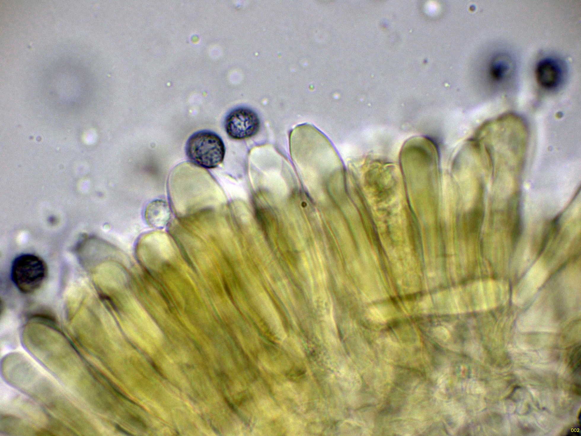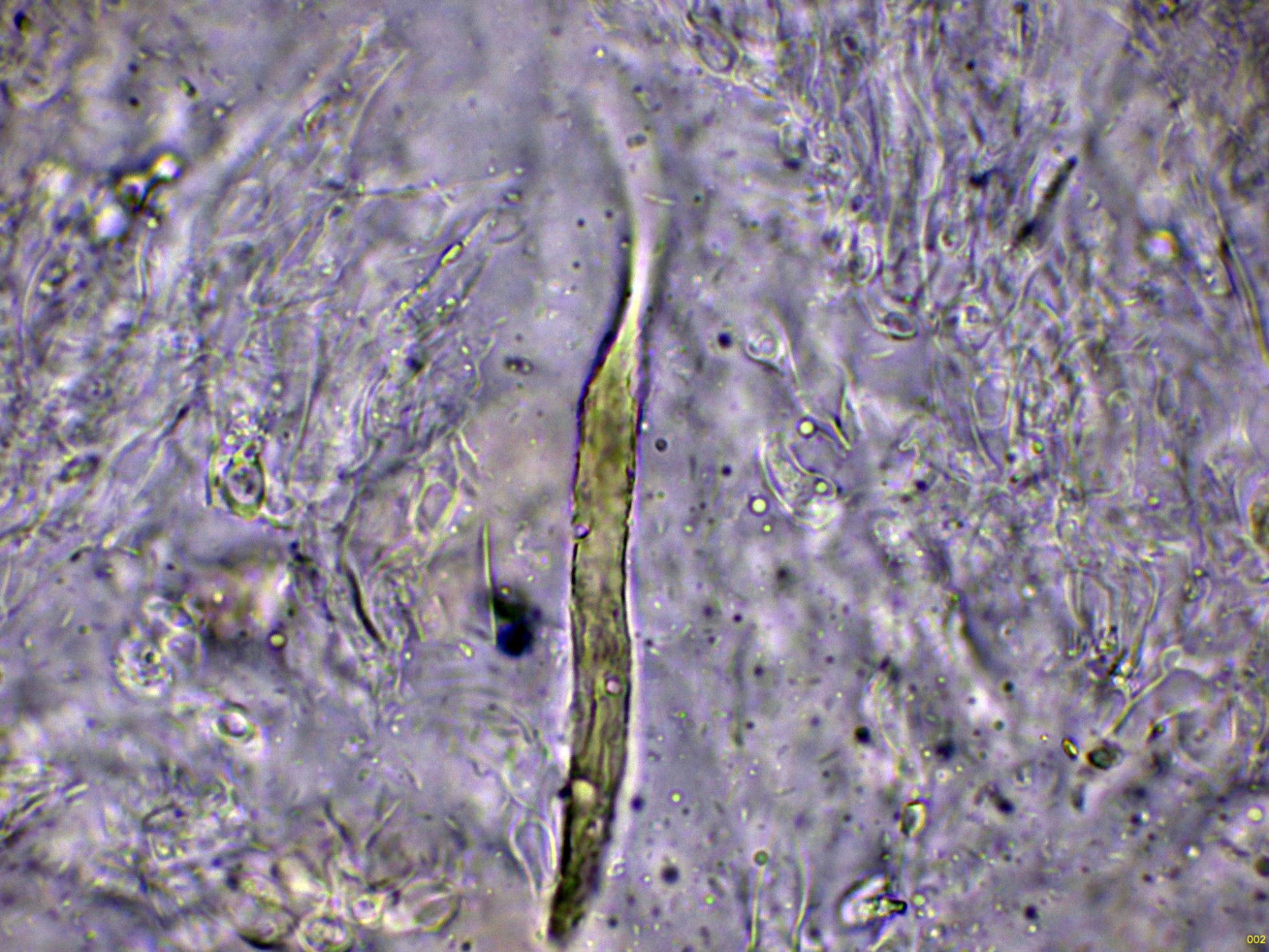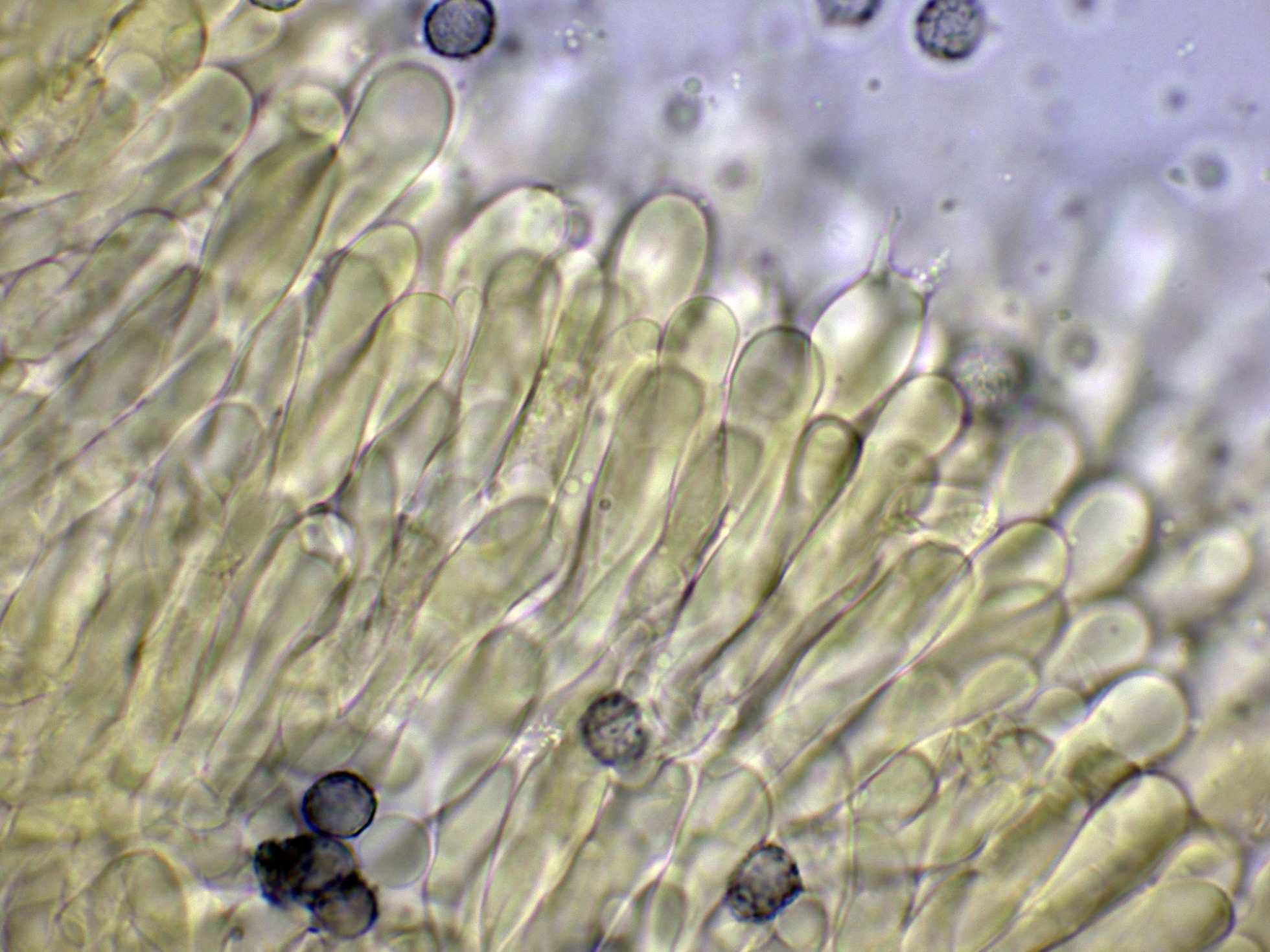 Seguimos con un Corticial, con abundantes gloeocistidios, el Gloeocistidiellum luridum: