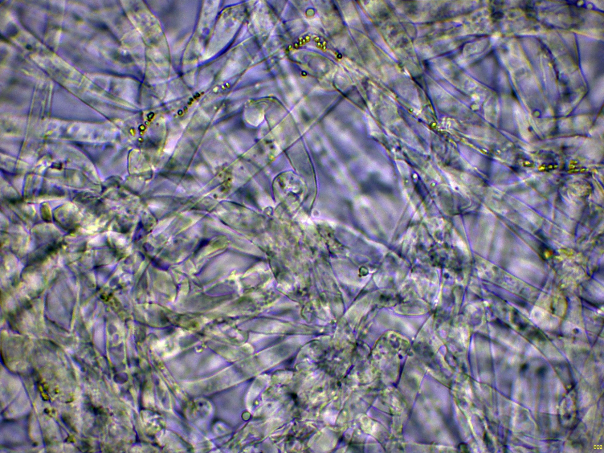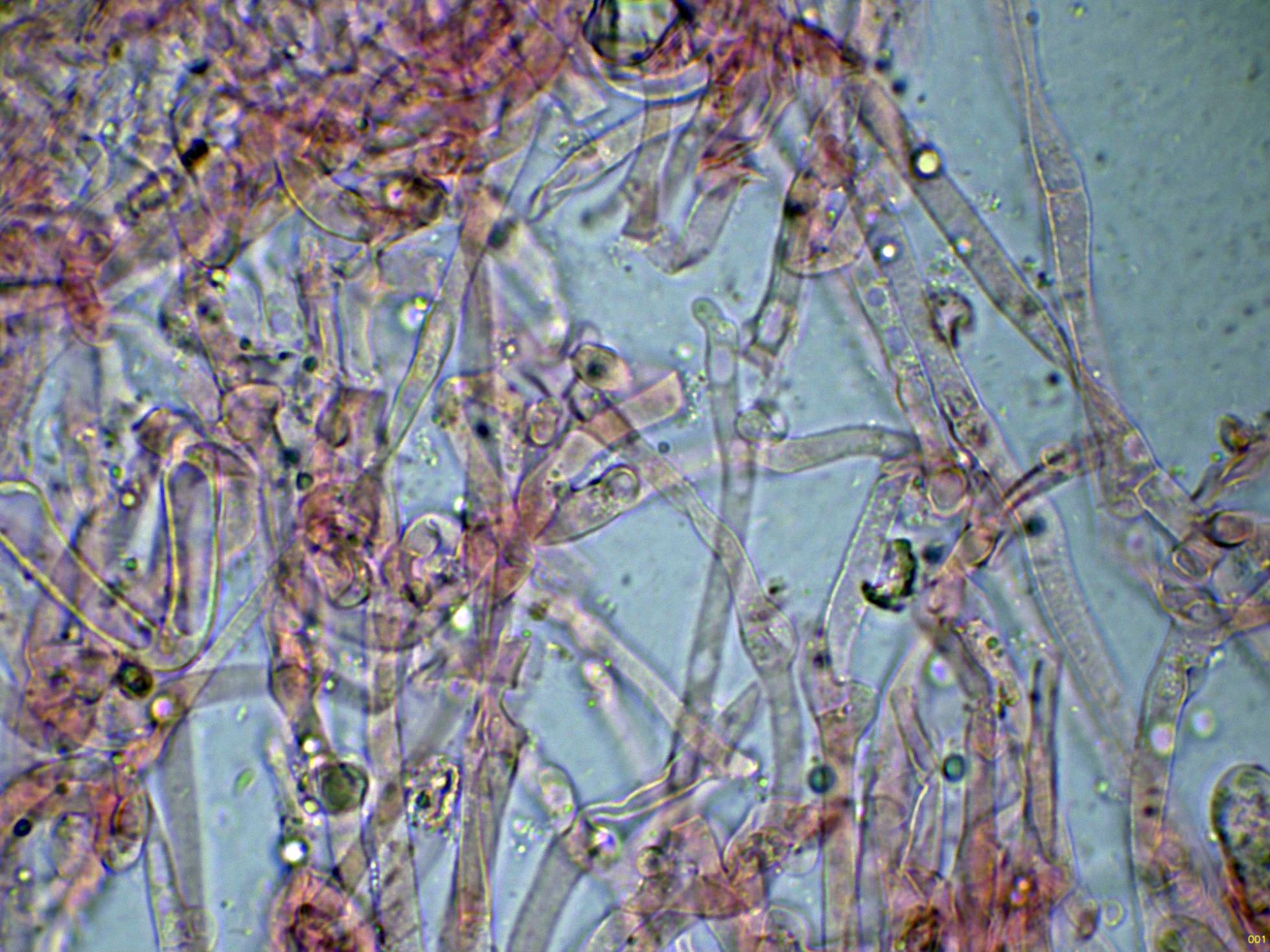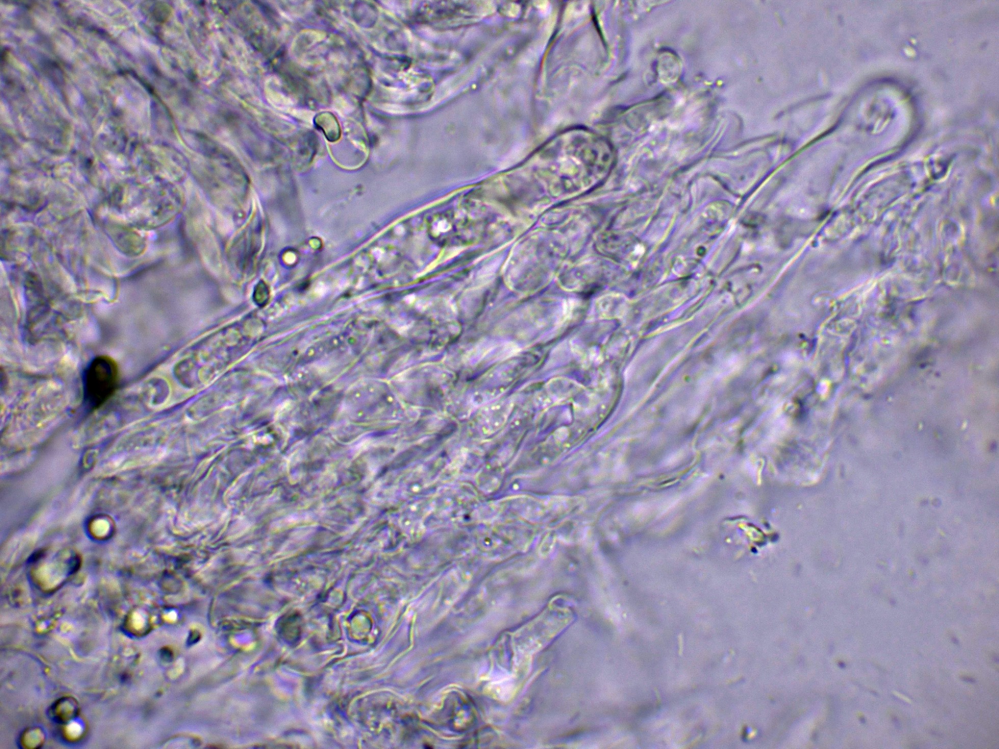 Las hifas subhimeniales fibuladas en solución de amoníaco: