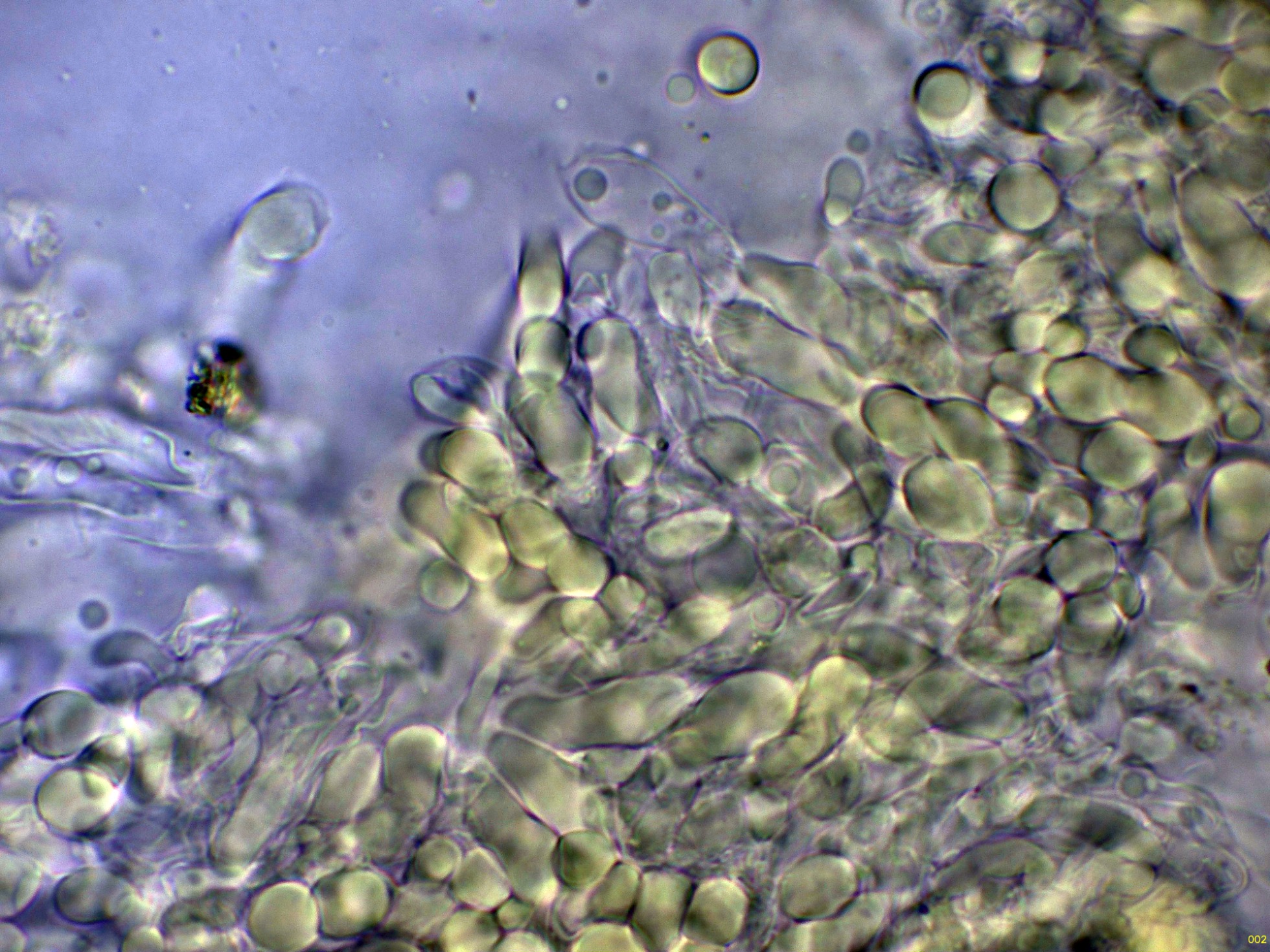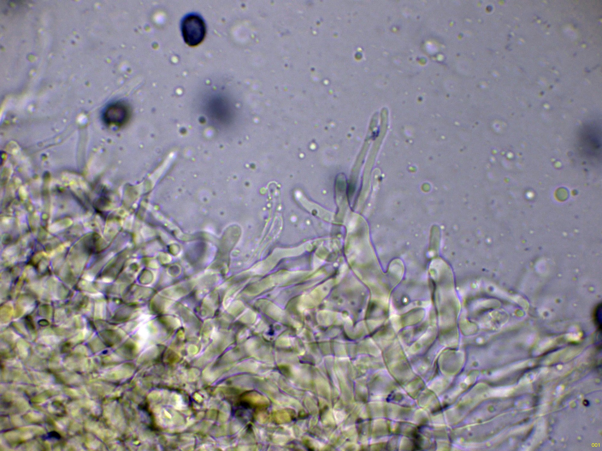 Las hifas subhimeniales en Reactivo de Melzer, fibuladas: