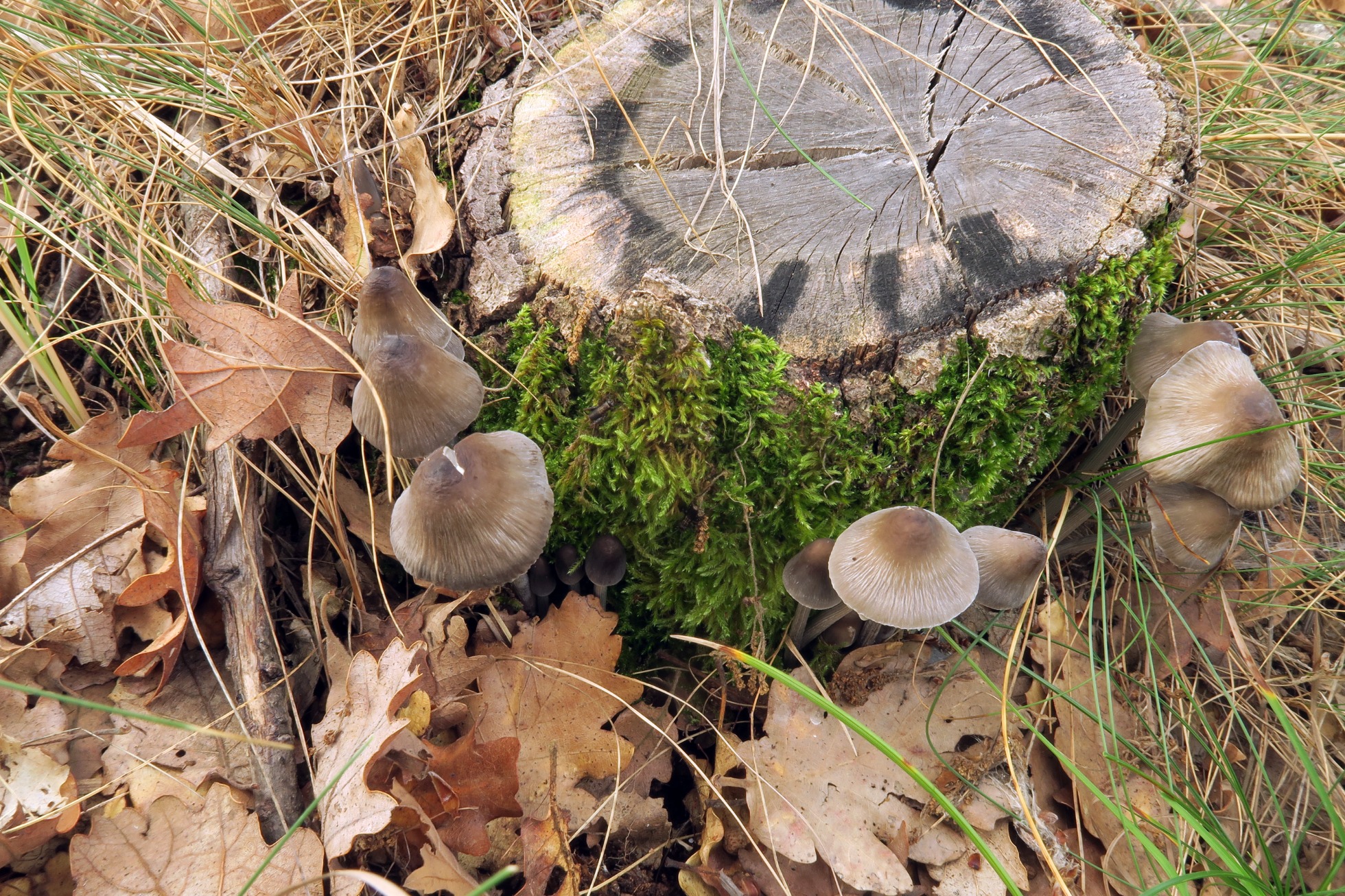 Sobre un tocón de roble tenemos la Mycena polygramma: