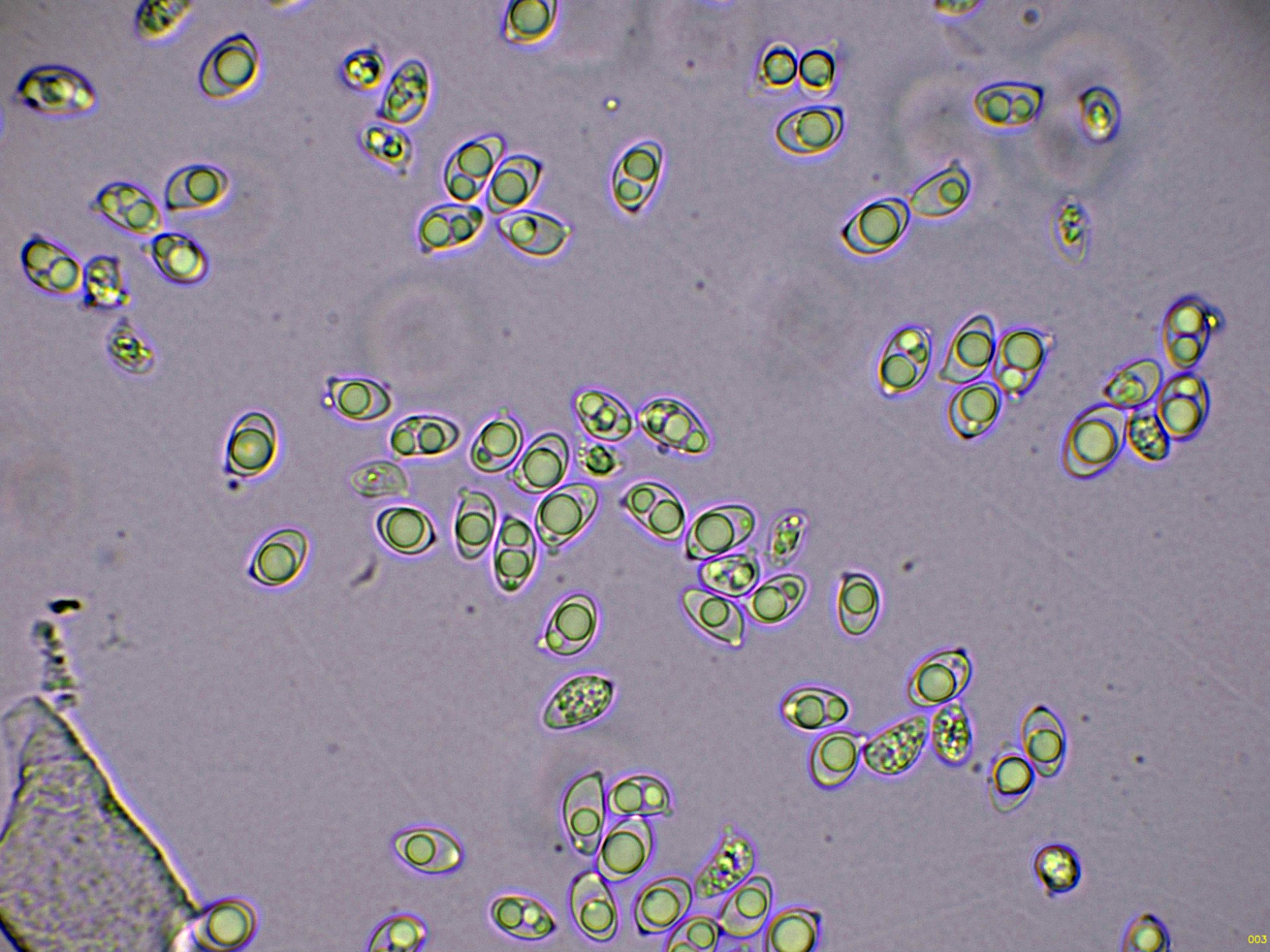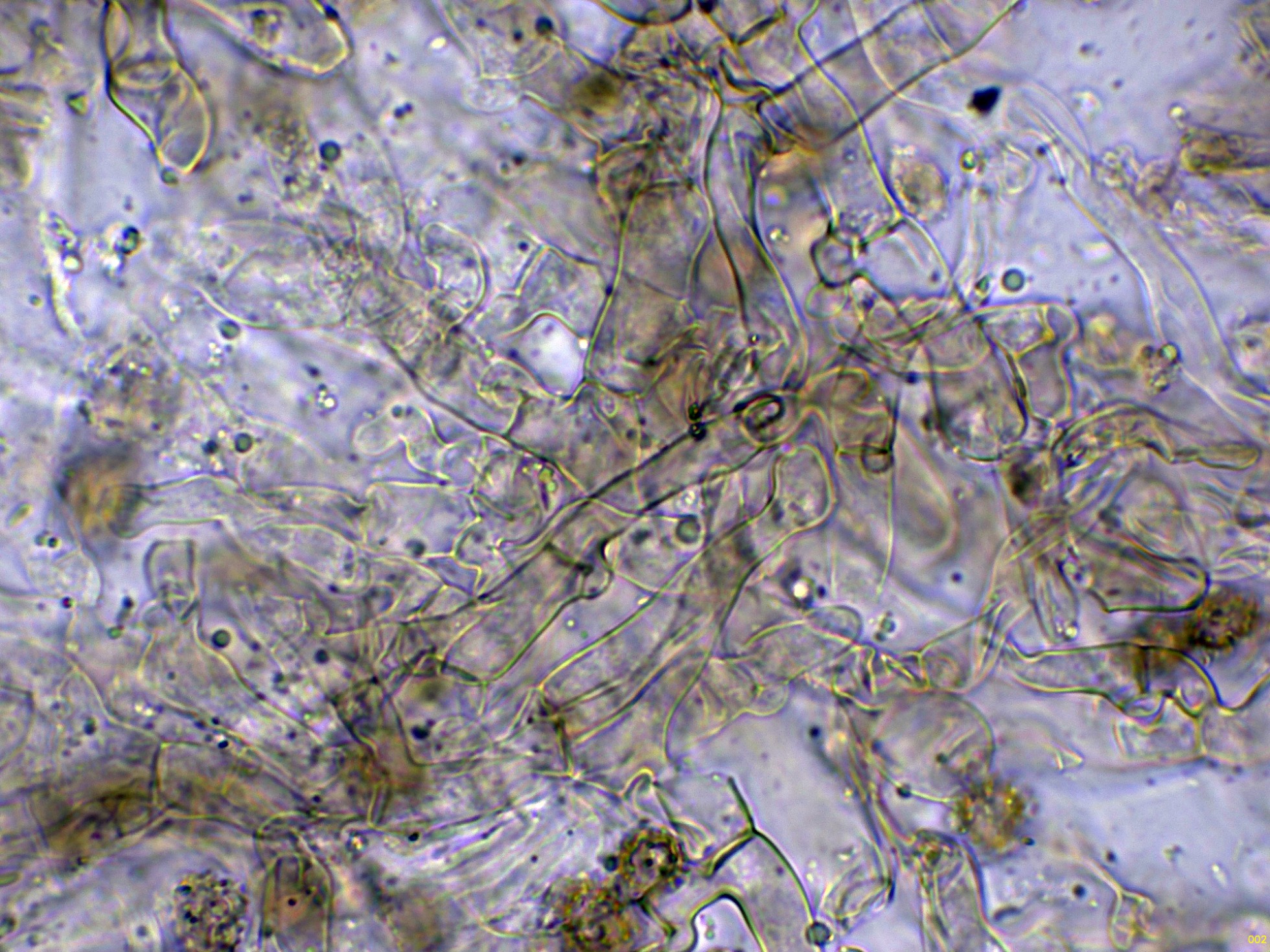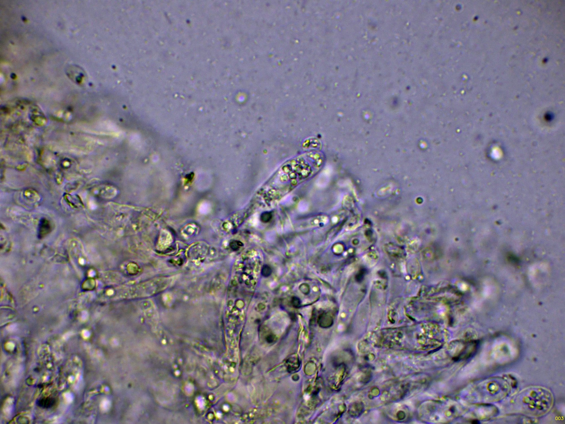 La trama laminar en amoníaco, el Tricholoma lascivum es uno de los pocos Tricholomas que pueden presentar algunas fíbulas: