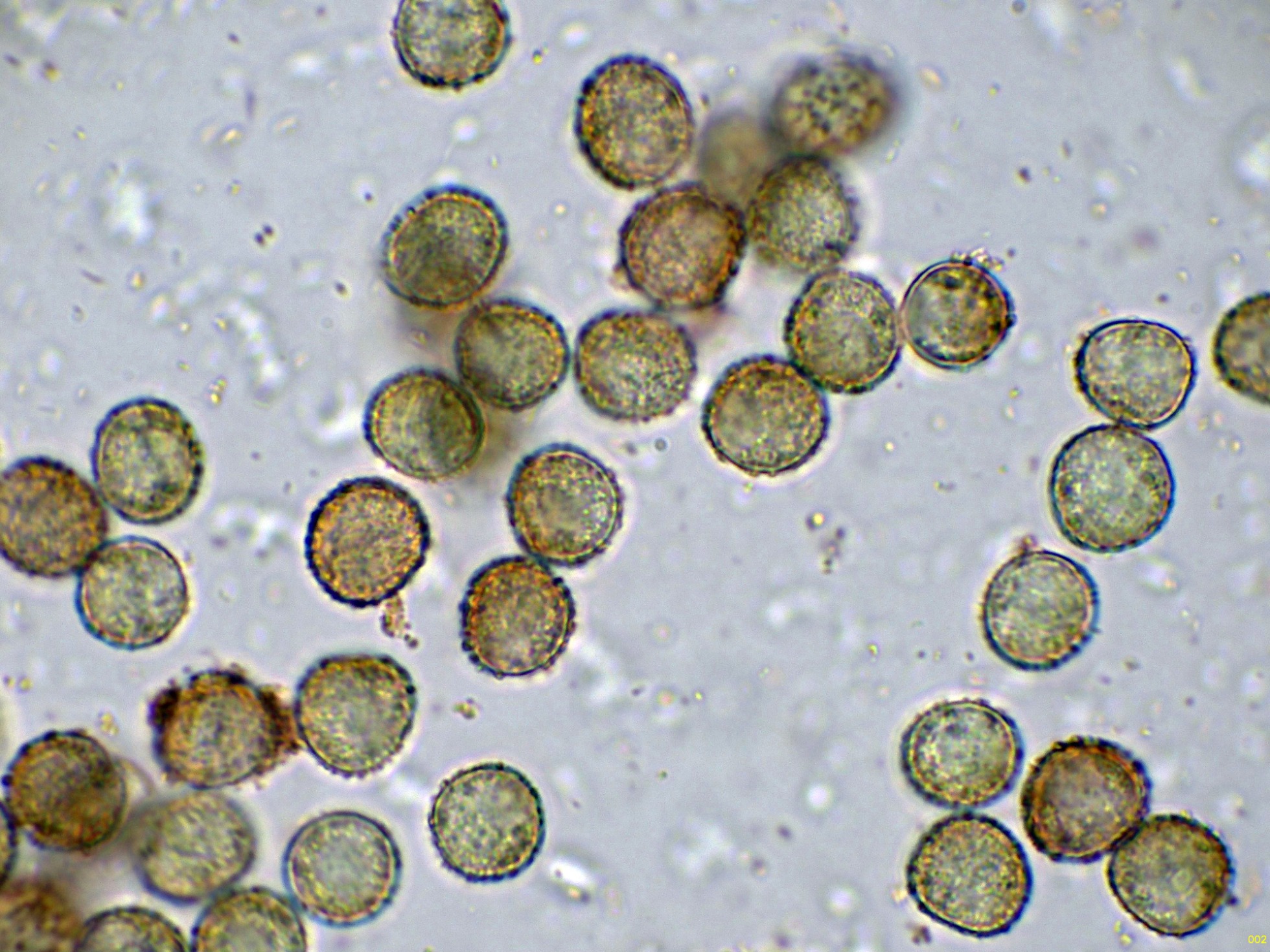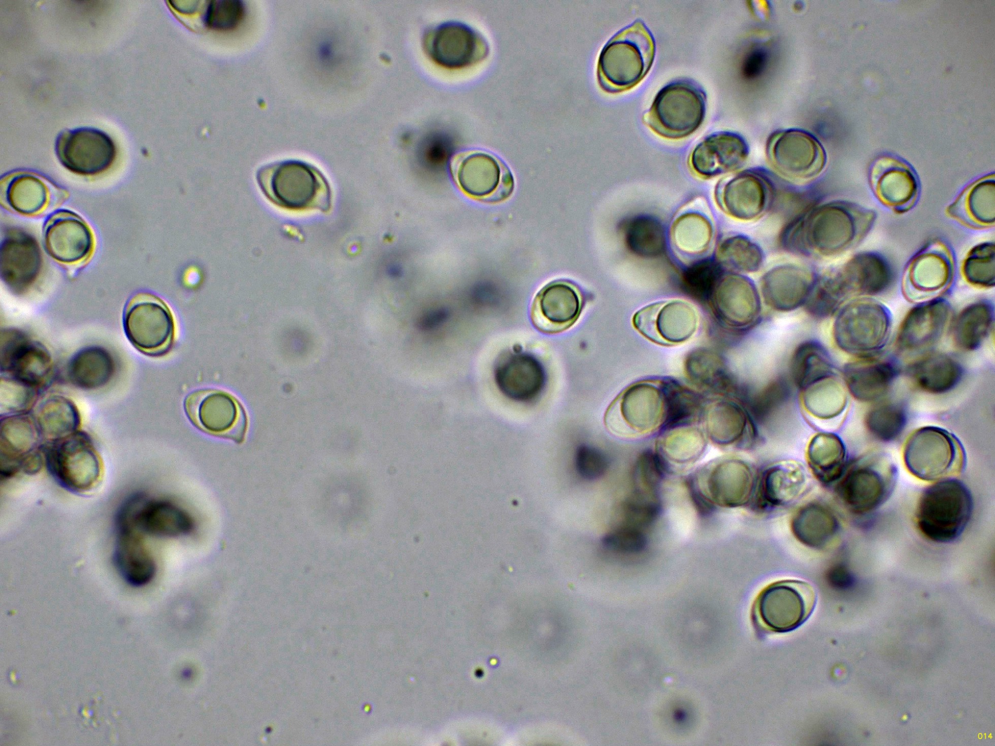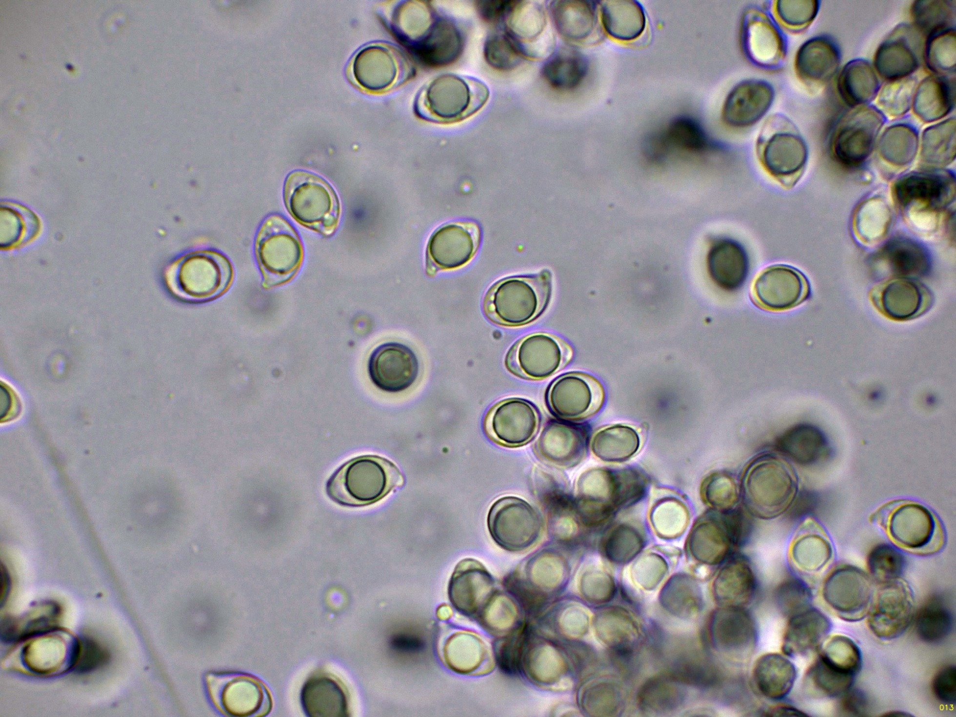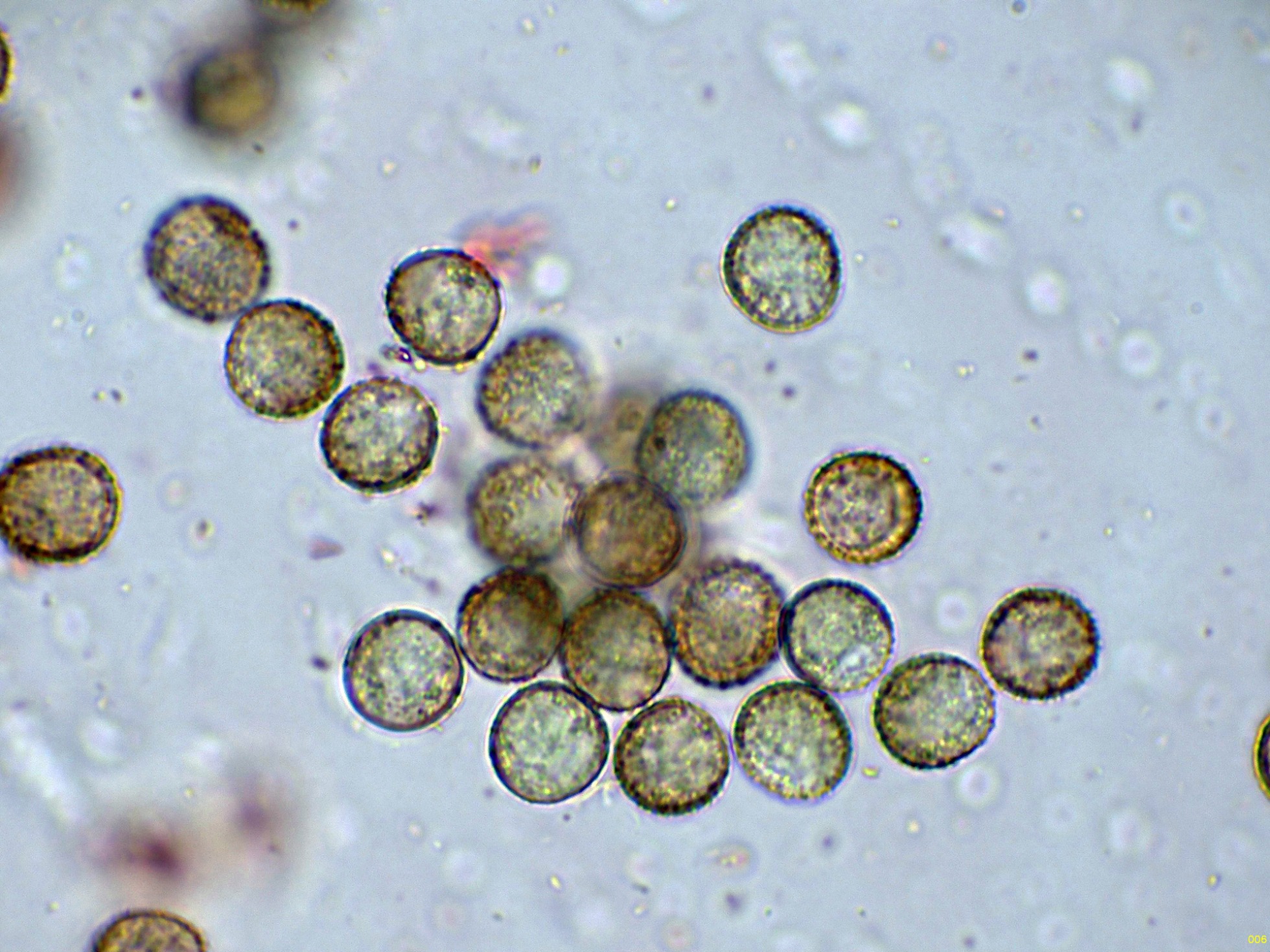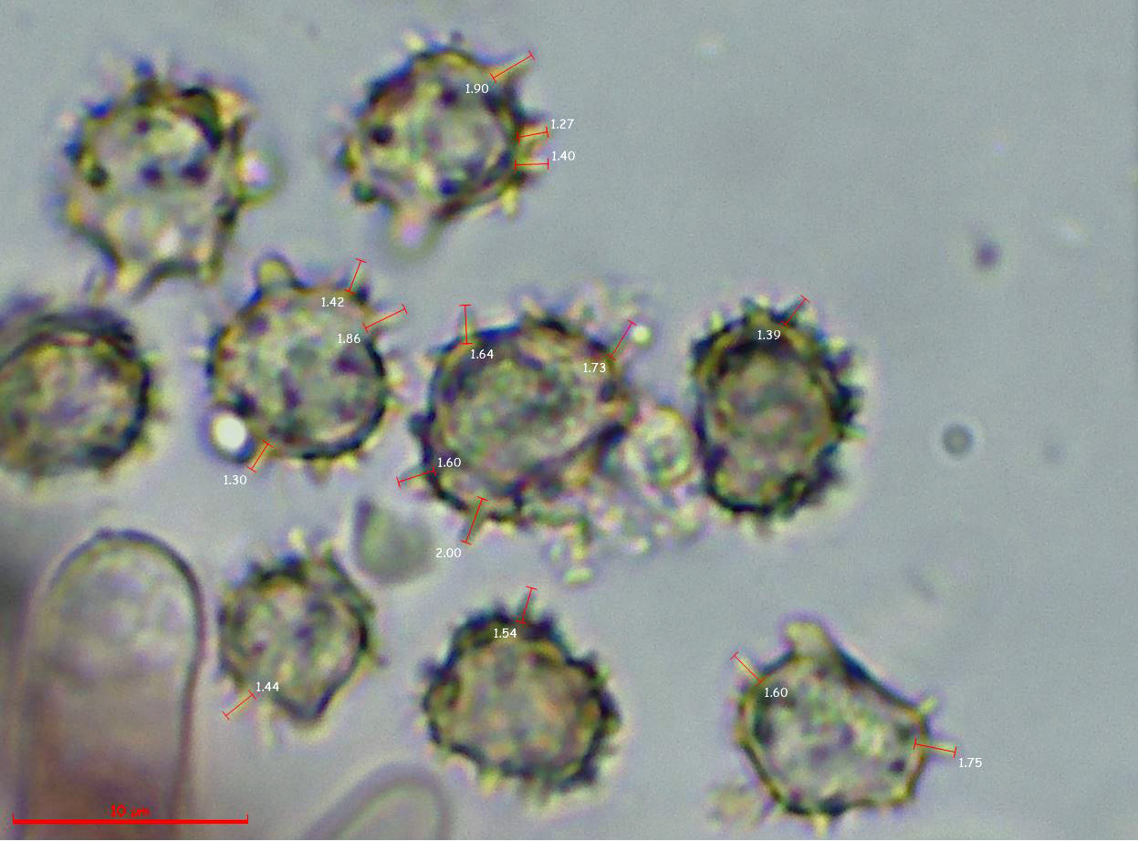 Estas esporas en distintos medios, con unas medidas sin contar la ornamentación de: