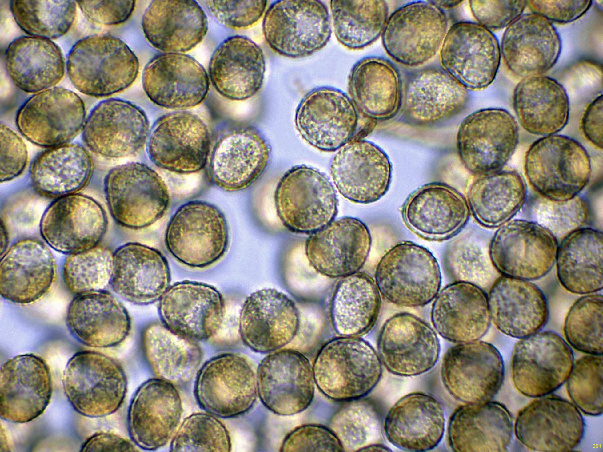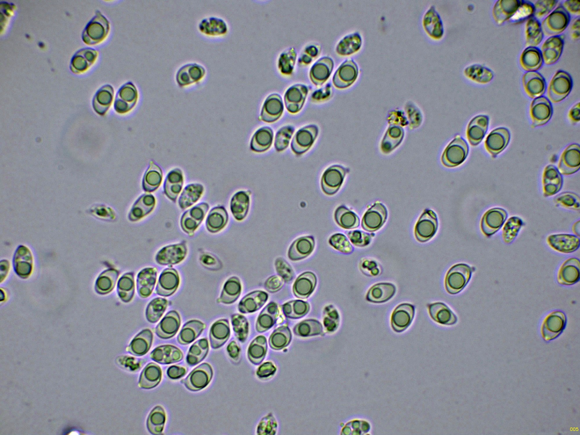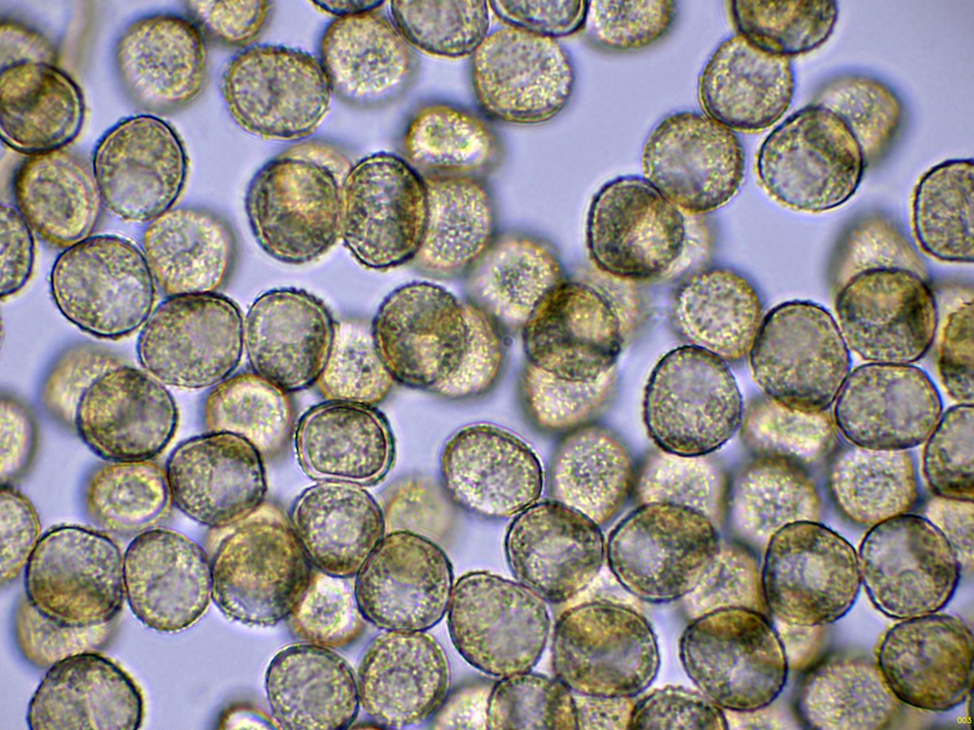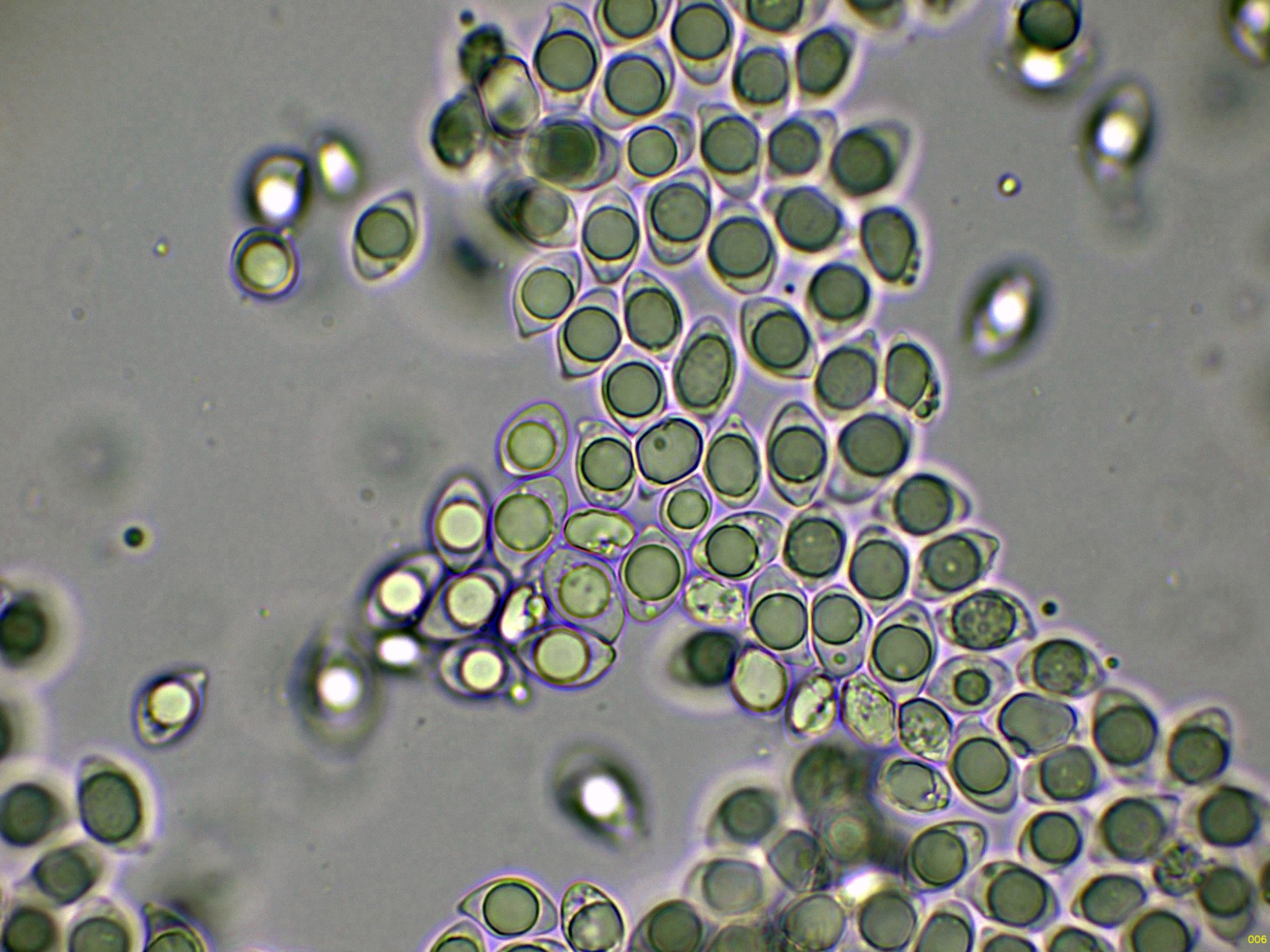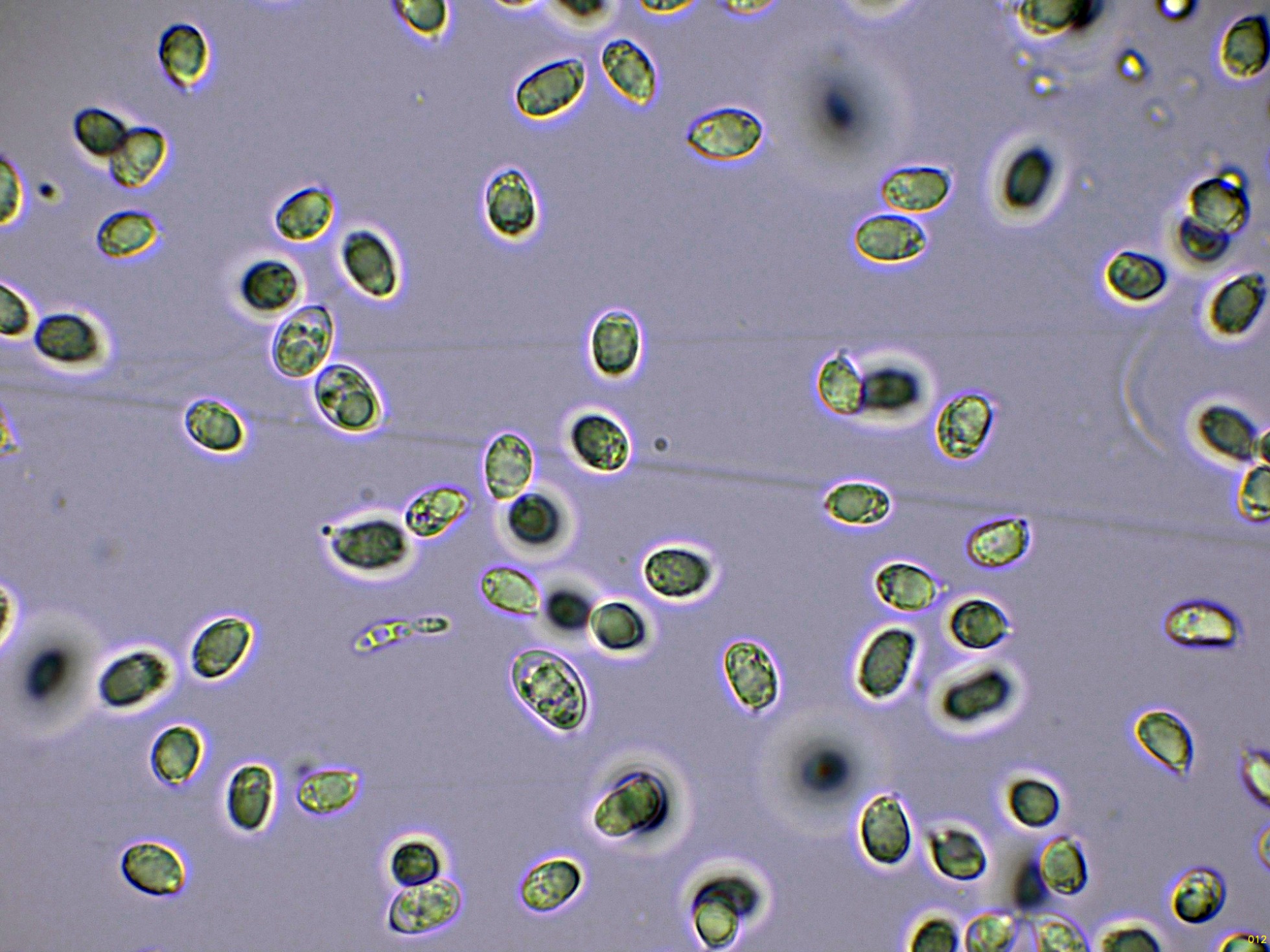 Estas esporas en distintos medios, con unas medidas sin contar la ornamentación de: