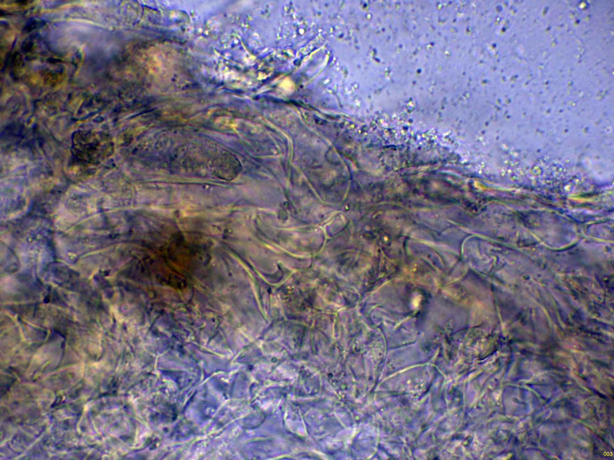 Las hifas de la subpellis, estas hifas ya más hialinas: