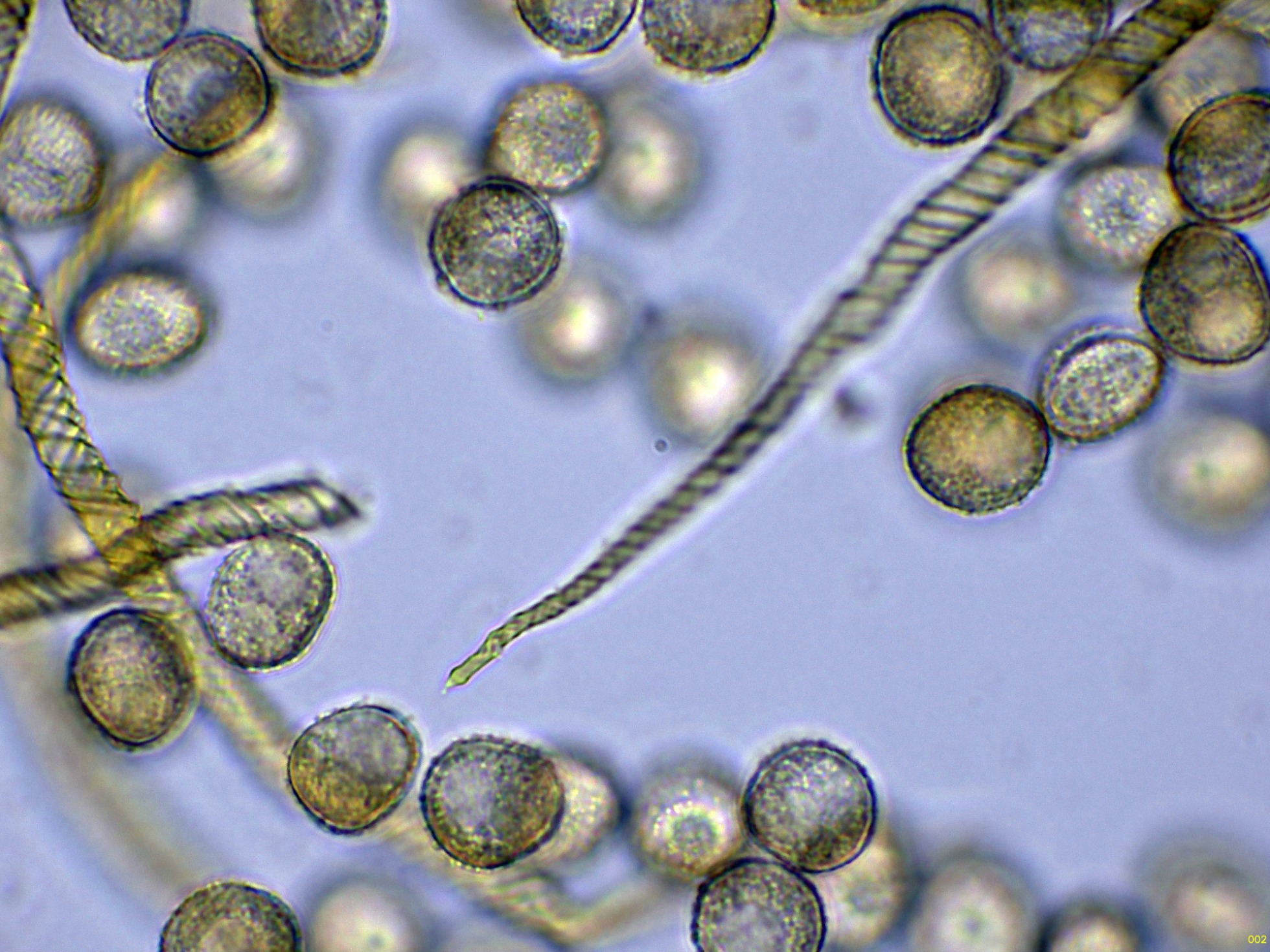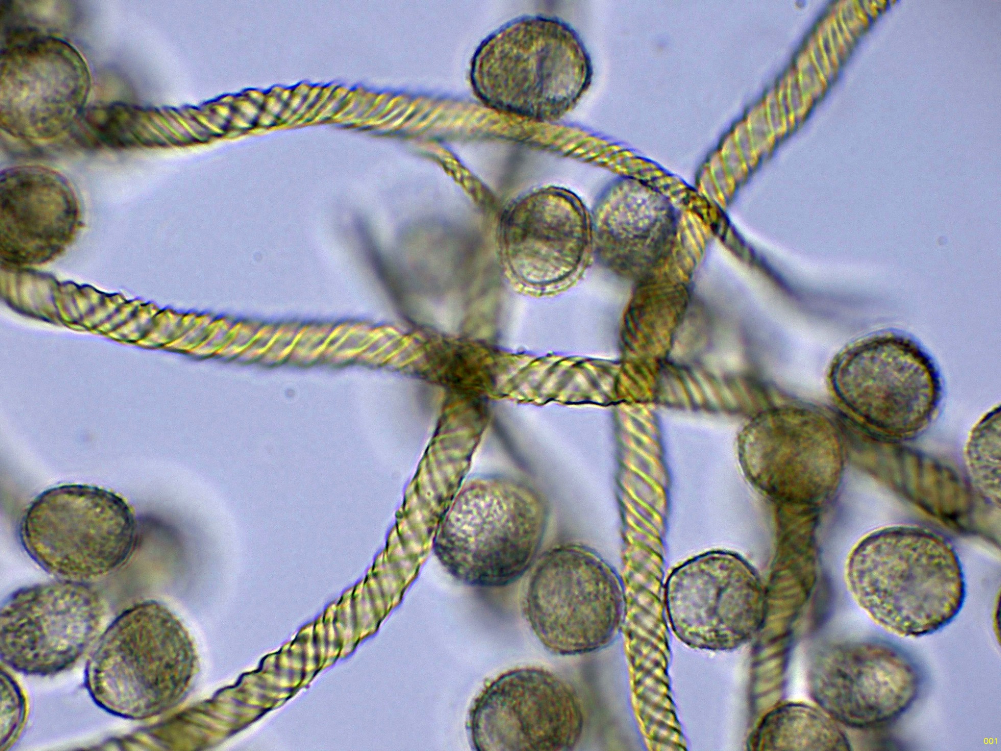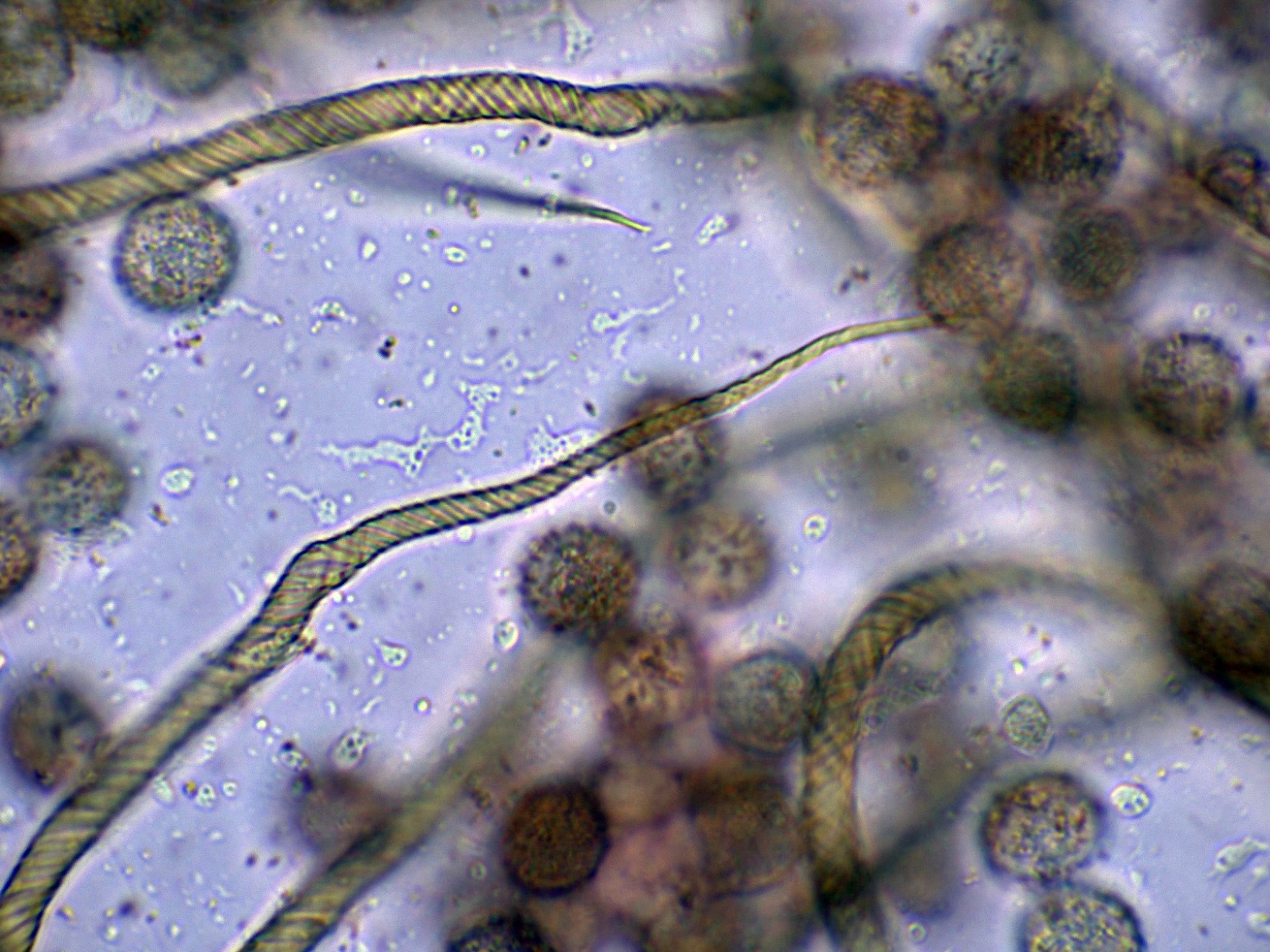 Las hifas de la suprapellis en agua, con pigmento intracelular ocráceo: