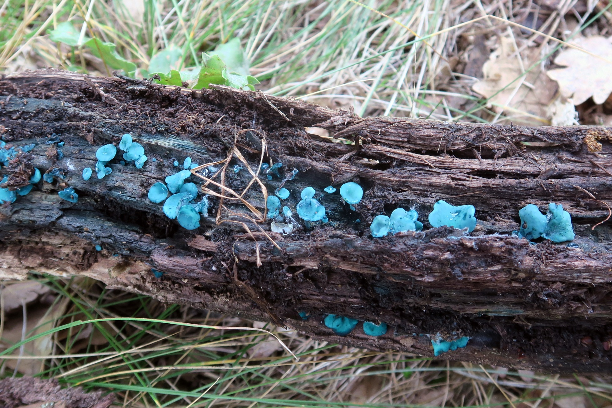 Fotogénica como siempre, la más que probable Chlorociboria aeruginascens: