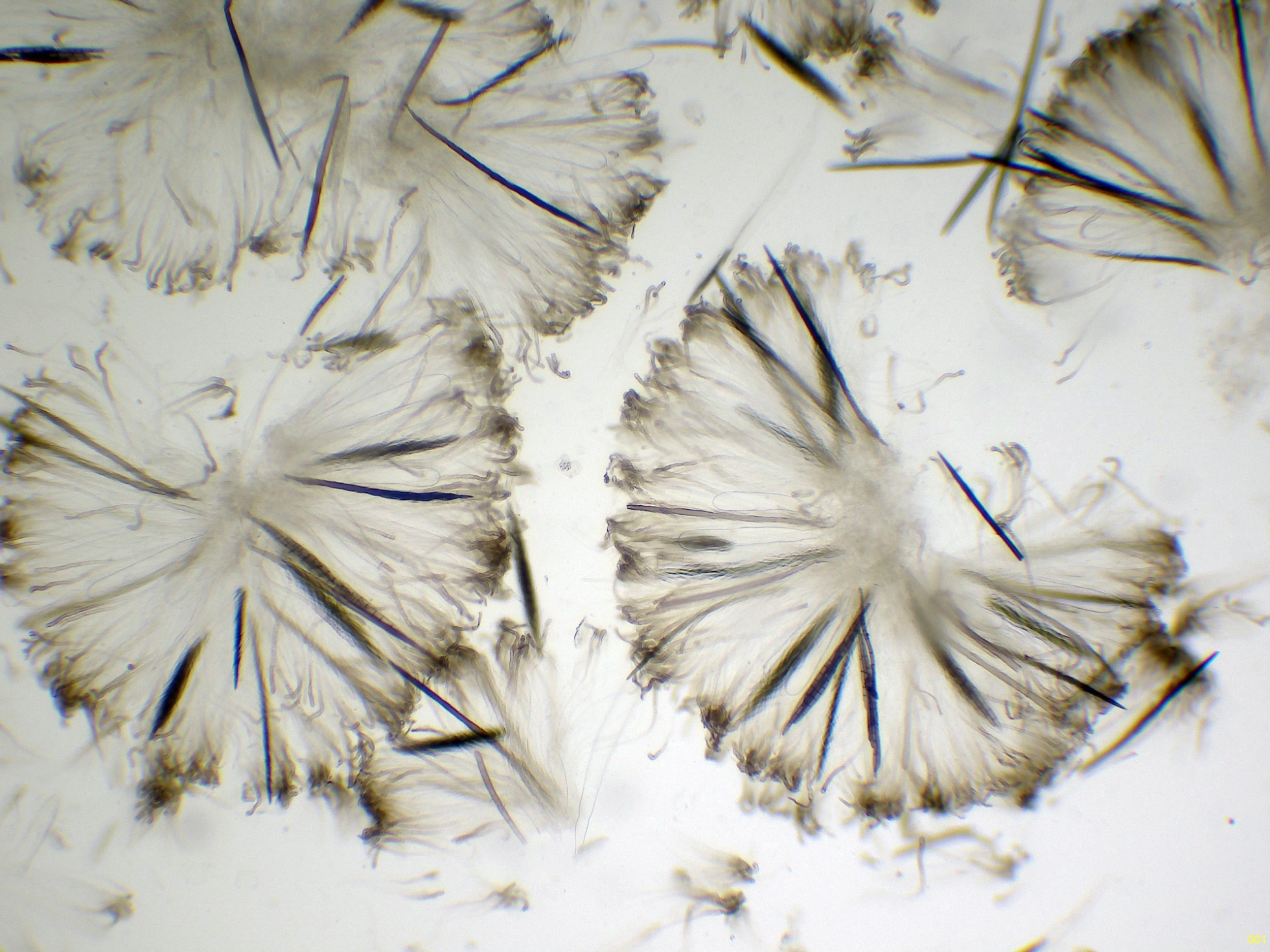 Las paráfisis a 1000 aumentos en solución de Rojo Congo diluido: