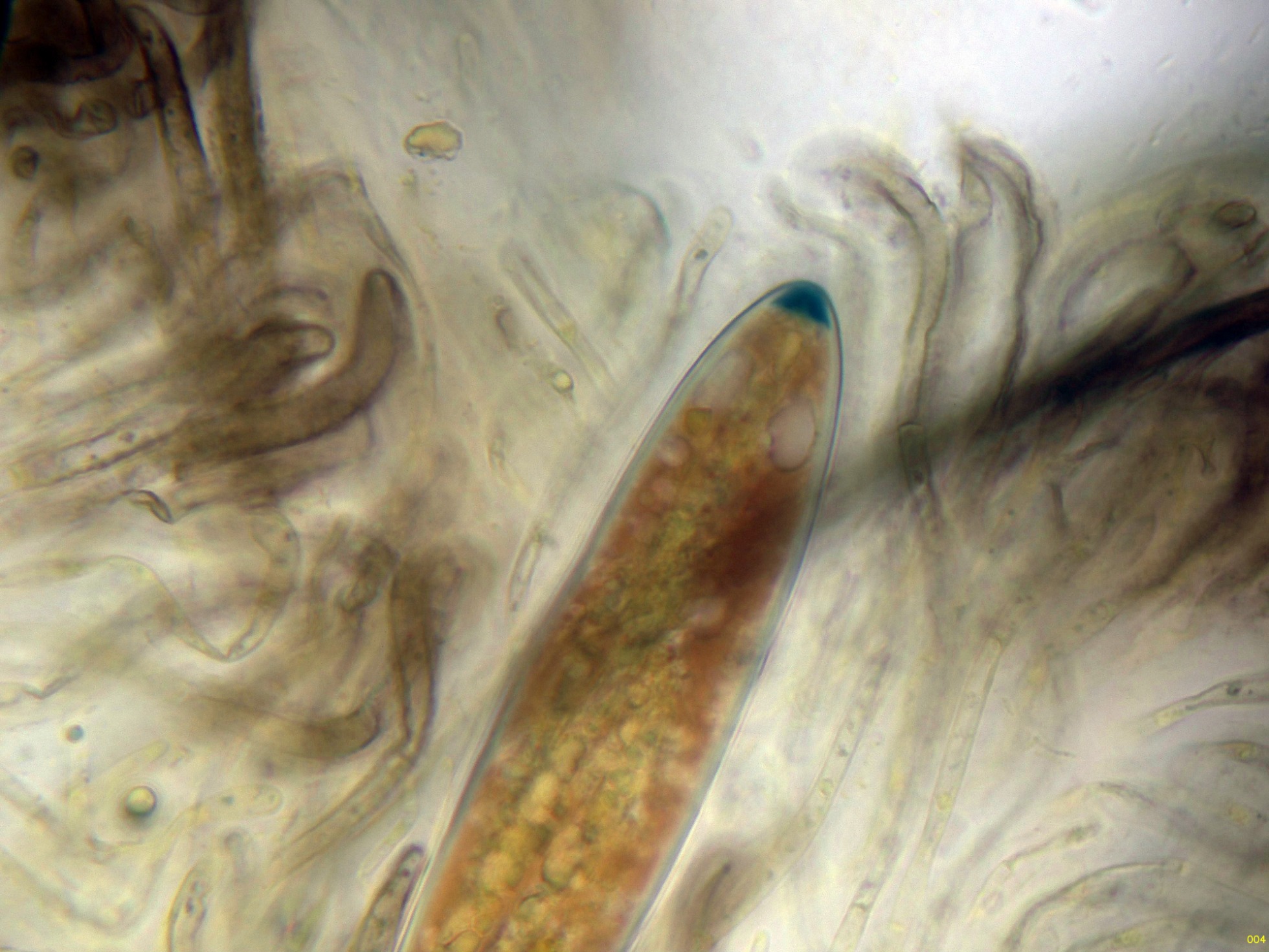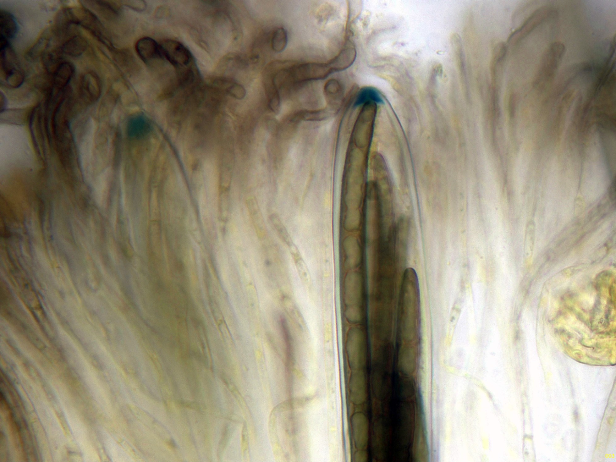 Ascos y paráfisis en Lugol a 400 aumentos: