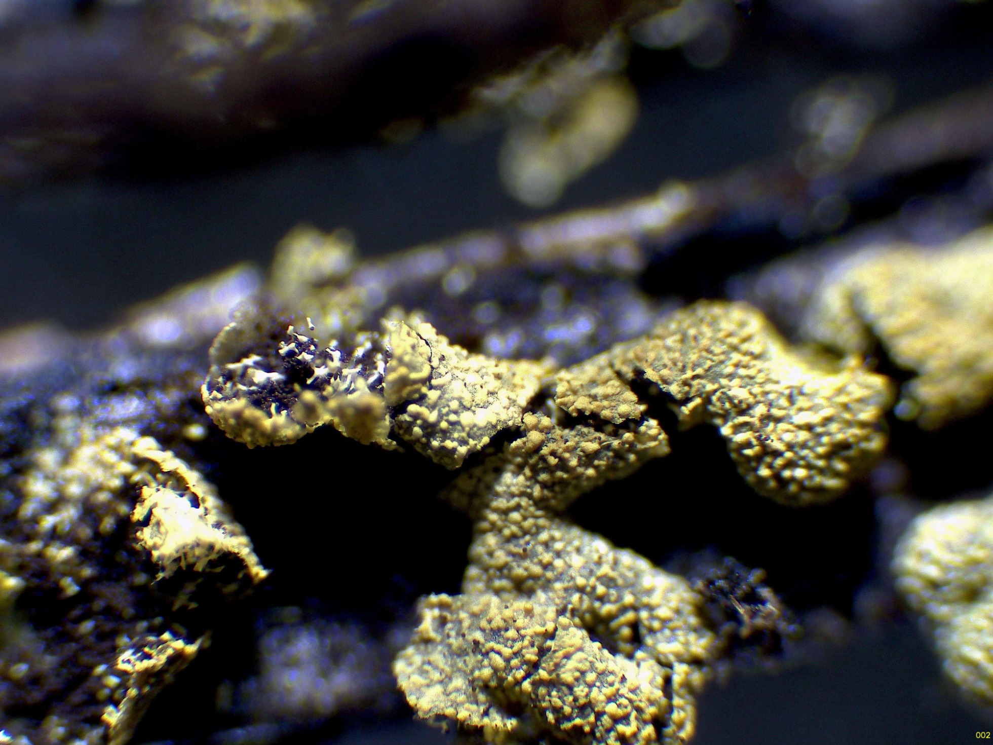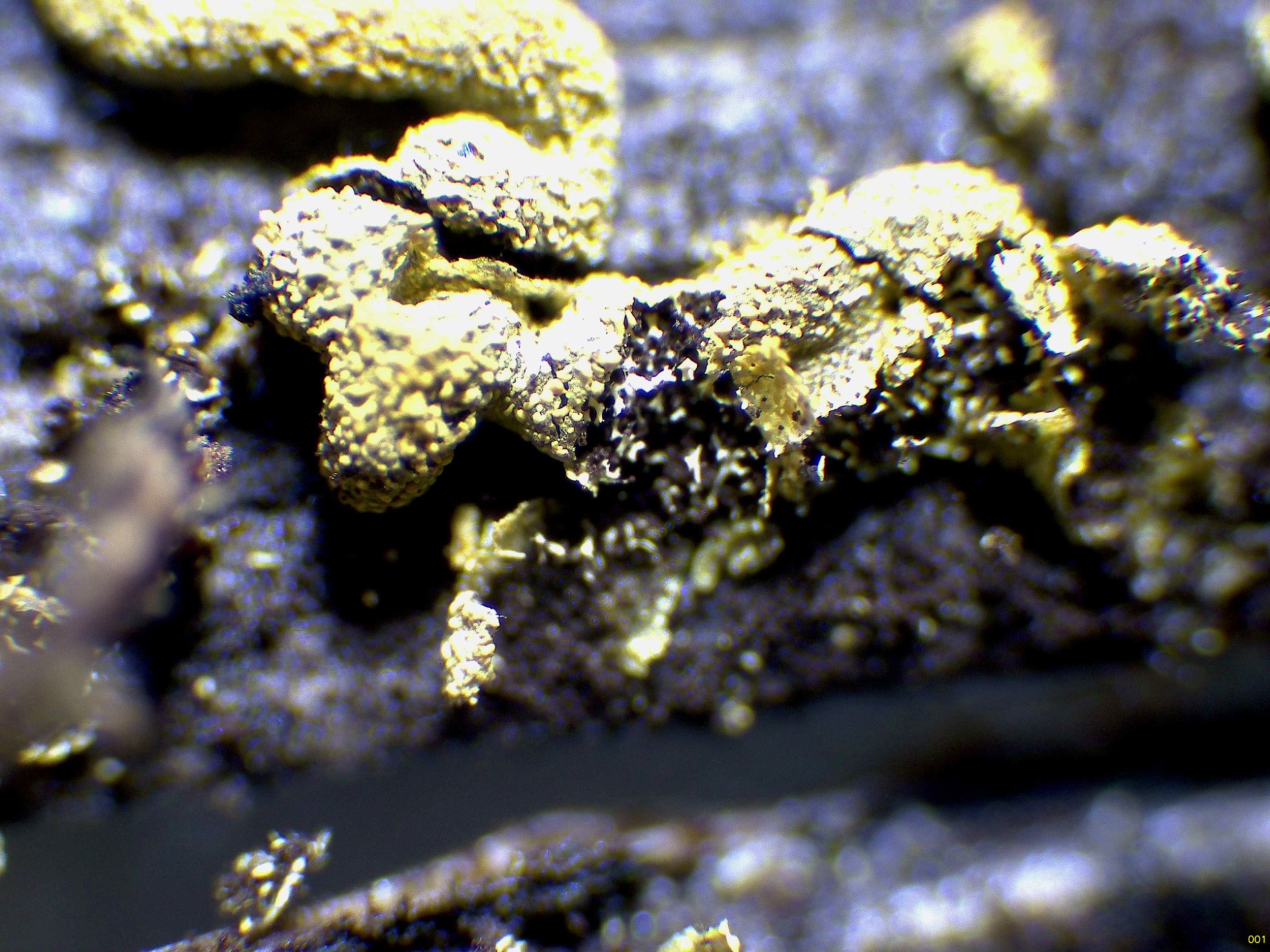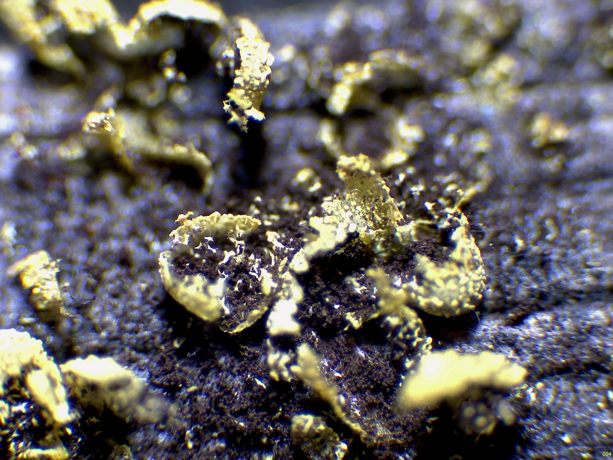 Los esporocarpos a 40 aumentos, en los que en su interior ya se puede intuir el capilicio (de color blanco):