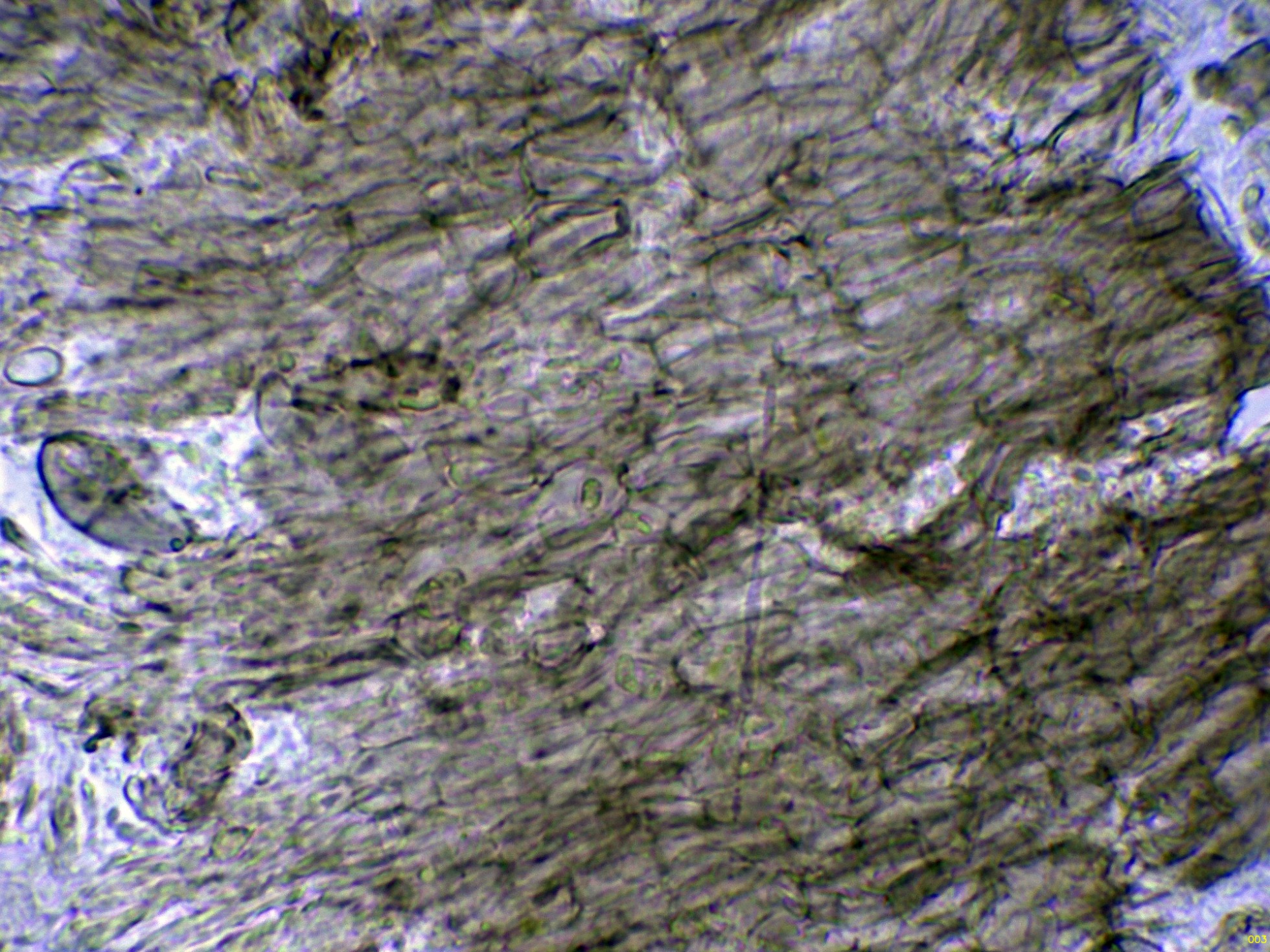 Hifas del excípulo de textura globoso-angular, las hifas del excípulo en reactivo de Melzer: