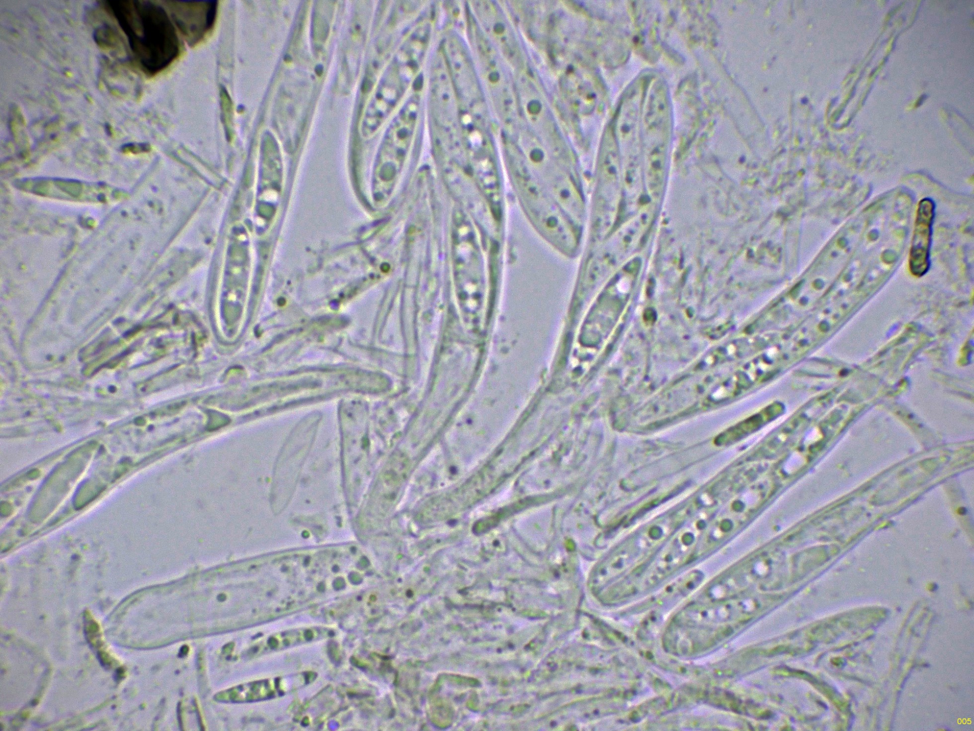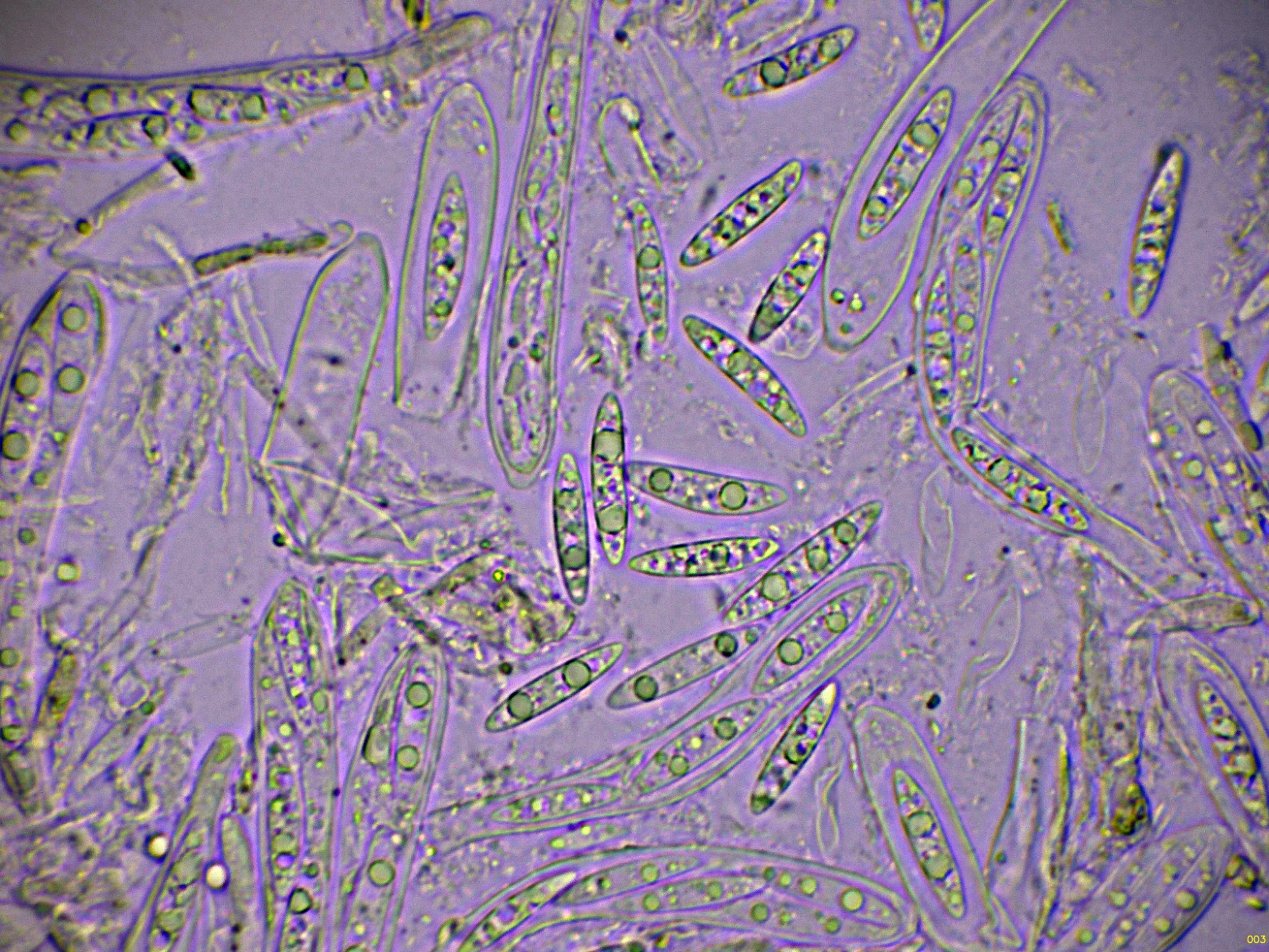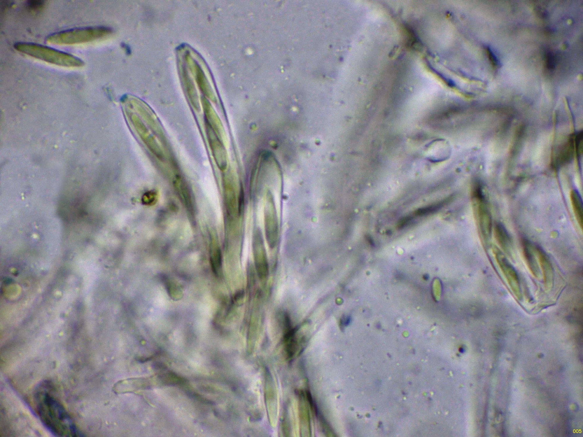 Ascos octosporóricos, con una reacción amiloide de su diminuto aparato apical, y aunque es difícil observarlos en algunos de estos ascos, me pareció ver uncínulos.