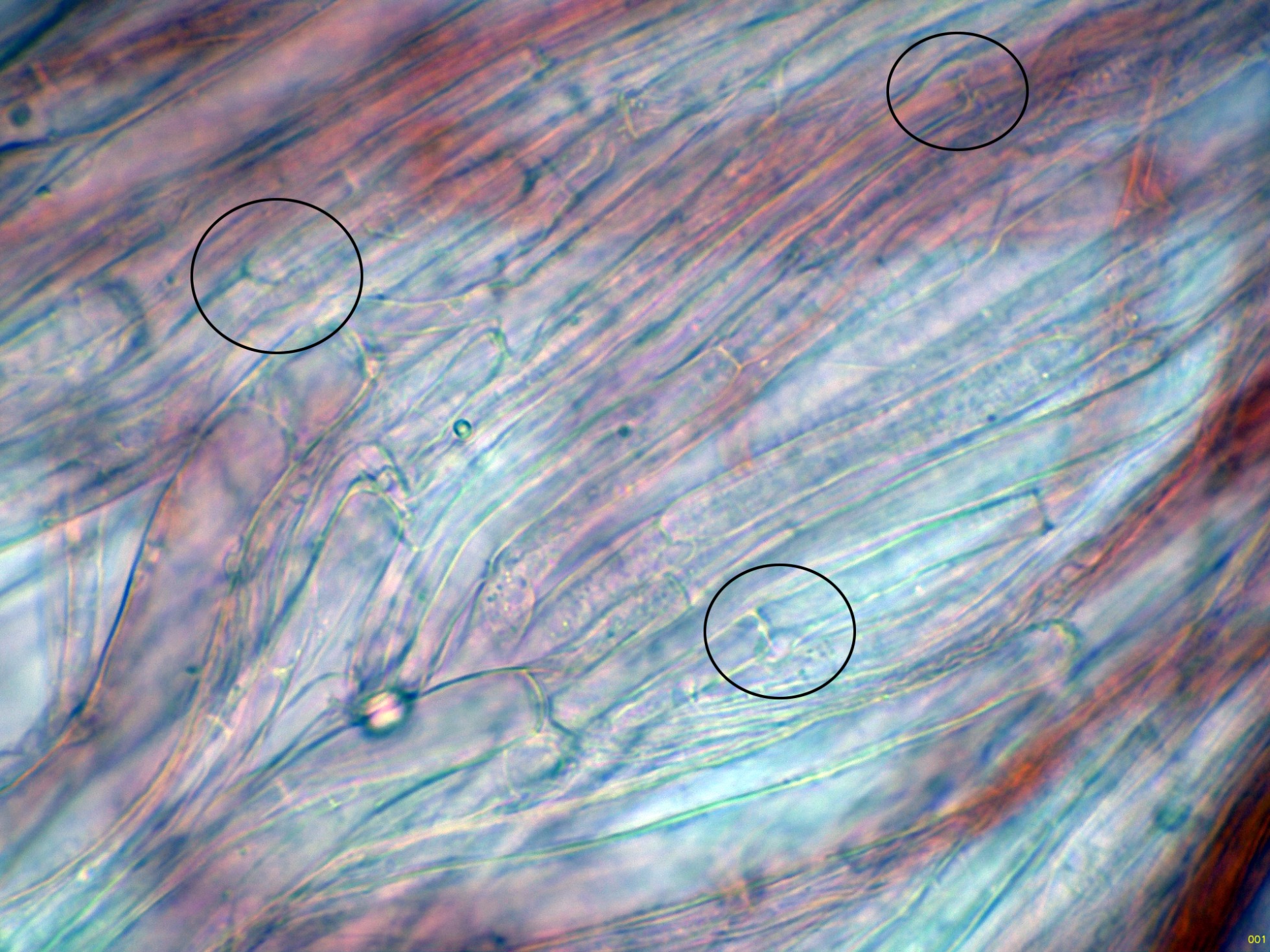 Las hifas del estípite, dispuestas paralelamente y fibuladas: