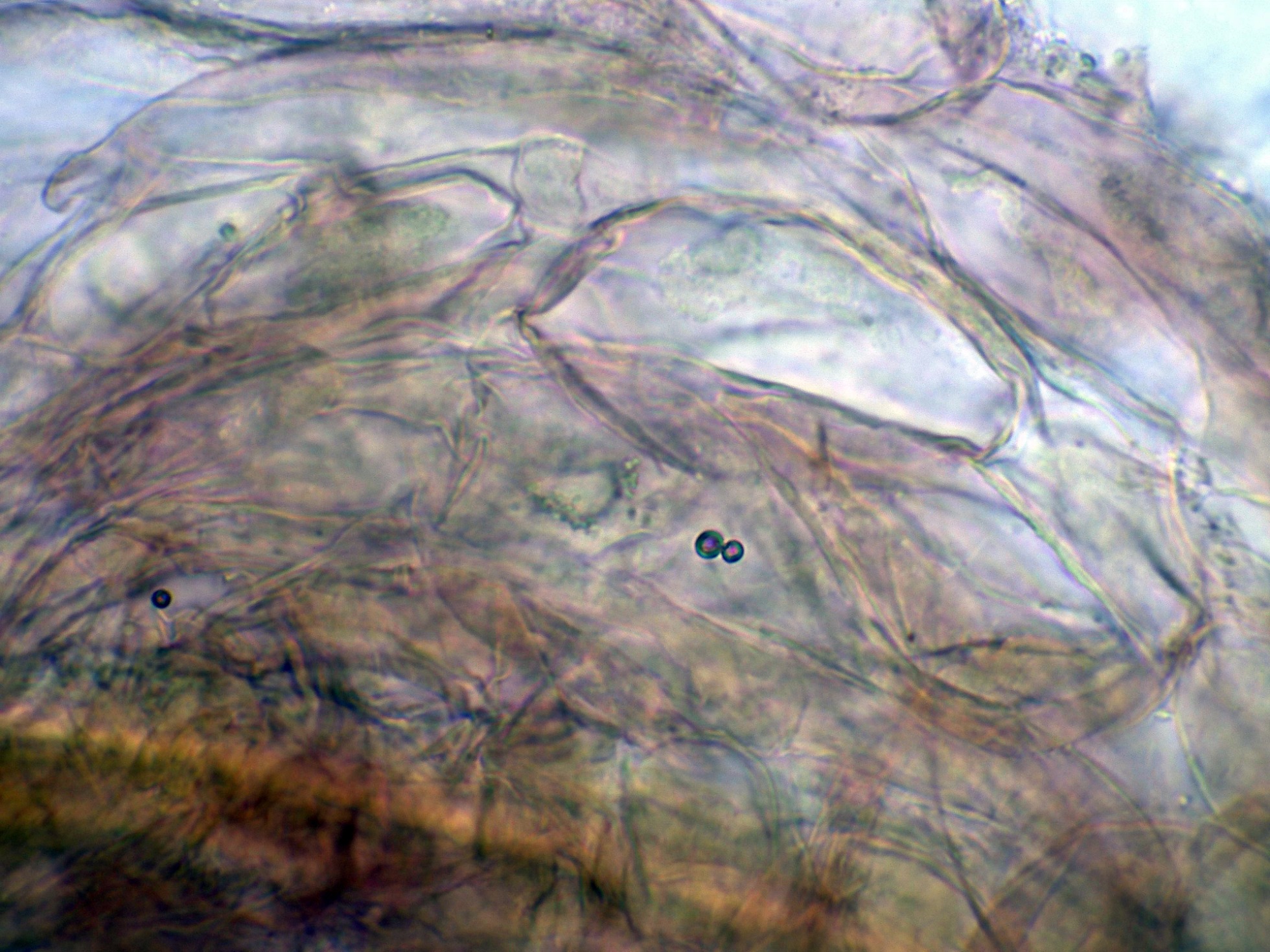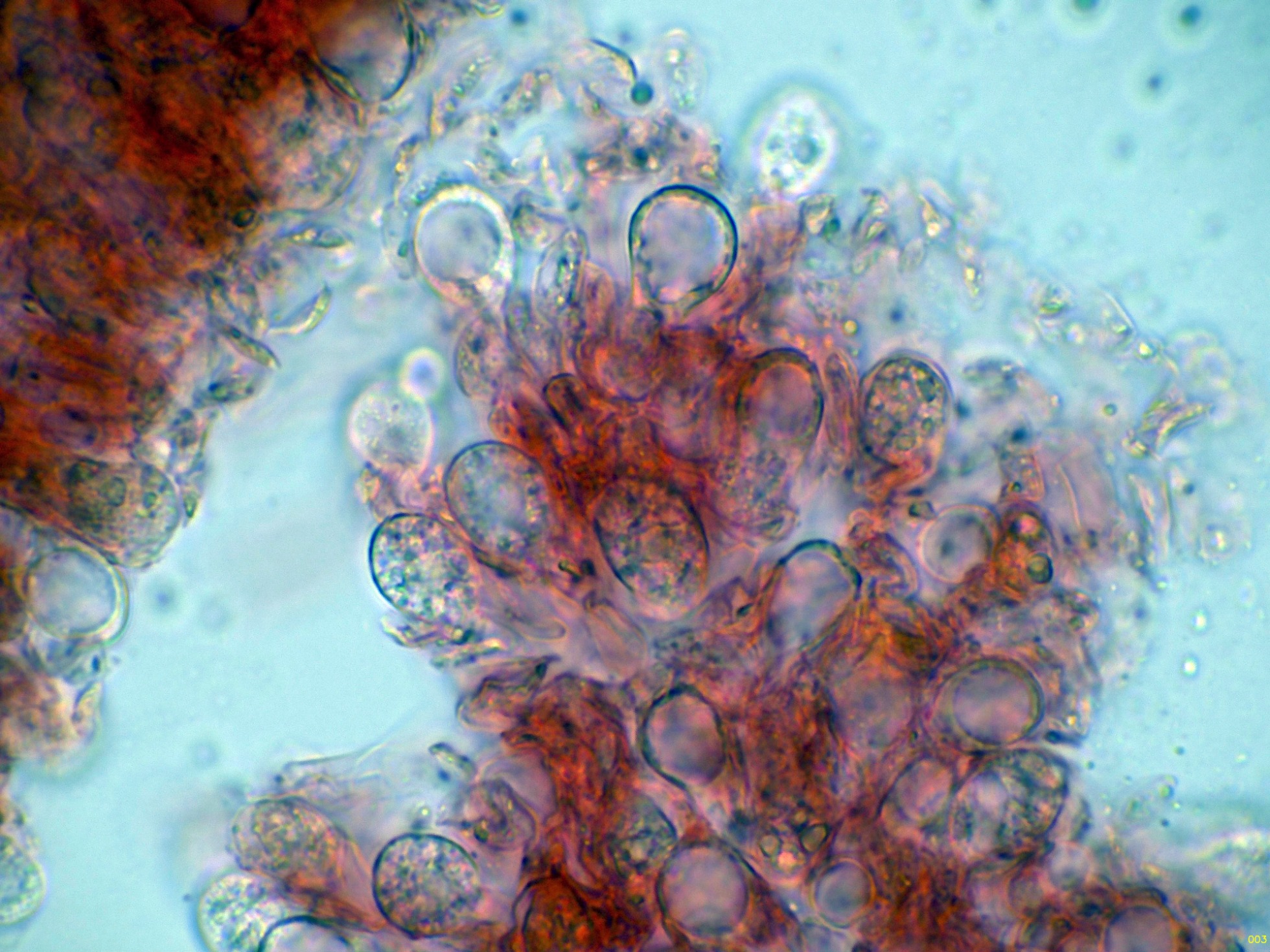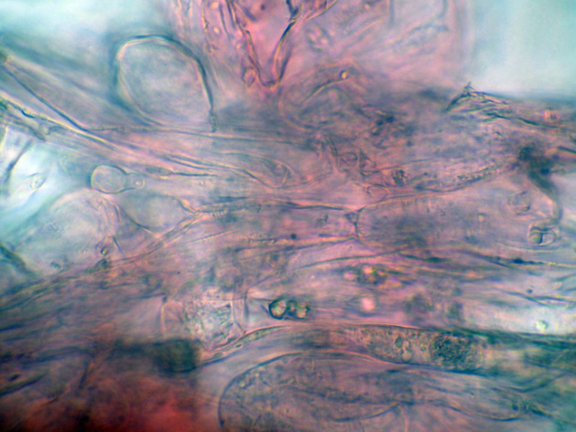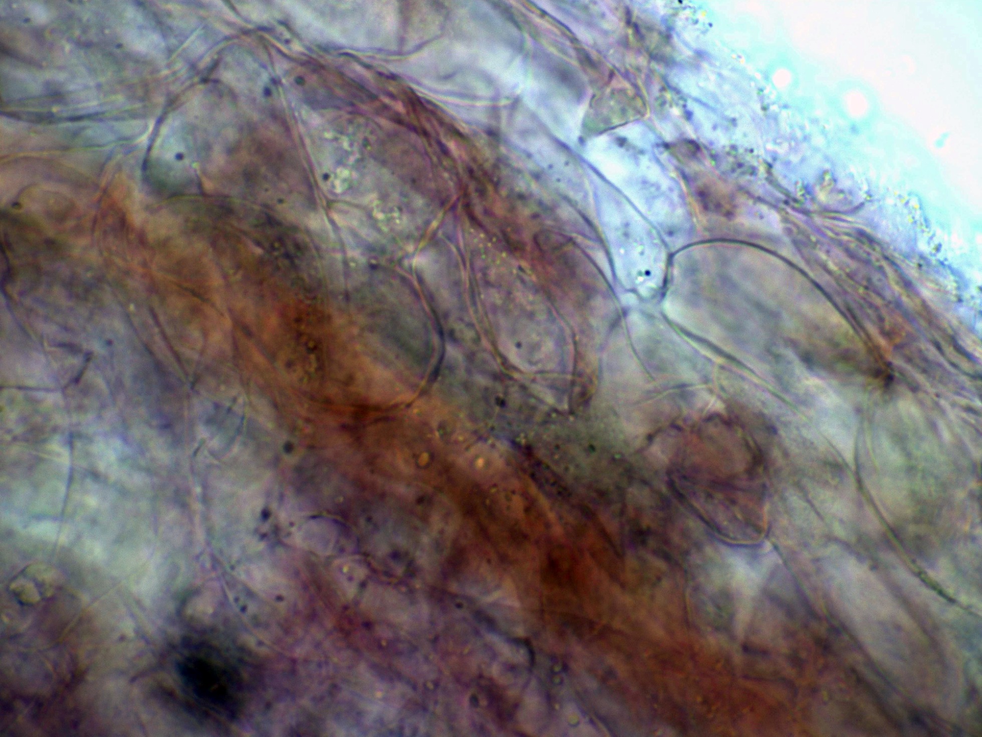 Las hifas de la suprapellis en Reactivo de Melzer, con un comportamiento débilmente dextrinoide: