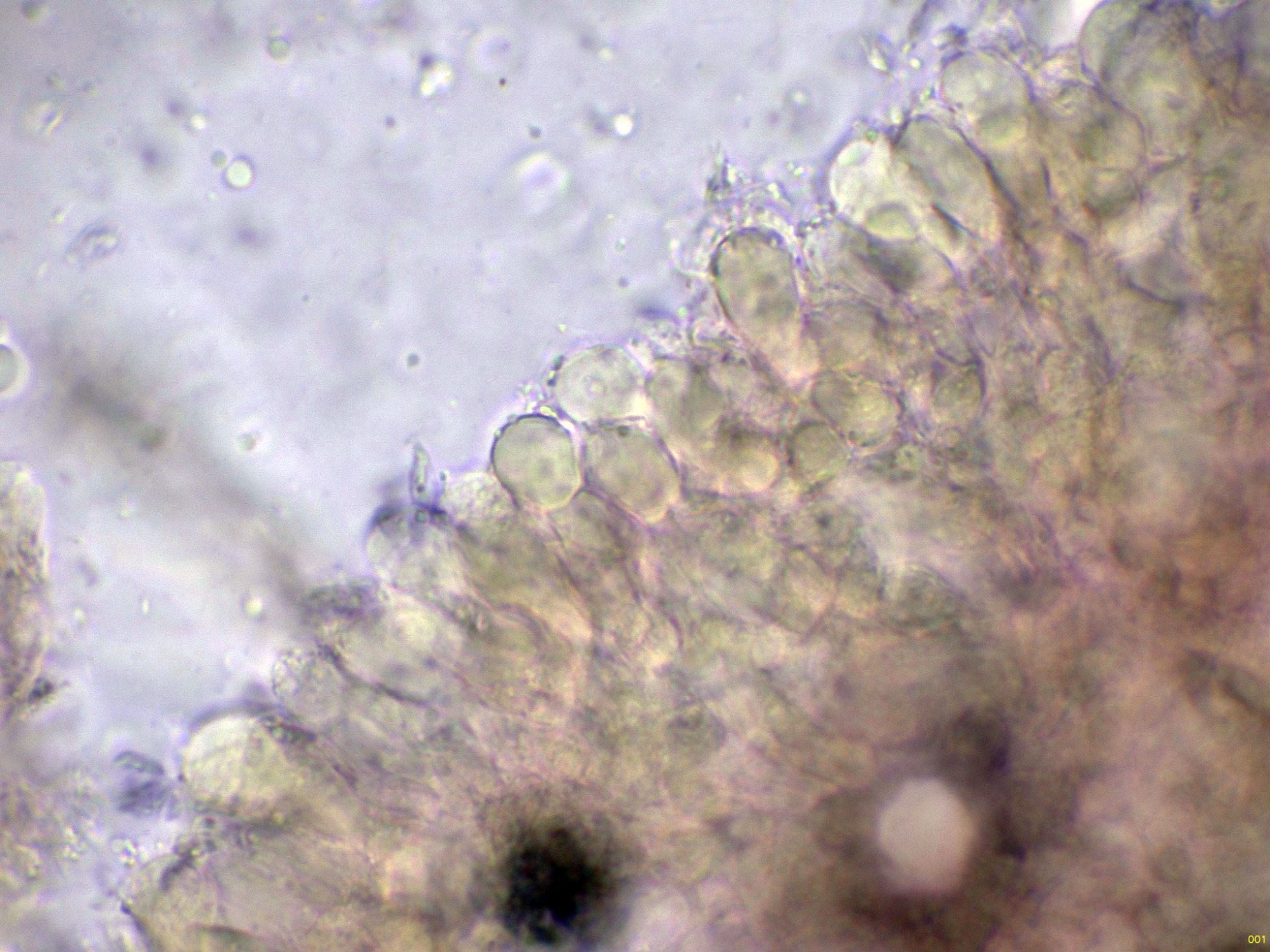 Pongo una captura de imágen con la microscopia que siguiendo el criterio de Aronsen, debería presentar la Mycena galopus: