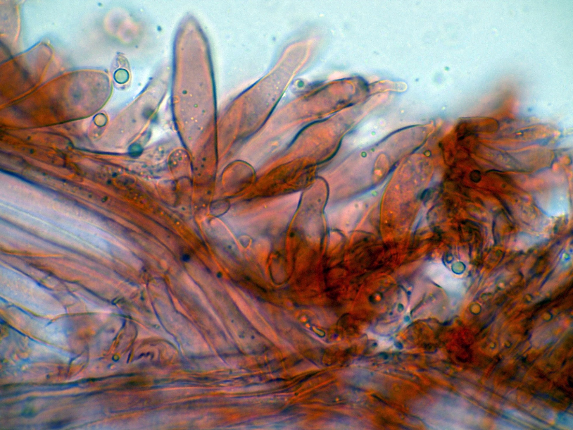 Cualocistidios abundantes, en especial en la parte alta del pie.