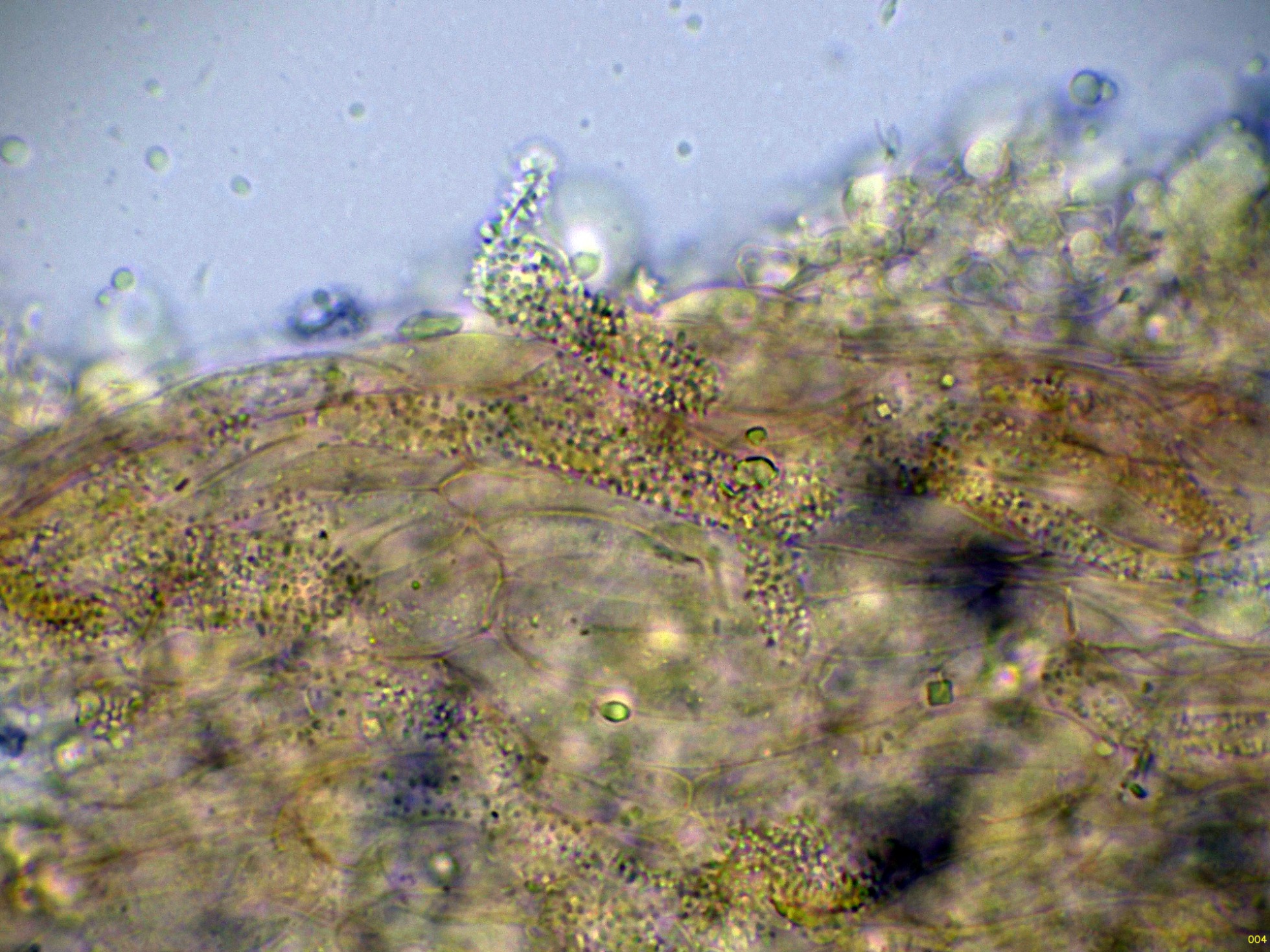 Los basidiomas ya un poco pachuchos a 20 aumentos: