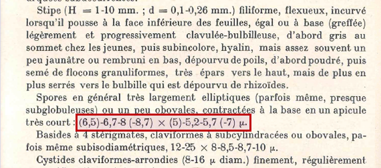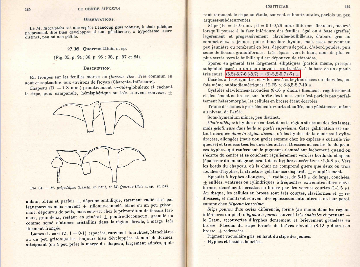 Añado una captura de pantalla de la descripción de la Mycena quercus-ilicis del documento de Kühner: