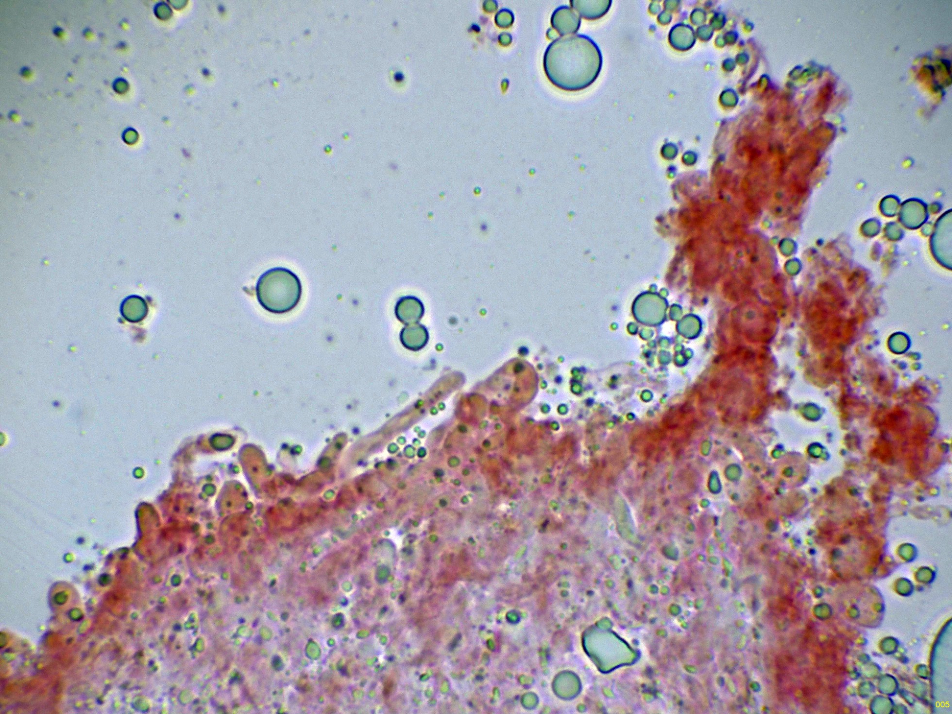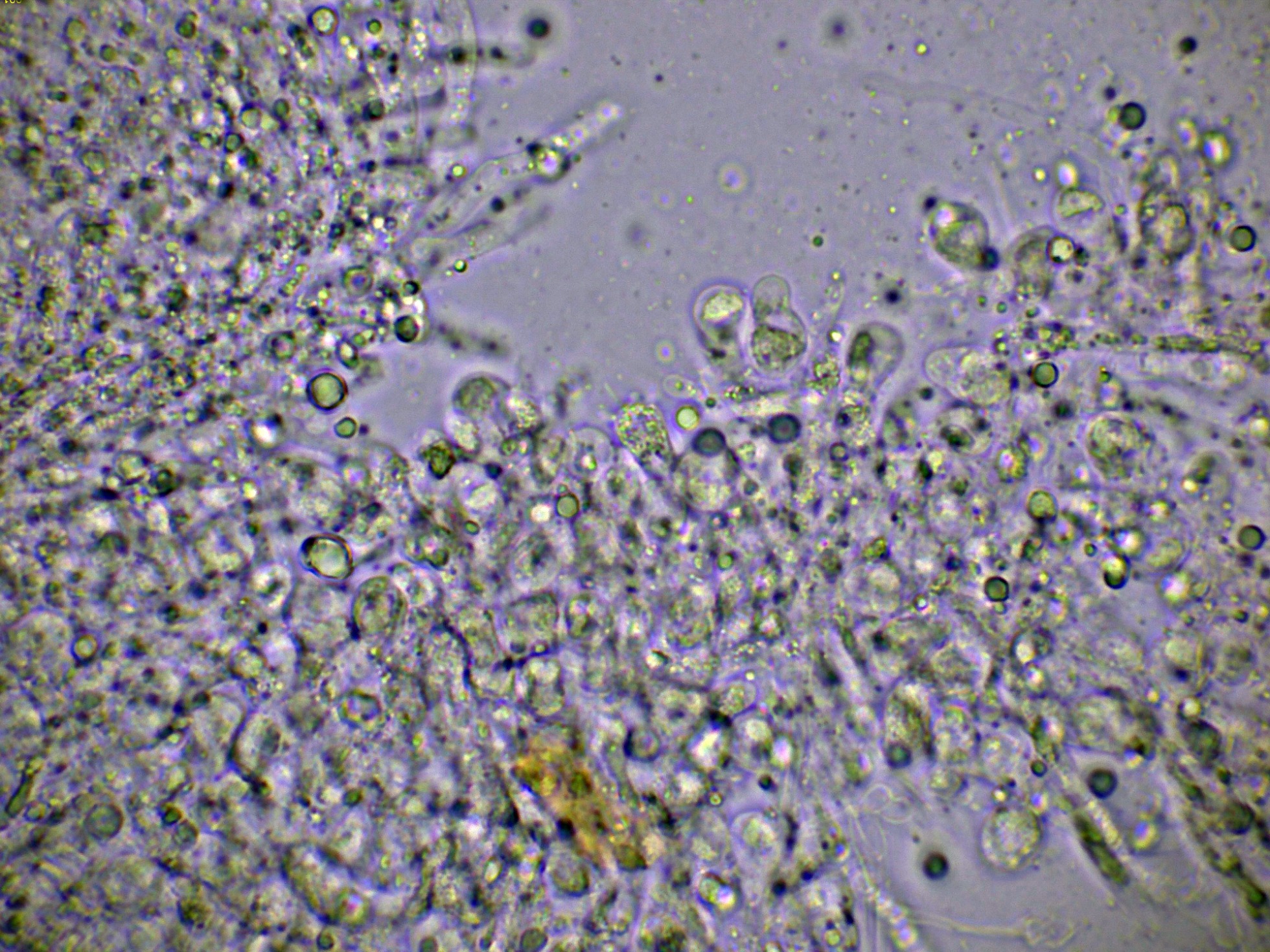 Superficie del basidioma a 20 aumentos: