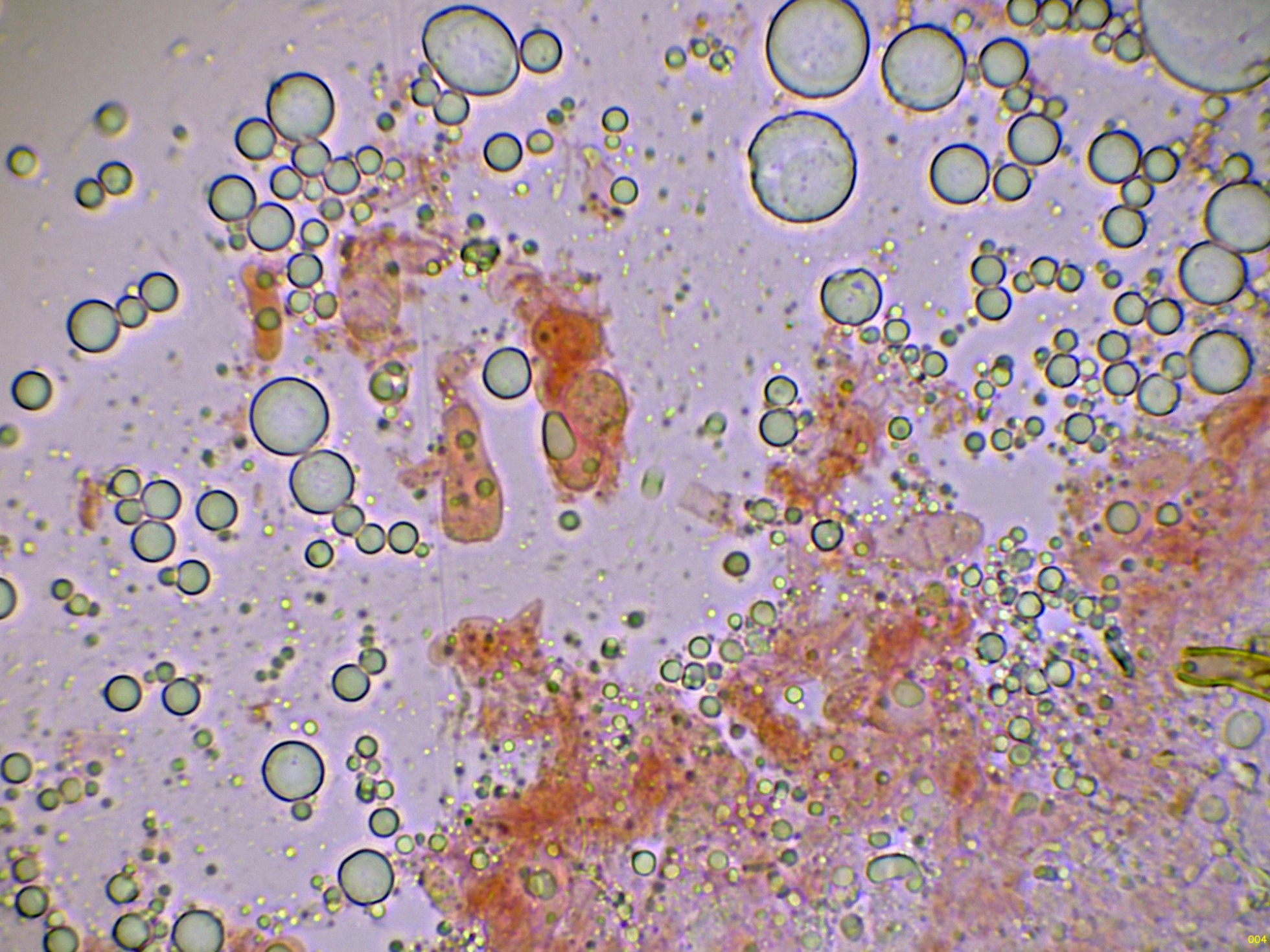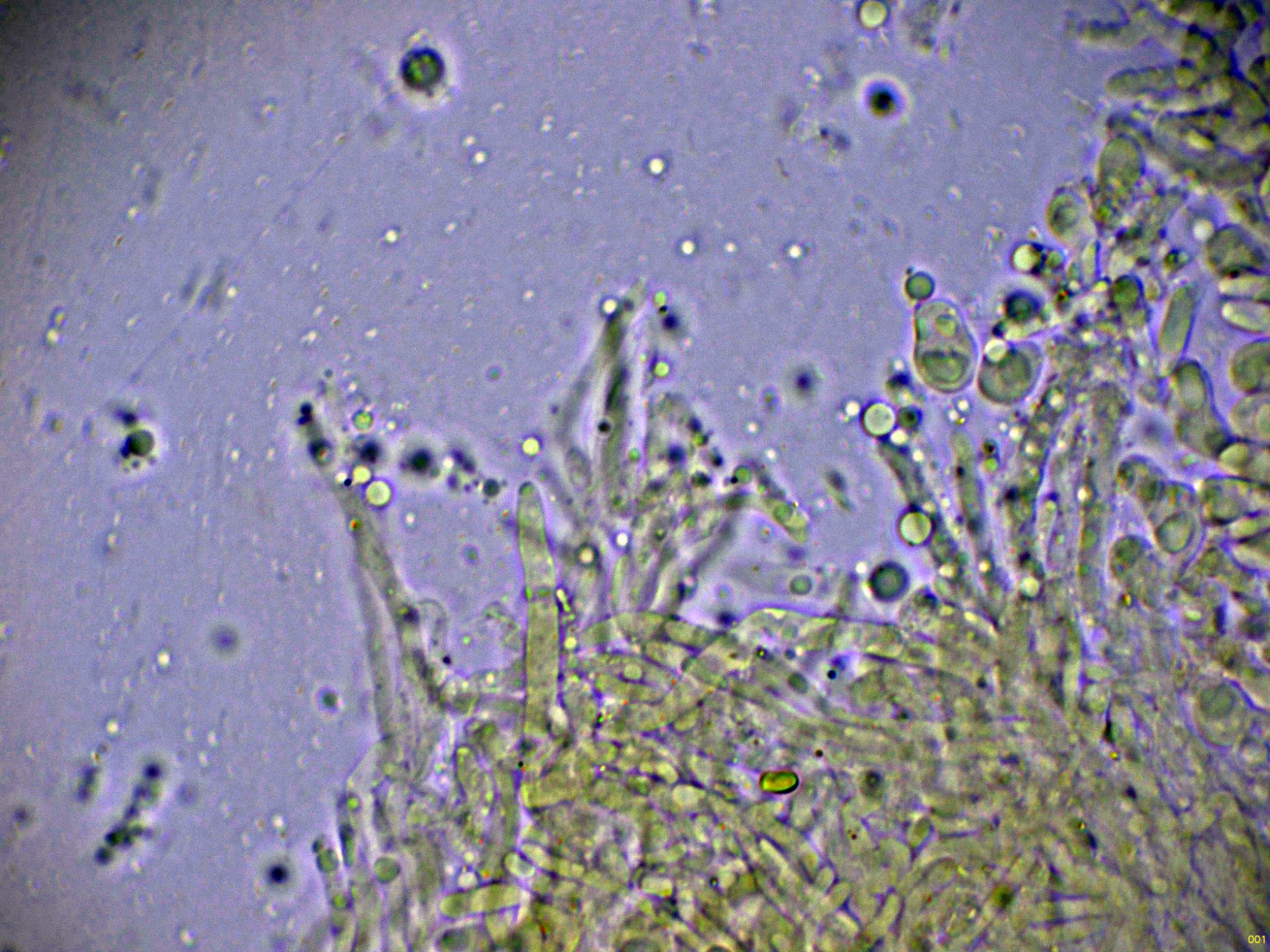Los basidios en agua, estos basidios con unas medidas de (16.3) 16.9 - 22.8 (24.2) × (4.6) 5.1 - 6.7 (7.1) µm.
