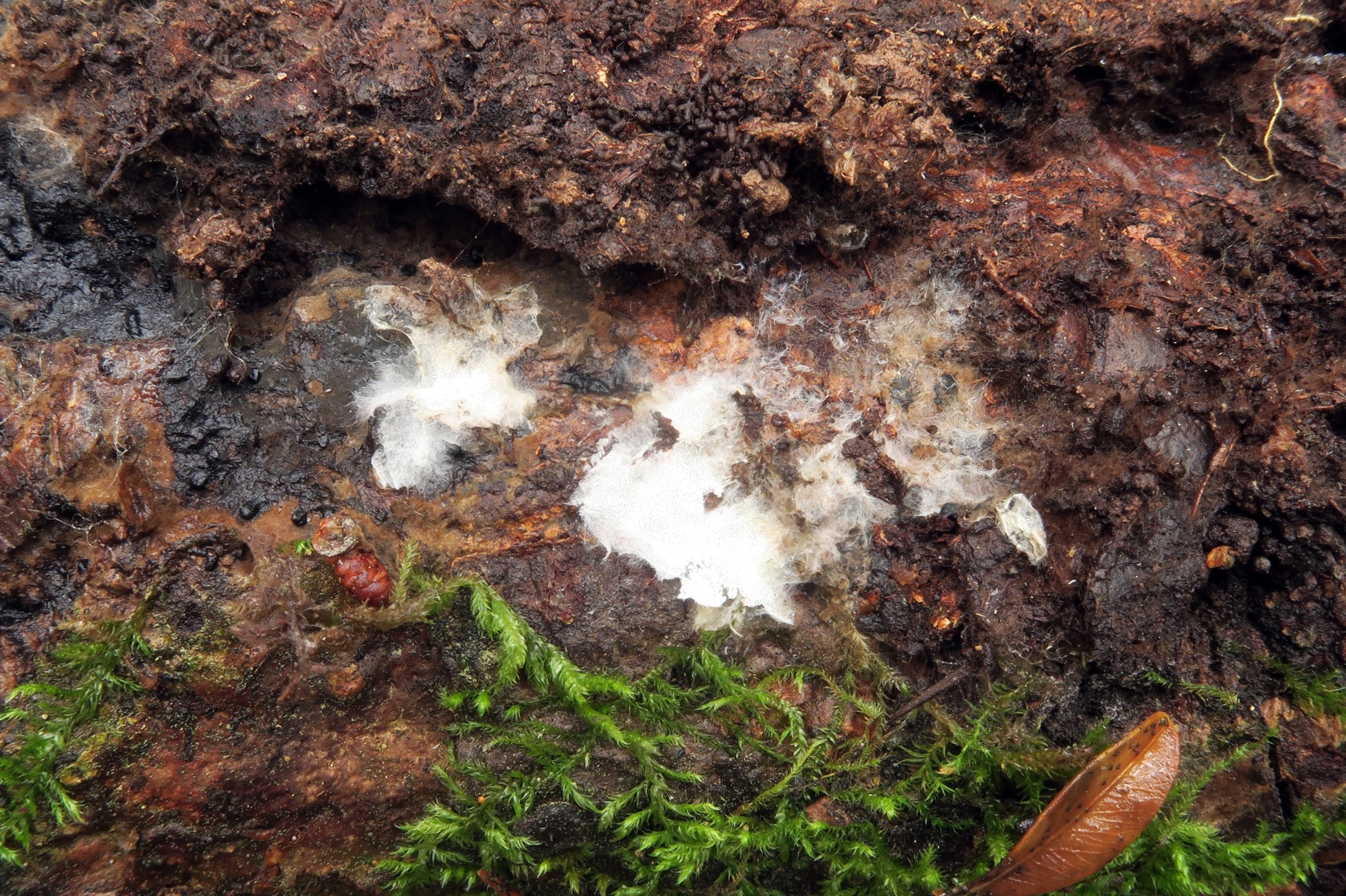 Un Corticial del 25 de diciembre pasado, apareciendo sobre un tronco tumbado de Pinus sylvestris, brotando por la parte que está en contacto con el suelo.