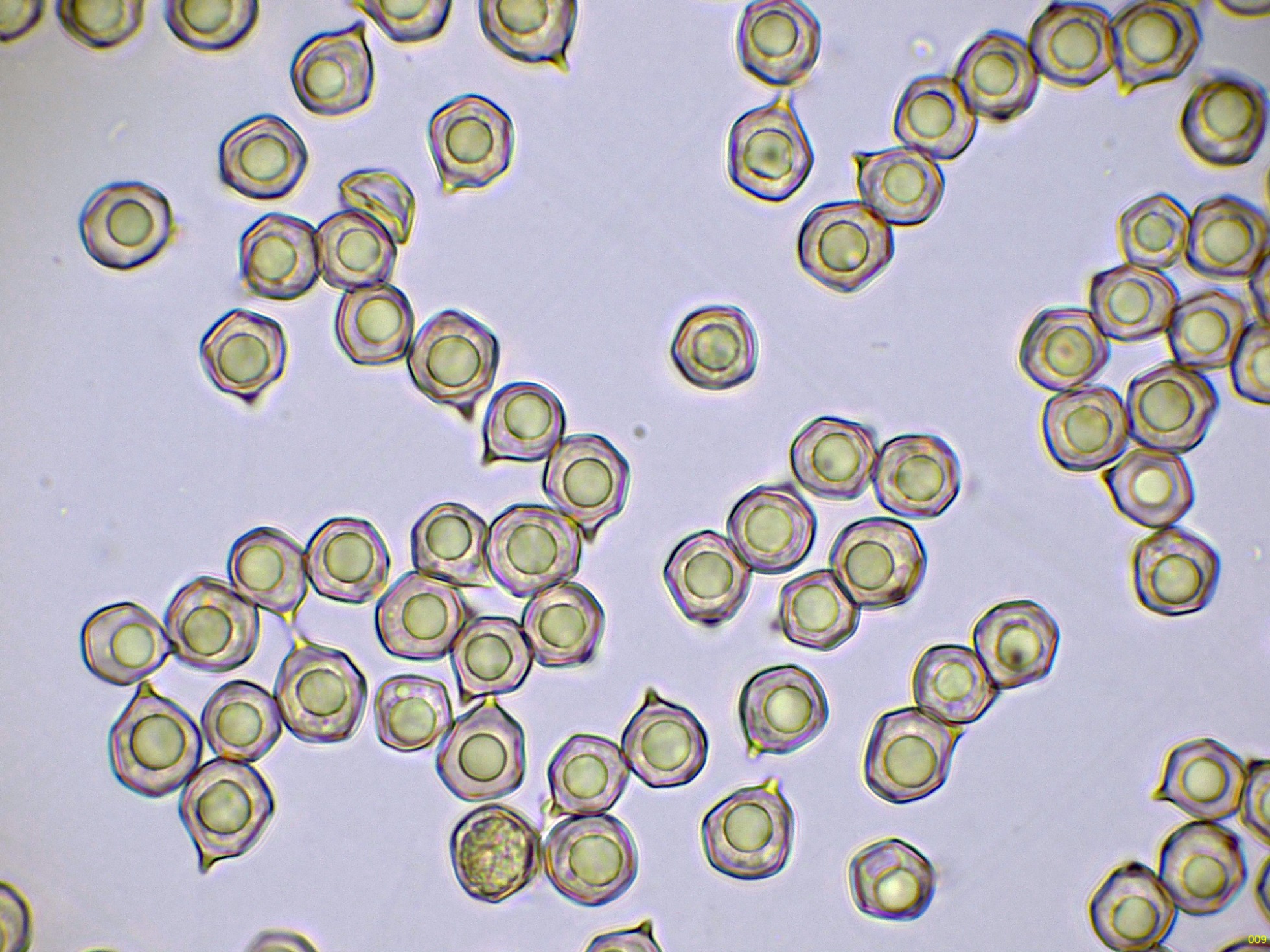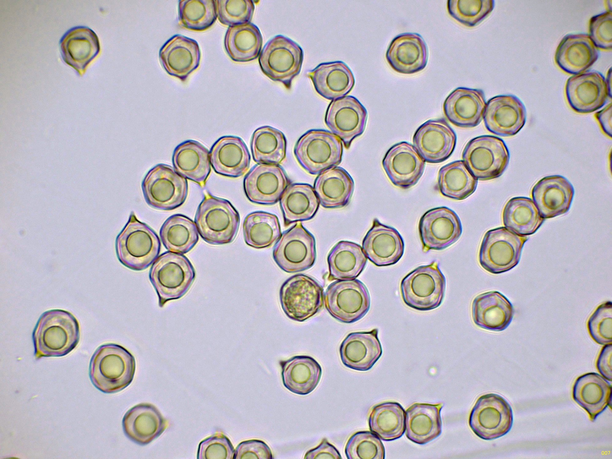 Esporas isodiamétricas, con 5 a 6 ángulos y unas medidas de estas esporas obtenidas por esporulación natural y en agua de: