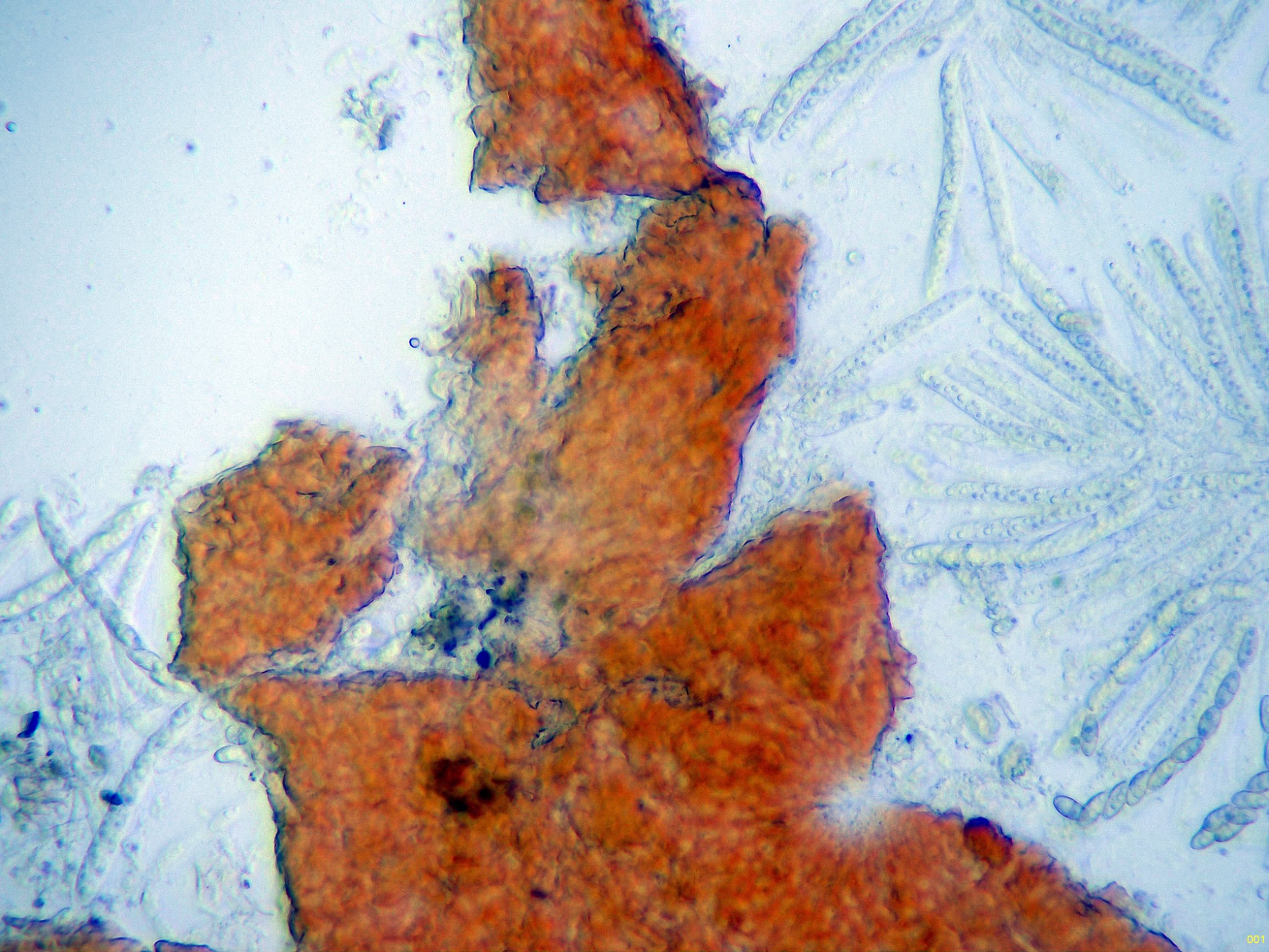 Hifas de la pared del peritecio en agua a 400 aumentos: