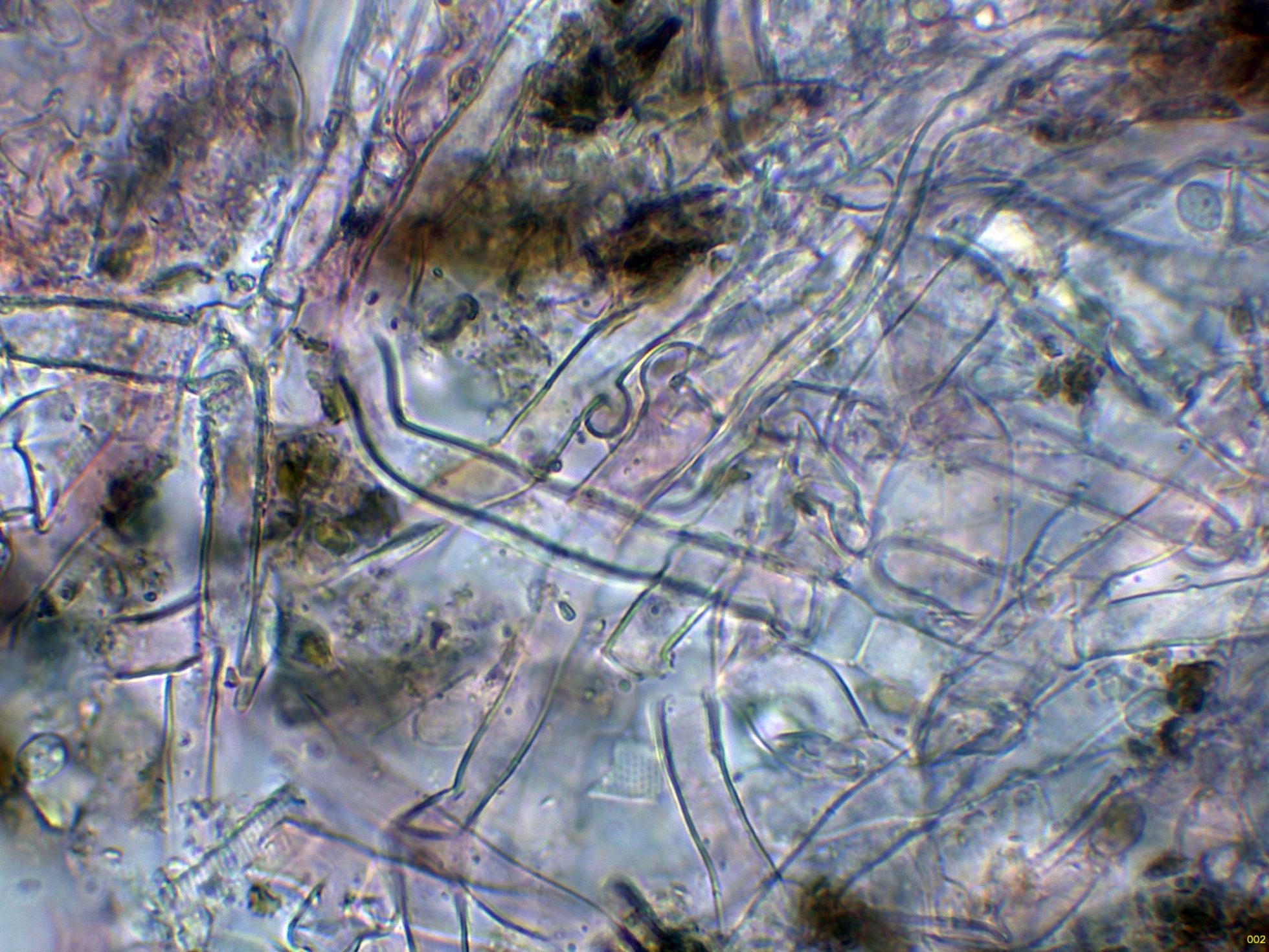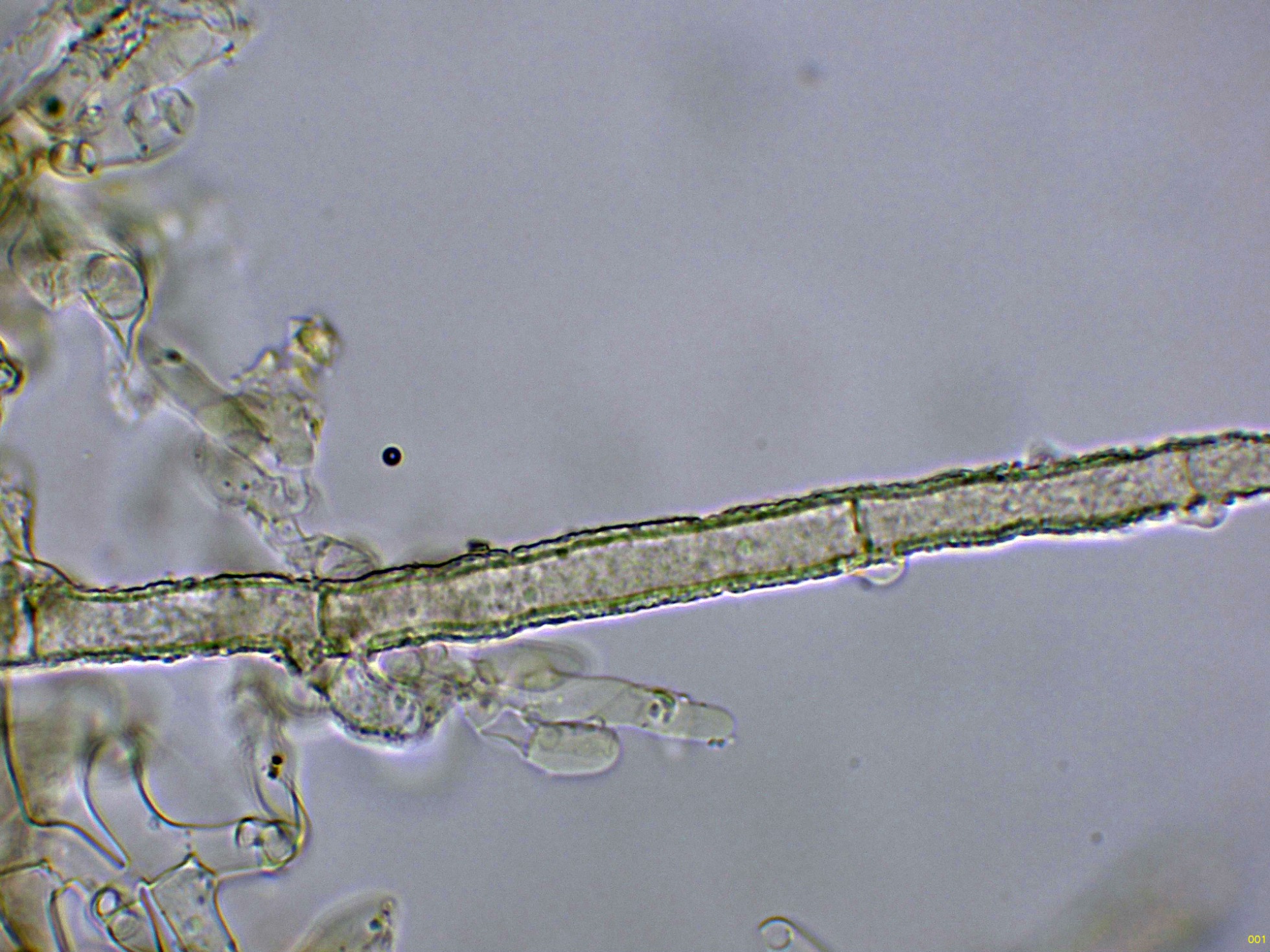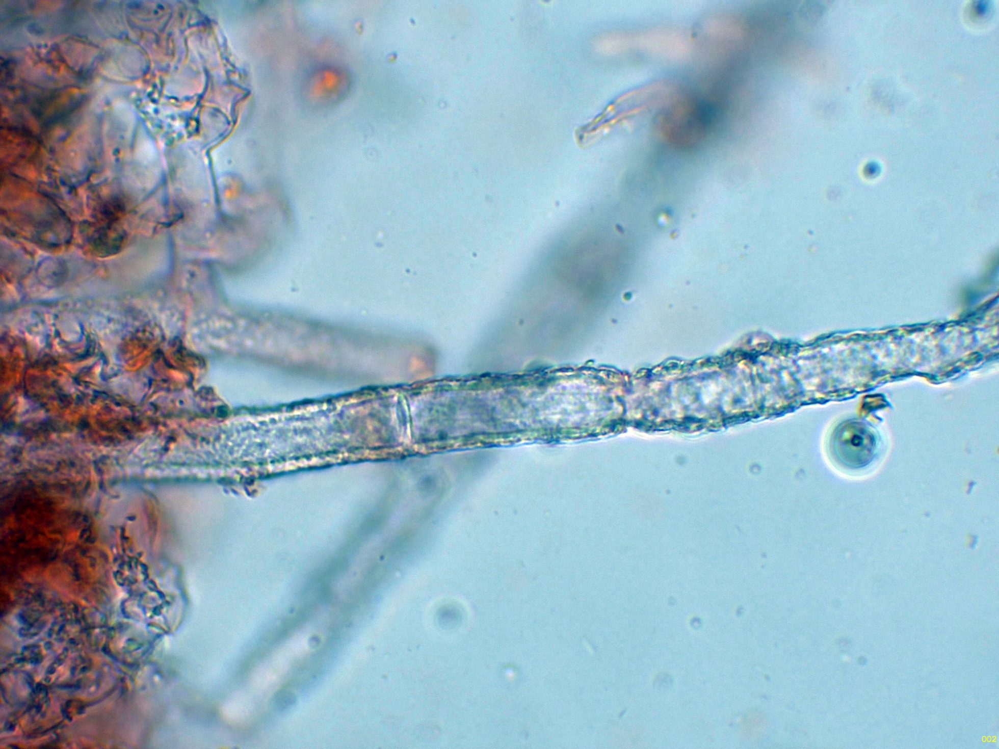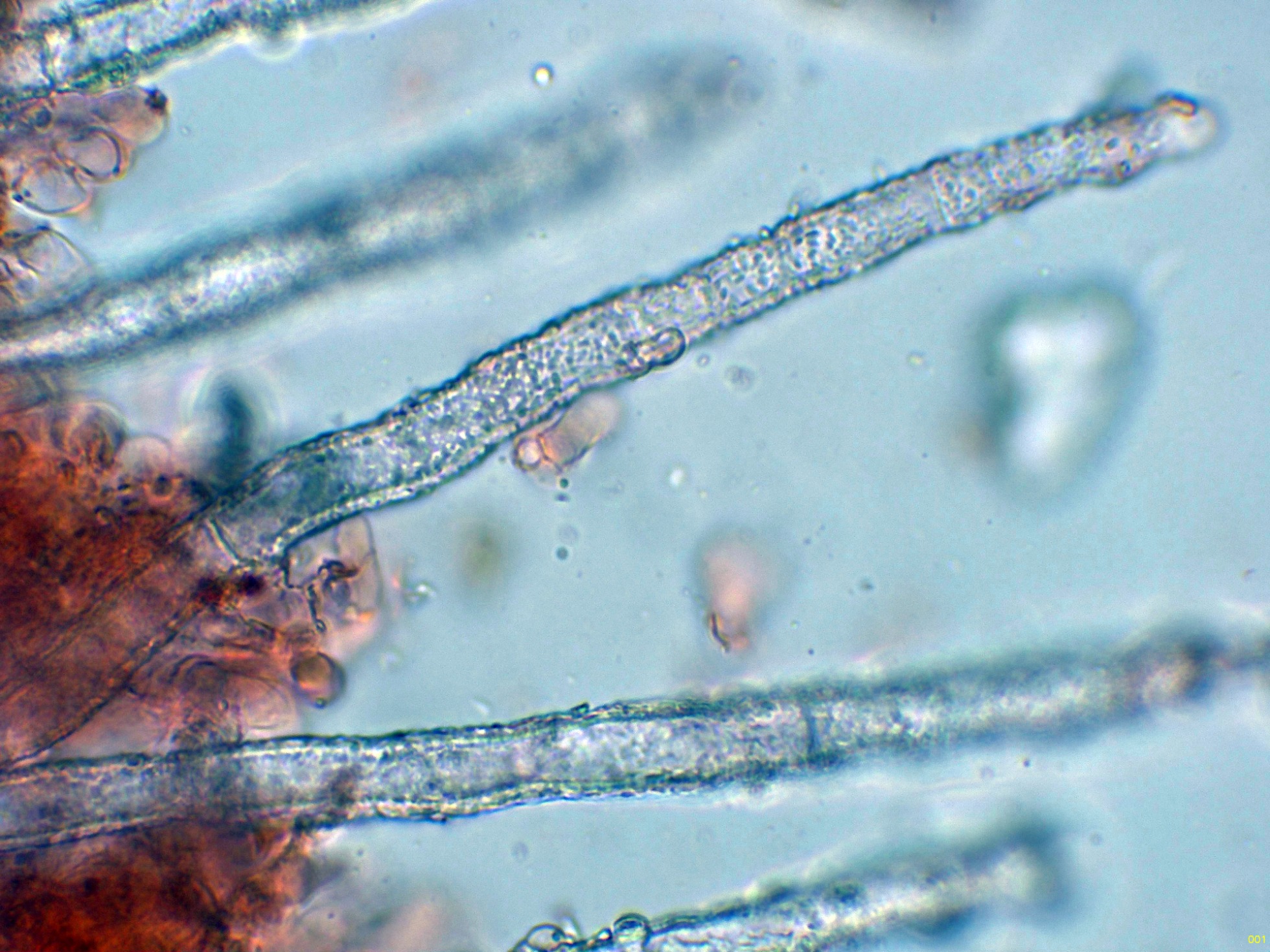 Las hifas subiculares que se corresponden con un sistema hifal monomítico, formado por hifas hialinas bastante anchas y fibuladas: