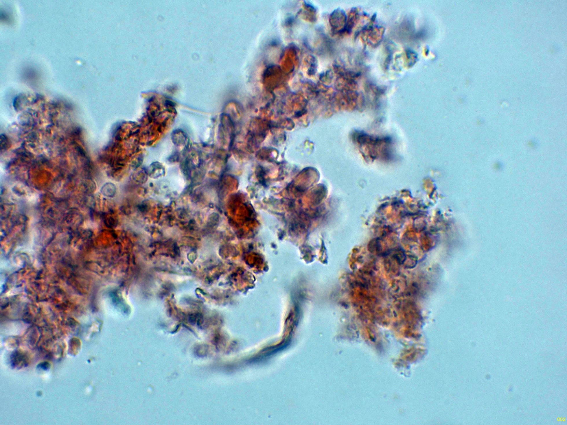 Las esporas en Reactivo de Melzer, sin ninguna reacción, inamiloides: