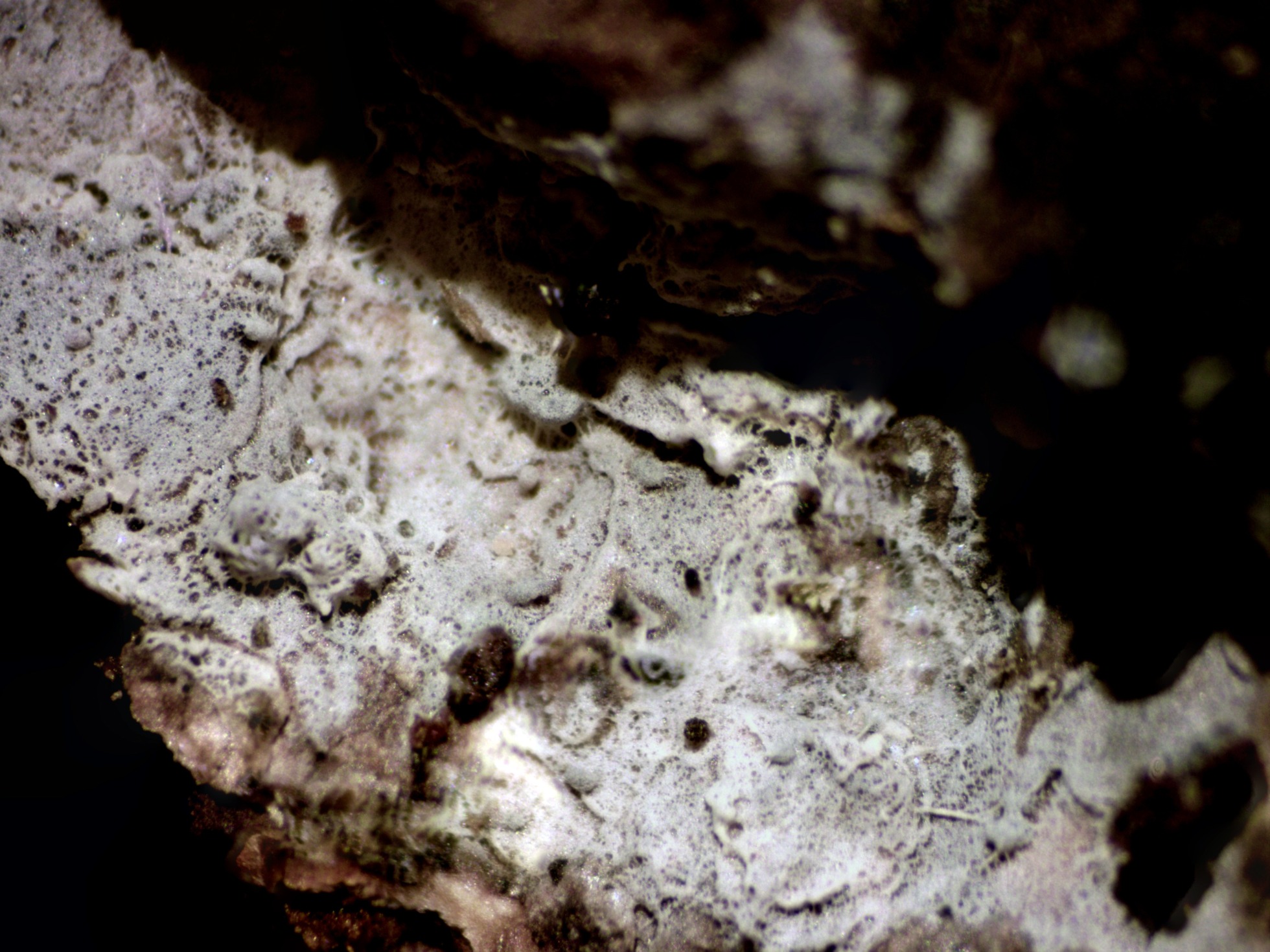 Angel Torrent no solo me trajo la Gyrophanopsis polonensis, sinó que además me trajo para identificar una muestra de otro Corticial, este con esporas verrucosas, otro "cromo nuevo" para mí, en esta ocasión la: