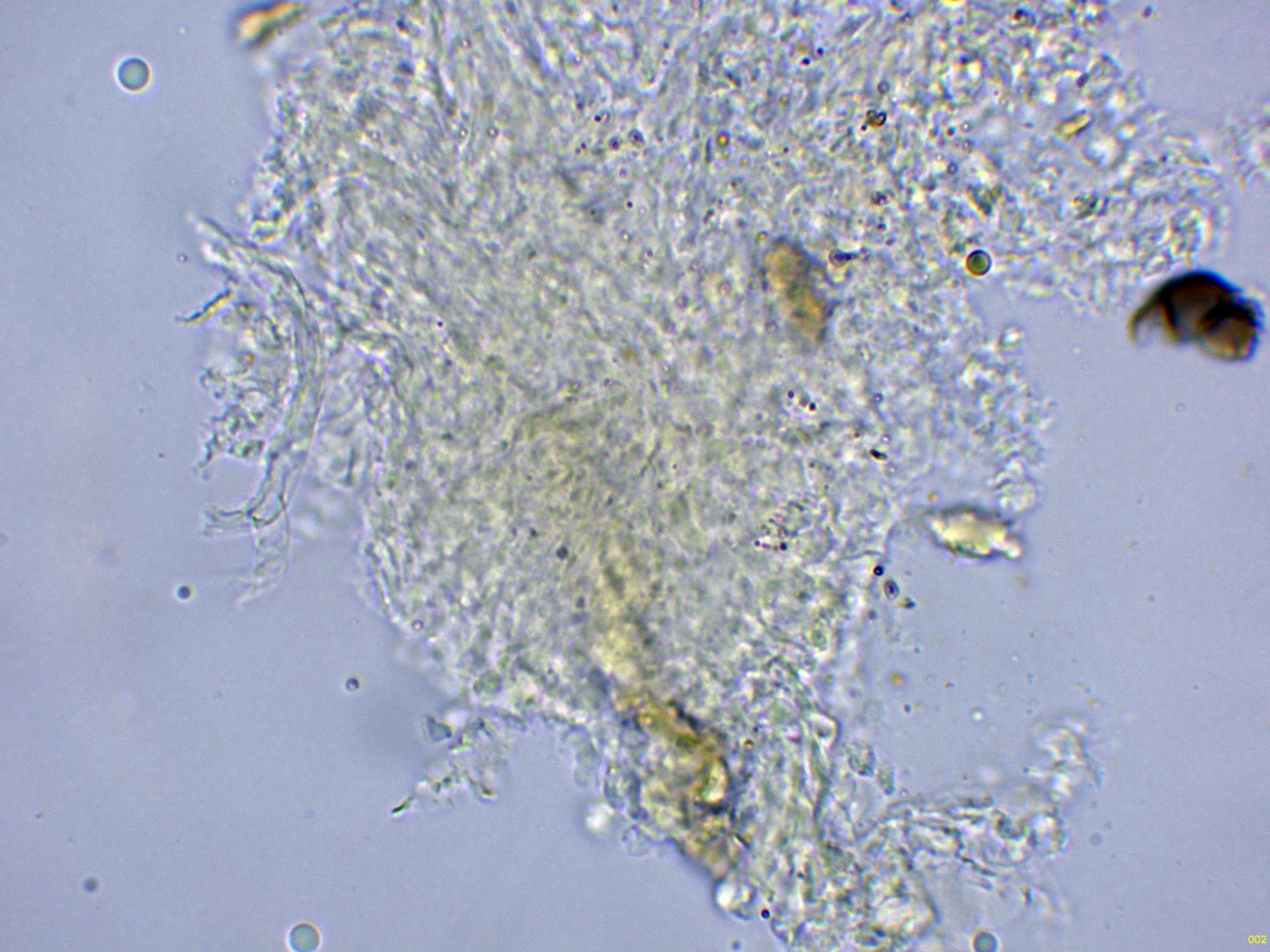Hifas subhimeniales en solución de Rojo Congo diluido, muy compactadas entre sí, muchas de ellas ramificadas y de difícil disociación: