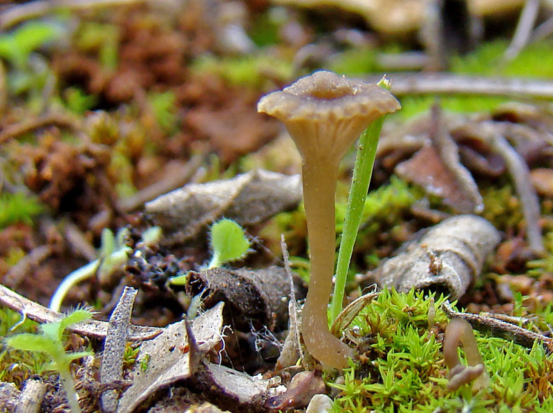 La Arrhenia rickenii, es una minuscula seta de unos o.5 mm. de diametro y 1 cm. de altura, laminas decurrentes y cuticula embudada