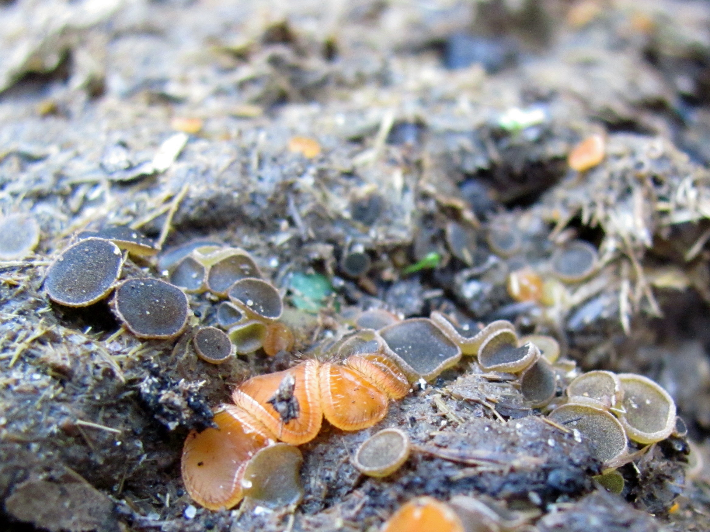 La primera una Scutellinia mezclada a lo mejor con peziza Bovina?