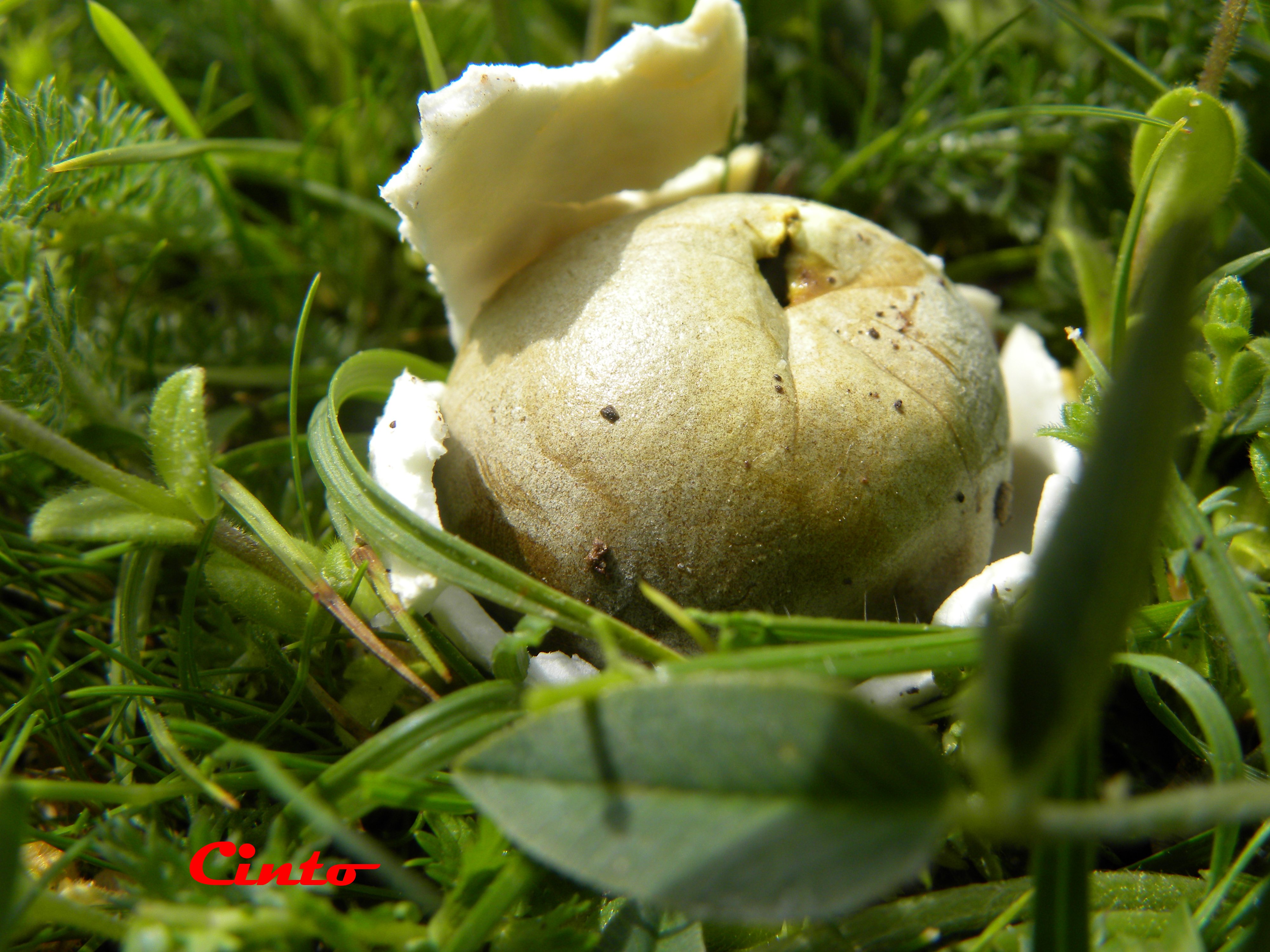 Especie encontrada en un prado, para mi se trata de un Geastrum triplex, especie carnosa, la tengo clasificada pero con una duda, es que la seta en las fotos se ve tierna, con los colores blanco y verde, en cambio en la descripción de G. triplex, la describen de colores parduzcos o rosaceos, no he visto fotos ni he leido que cuando es joven y tierna, sus colores sean blanco y verde, de ahi mis dudas.