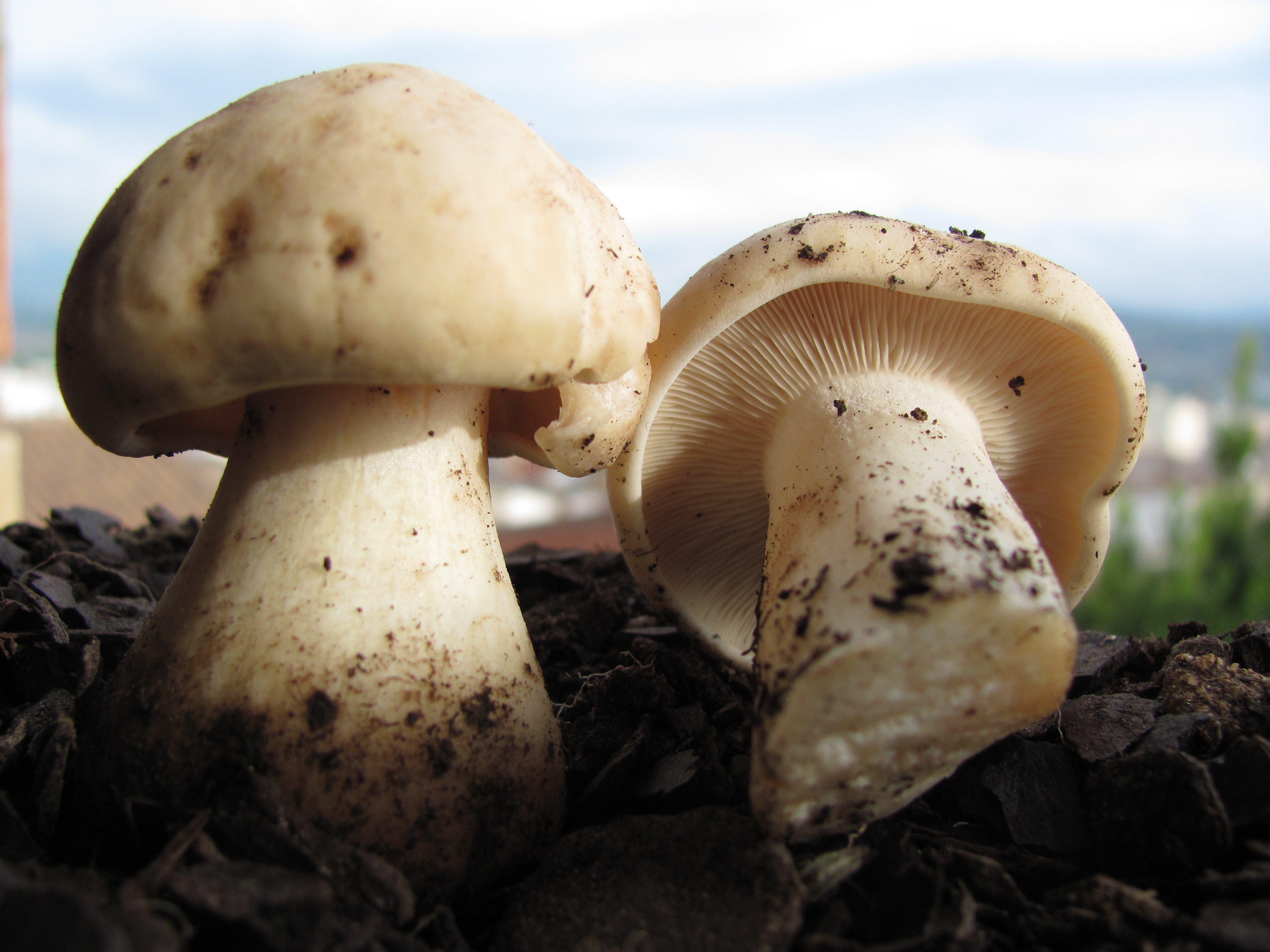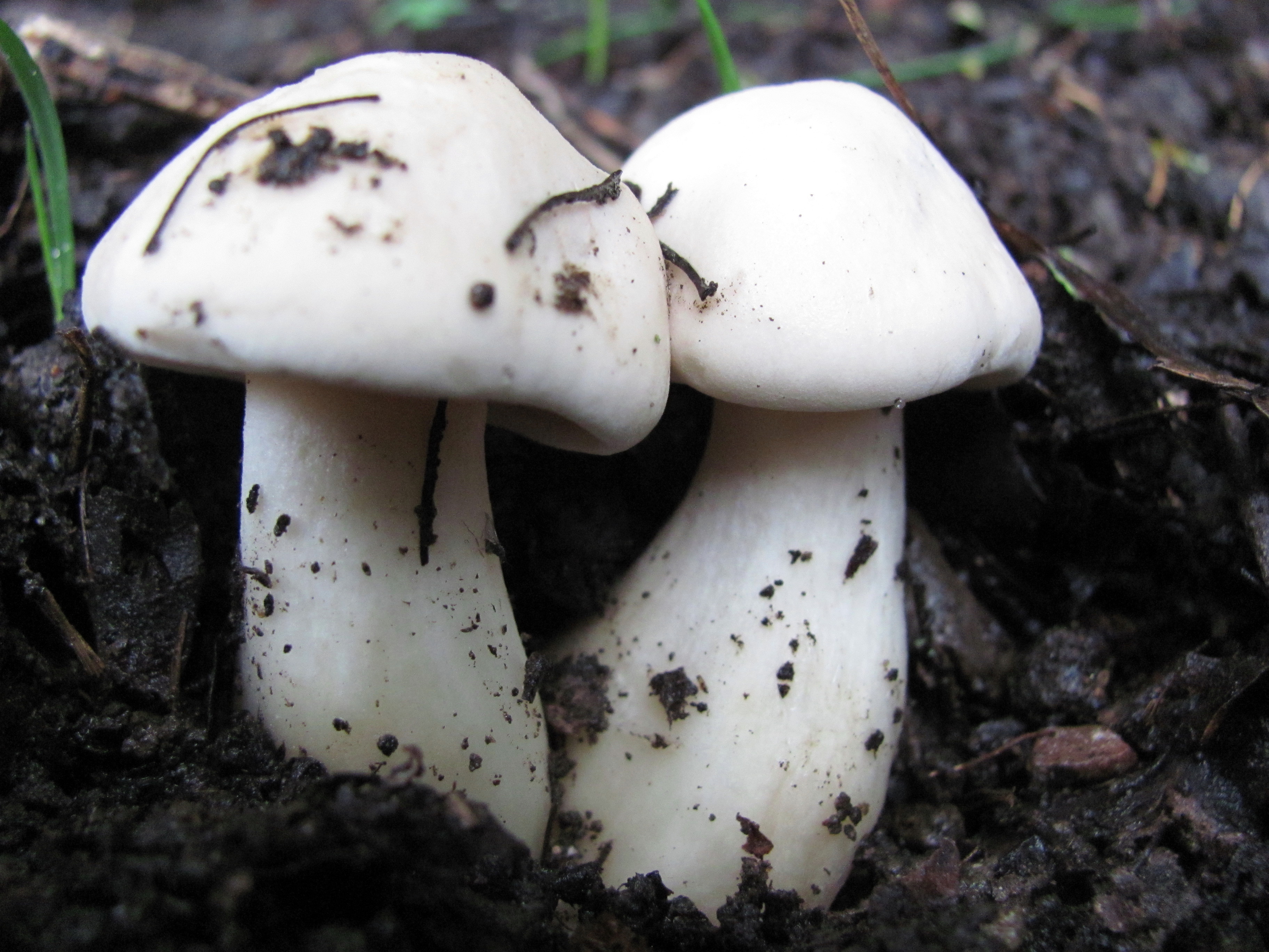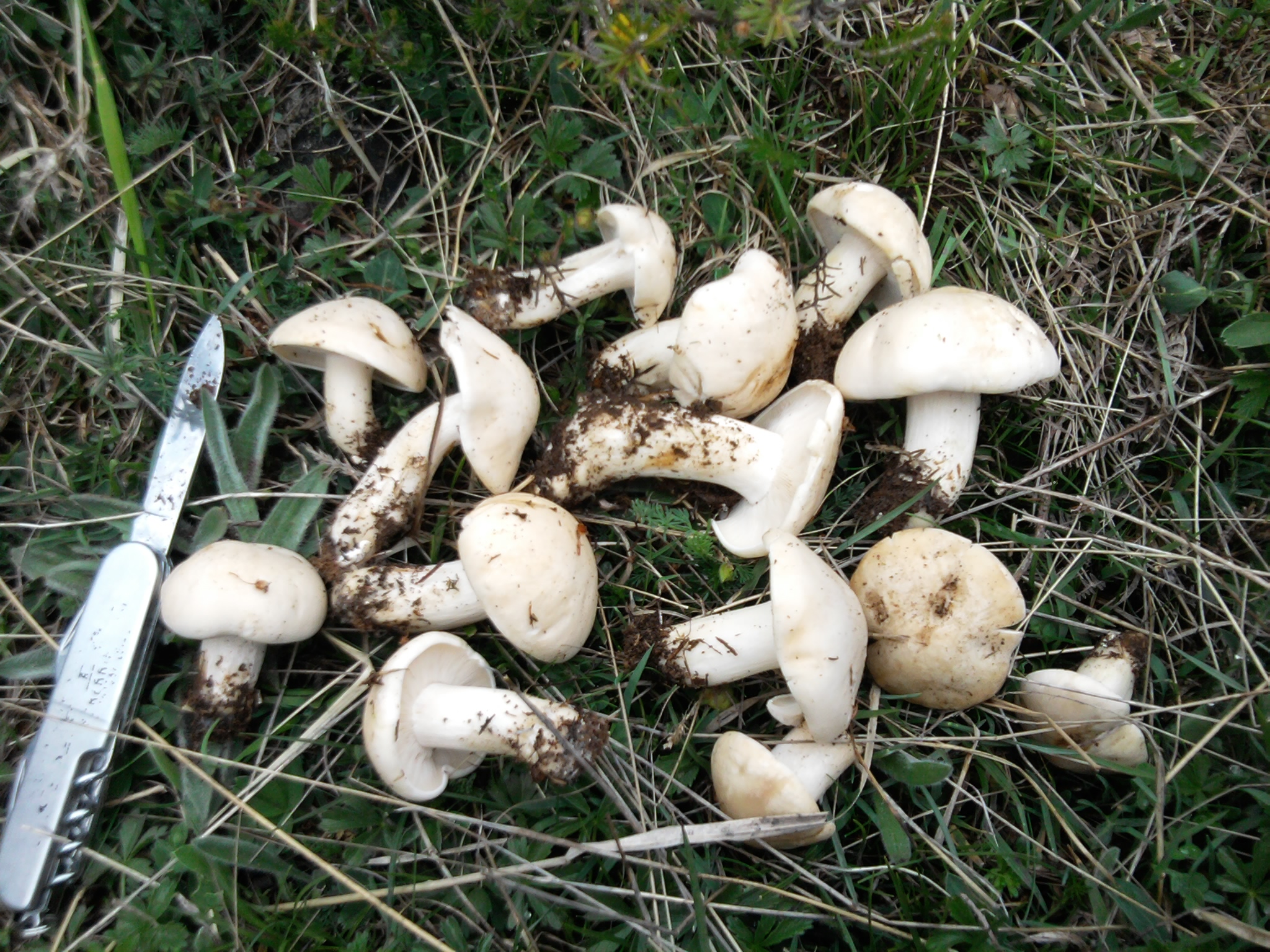 ,nada mas llegar preparemos la zona y nos acomodemos,;mi hija ya me llamaba con cesto en mano y tres negritos dentro"no se le escapa ni uno",pues tomando la palabra nos adentremos en una zona donde suelen salir los Cantharellus y para nuestra sorpresa un jabalí escardo todo el terreno ,la sorpresa fue mayor cuando vi unas setas blancas con un pie bastante engrosado arrancadas sobre el follaje ,al acercarme ,resulta de que estaban saliendo muchas mas alrededor de un maoleto no se como le llaman por el norte;deje gozar a mis ojos unos minutos y pensé pedazo de encuentro como sea la que me imagino y aquí os dejo la descripción :sombrero muy carnoso, acampanado de unos 5 a 6cm. de diámetro color de blanco a un crema suave ,con el borde enrollado ,laminas finas, apretadas,adnatas de color blancas,pie cilíndrico engrosándose hacia la base de 3 a 4 cm.un poco fibroso,olor como harina un poco rancia agradable y el sabor =, crecían en linea recta a la sombra de maoleto y rosales silvestre con presencia de encinas ,si me la confirman deje ejemplares sobre un cm.estarán para el domingo siguiente en su punto??no creo que se las lleven .saludos. pd(estuvimos media hora escasa,las lluvias nos chafo el día)