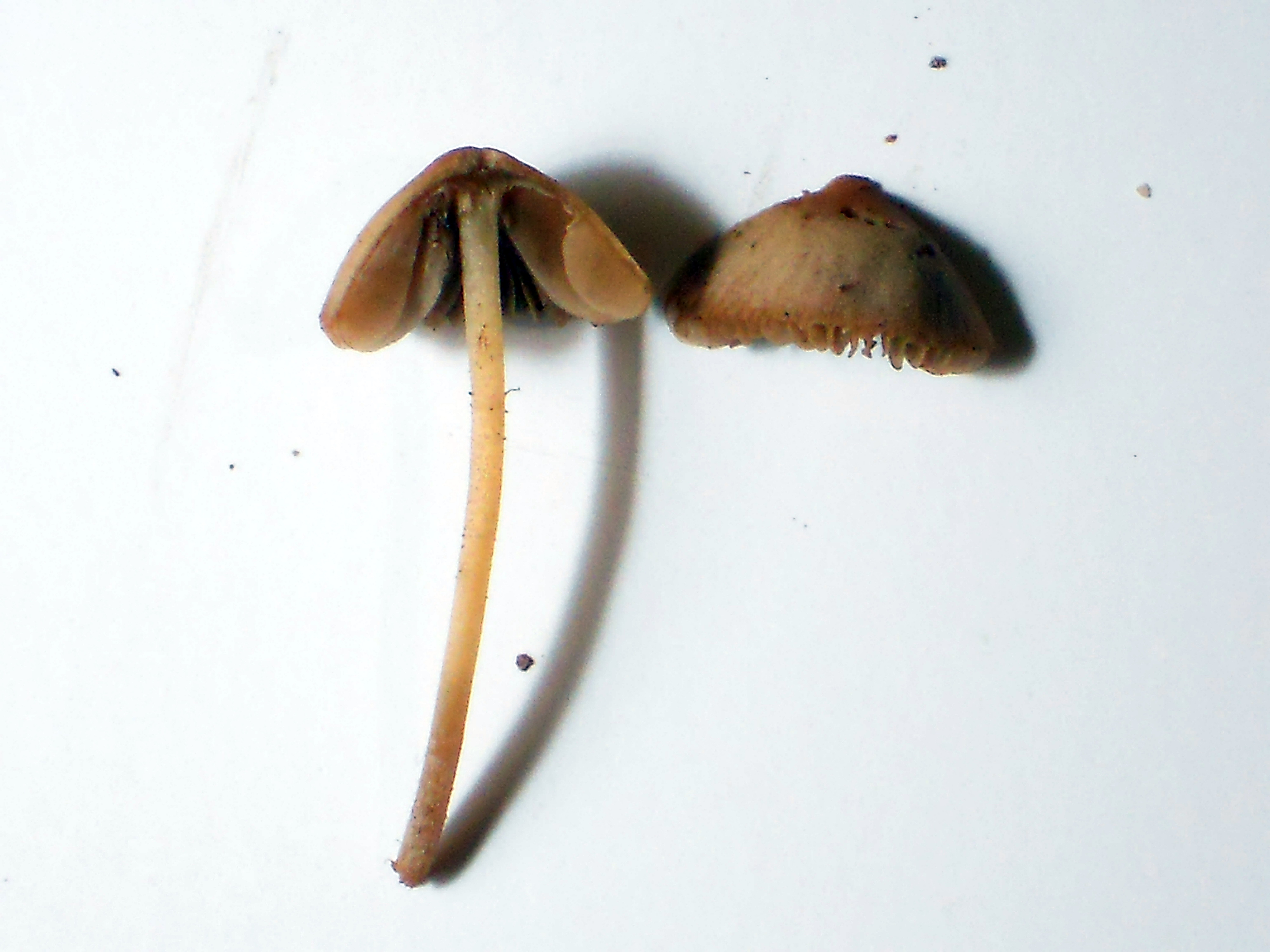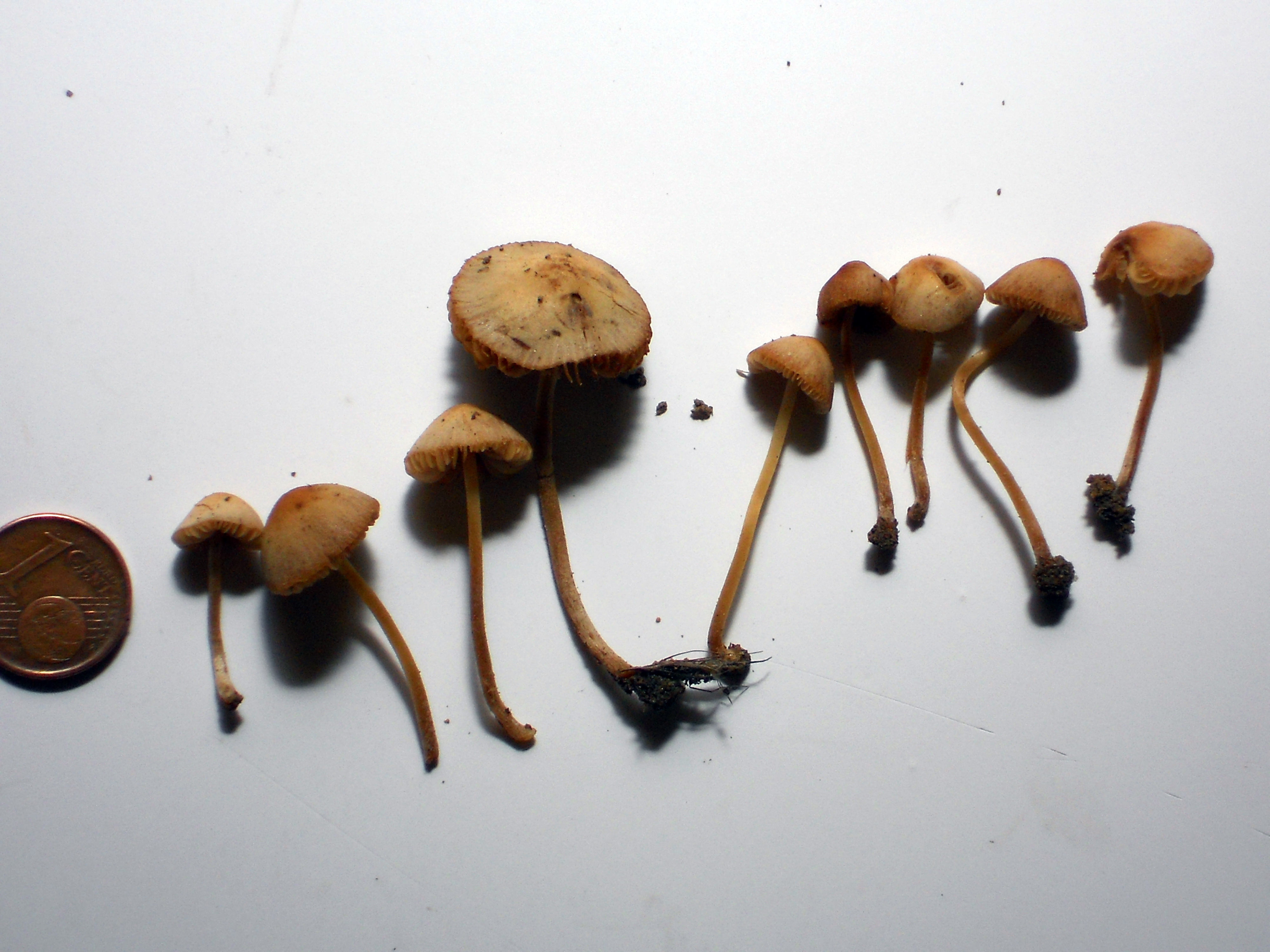 Veo bastante claro que no es ninguna Mycena, me parece que el género al que pertenece bien puede ser Conocybe, del grupo del Conocybe tenera que tiene muchas especies similares que precisan micro para su identificación.