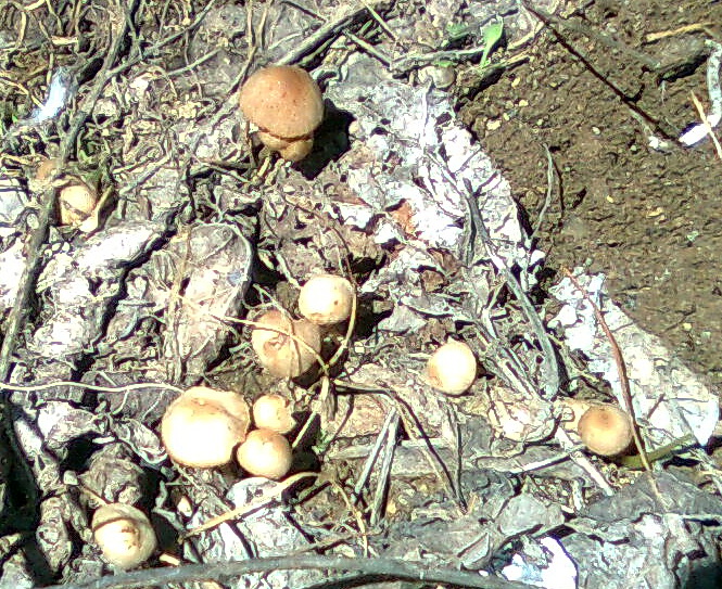 En el patio de un vecino, sobre detritus vegetales y chatarra, de 2 cm la mayor de sombrero y 4 cm de pie. Olor inapreciable, sabor