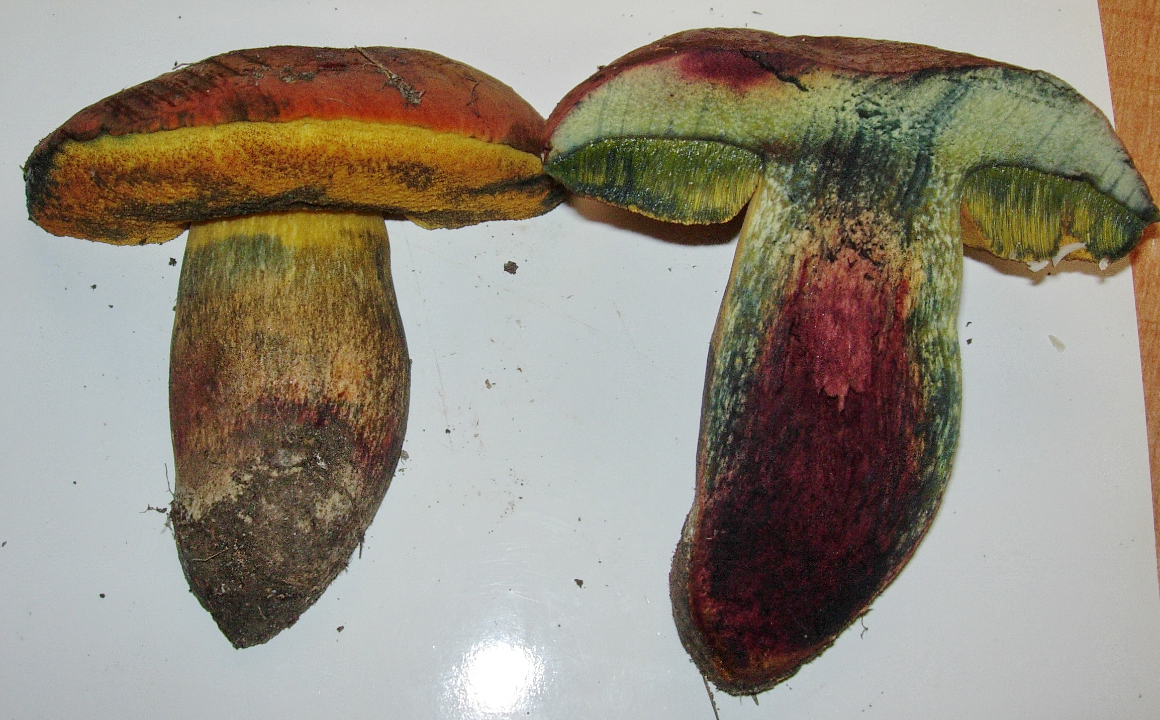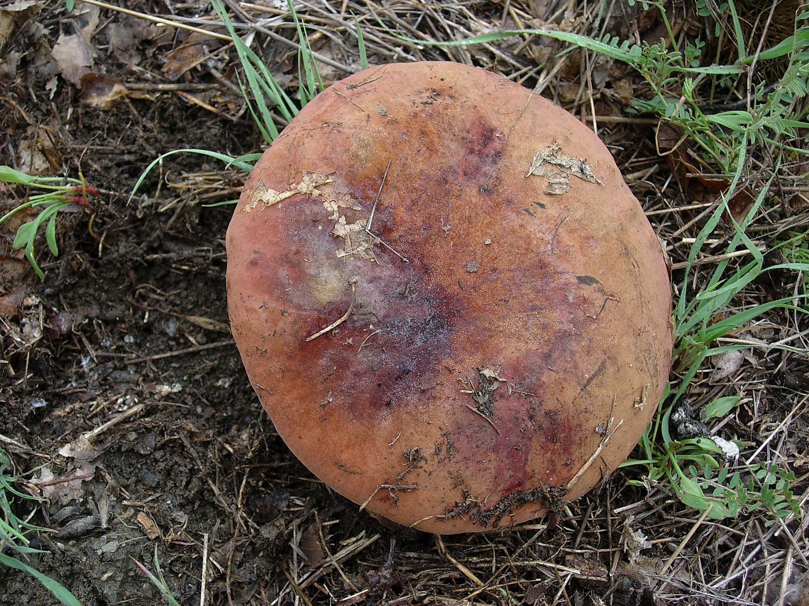 Lamento disentir chic@s, pero me parece un Boletus queletii de manual, en nuestros tiempos a este le llamabamos Boletus queletii var lateritius,más robusto que la especie tipo, pie grueso incluso a veces ventrudo, ah¡ en mi debe he de decir que cuando hice el texto de la ficha no apunte un detalle que ahora sale en este post, hábitat en zonas herbosas. Un saludo foreros;)