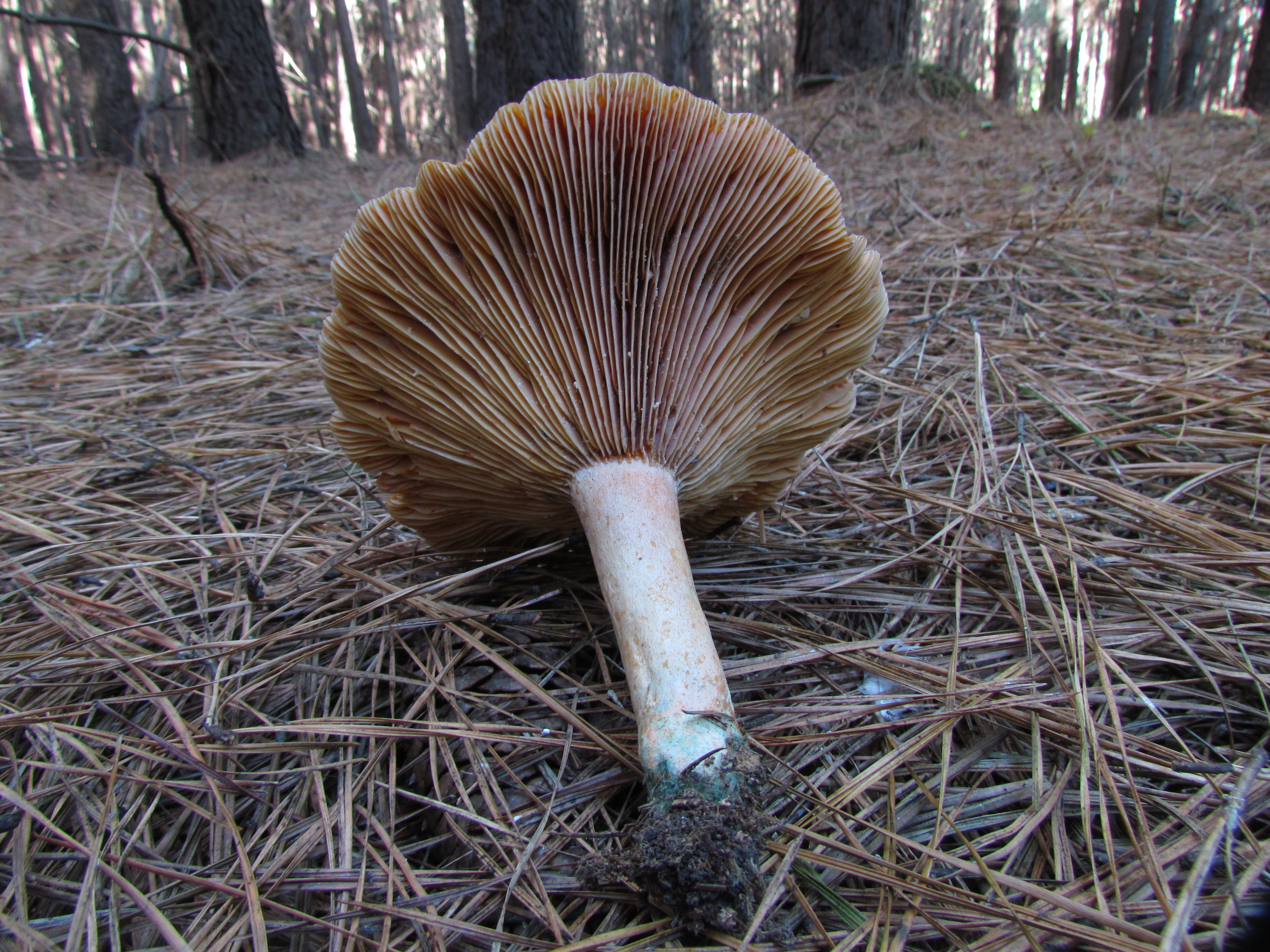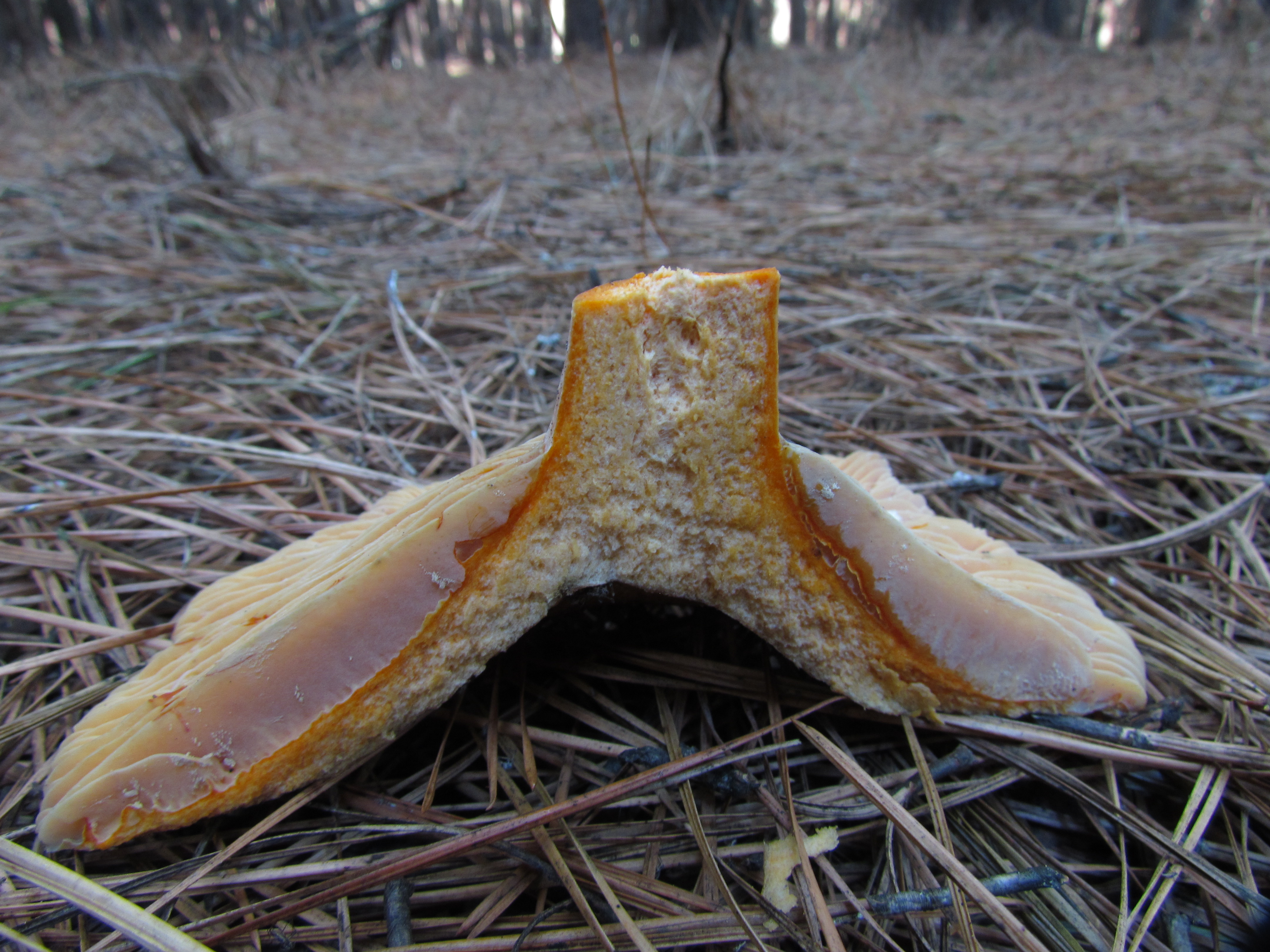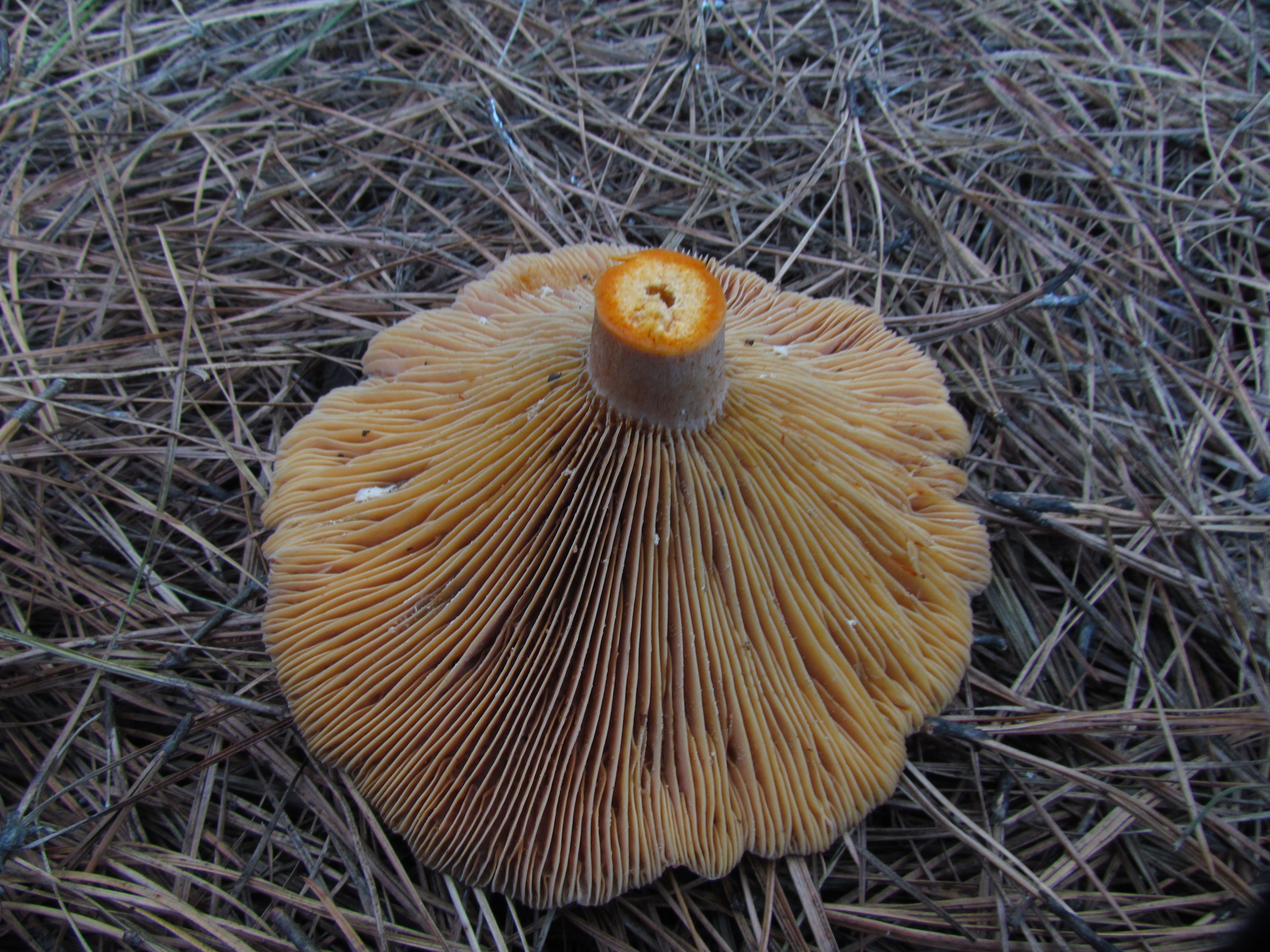 hola sergio este es sencillo por el color forma y dibujo del sombrero ,se trata de un Lactarius creo que deliciosus y bastante seco pues parece que no segrega latex, saludos.