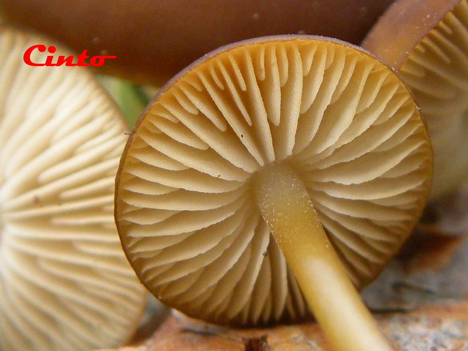 Entre tantas fotos que hice el otro dia a las setas de madera, he encontrado una con láminas, que ya no me acordaba que la tenía, como todos los años de las primeras que salen después de las nieves, es bastante popular, pero no por eso deja de ser bonita, estoy hablando de la Strobilurus esculentus, digo esculentus porque no amargaba, en fin ahi van un par de fotos.