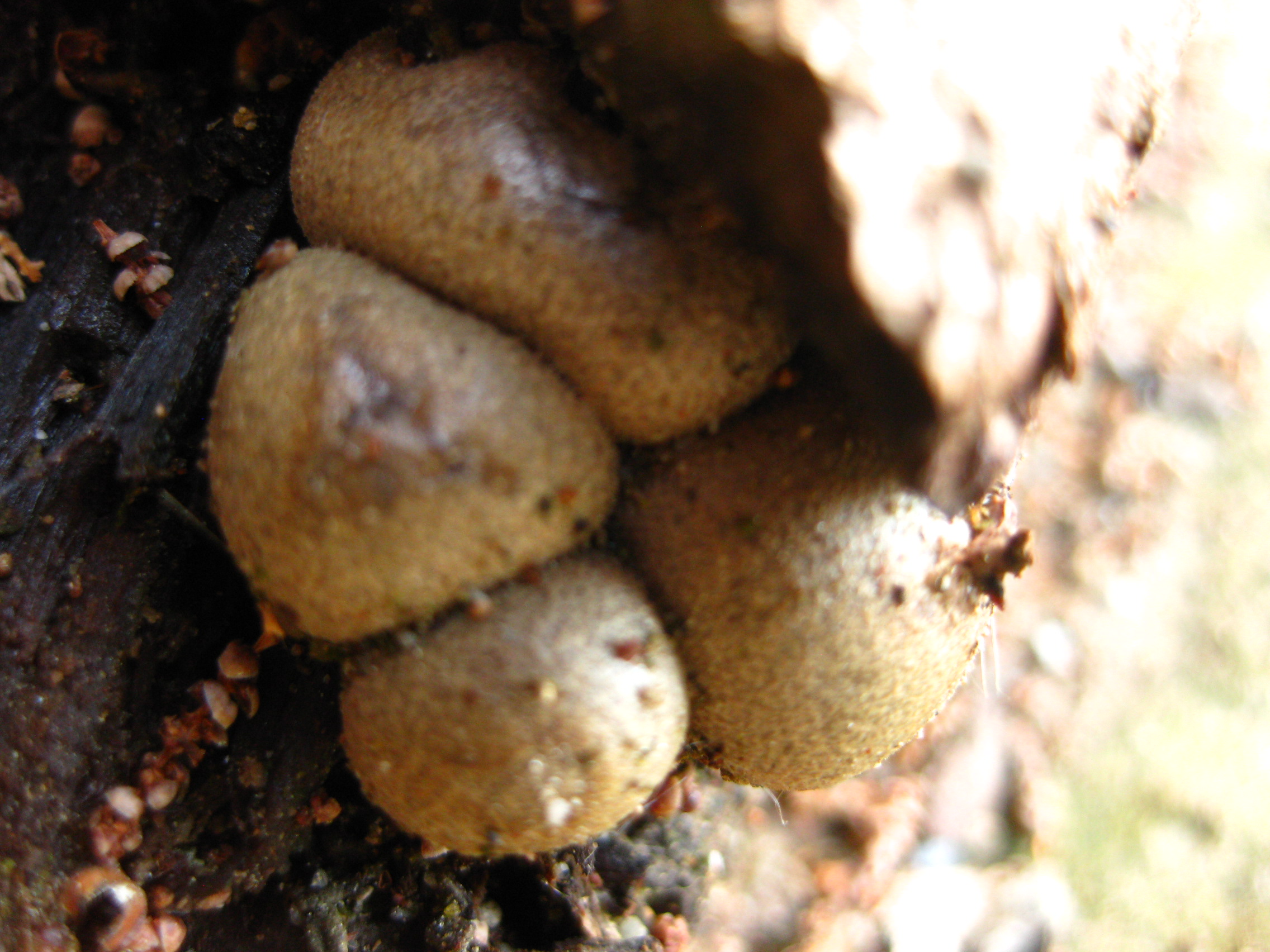 fijate lo curioso de como lo encontre: Unos amigos, sabedores de mi enfermisa adiccion a las setas y todo lo que se le parece, me llamaron para que nos dieramos una vuelta por su chalet, para tomarnos unas cervecitas y ver un hongo curiuoso que habian encontrado y mira mi asombro al ver el curioso lugar donde habia salido.