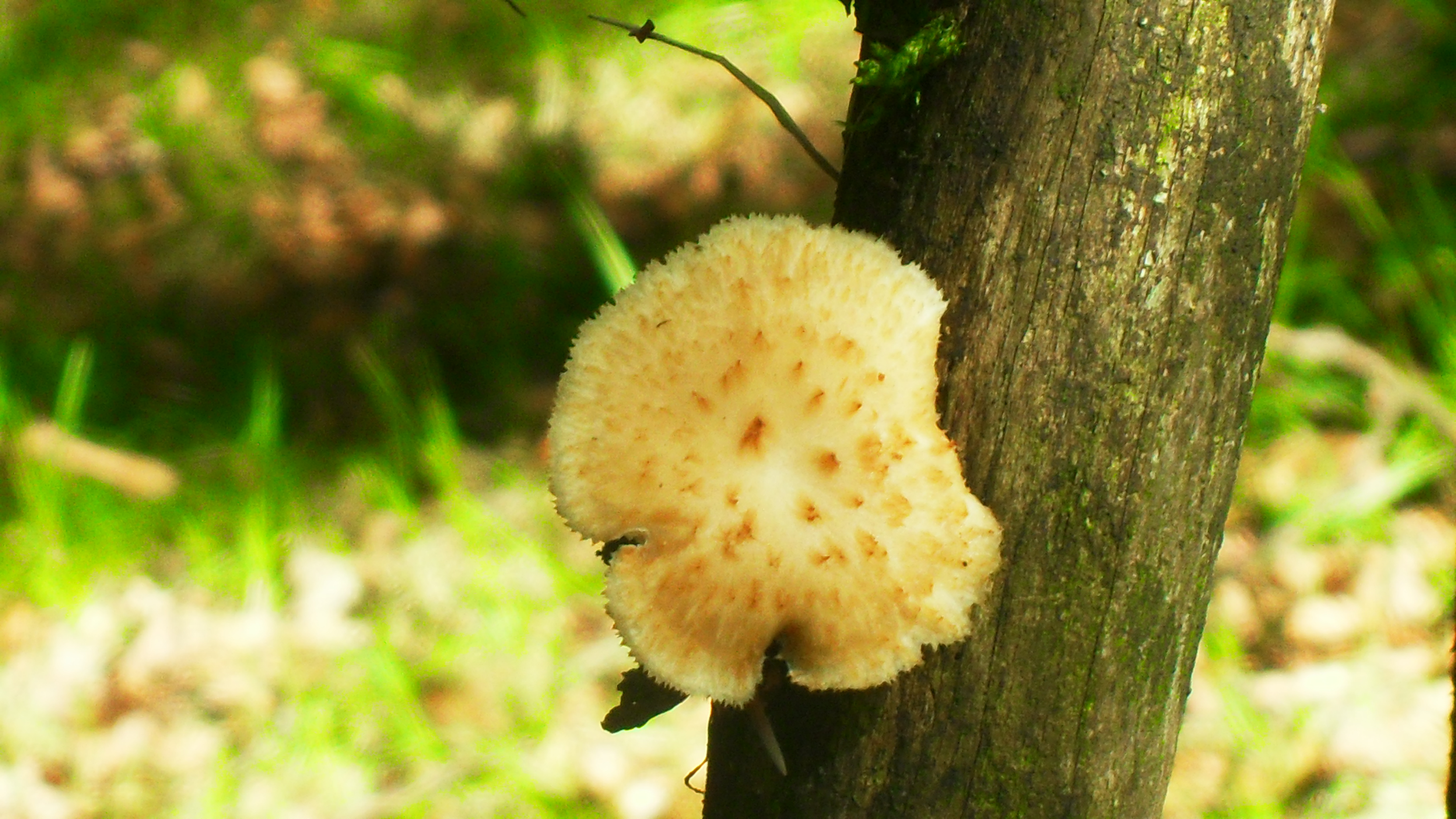 Hola chic@s, no parece tener el tamaño para ser P. squamosus, teniendo en cuenta que crece sobre una rama, a mí me parece un Polyporus tuberaster.