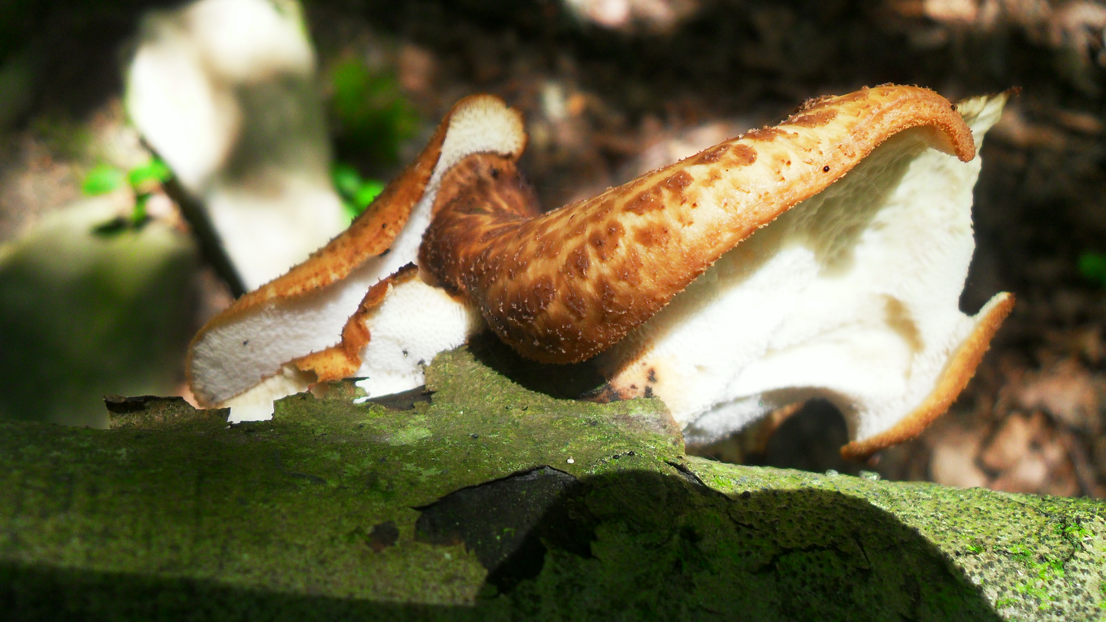 interpretando tus fotos he llegado a la presunta sospecha de que son Polyporus squamosus.